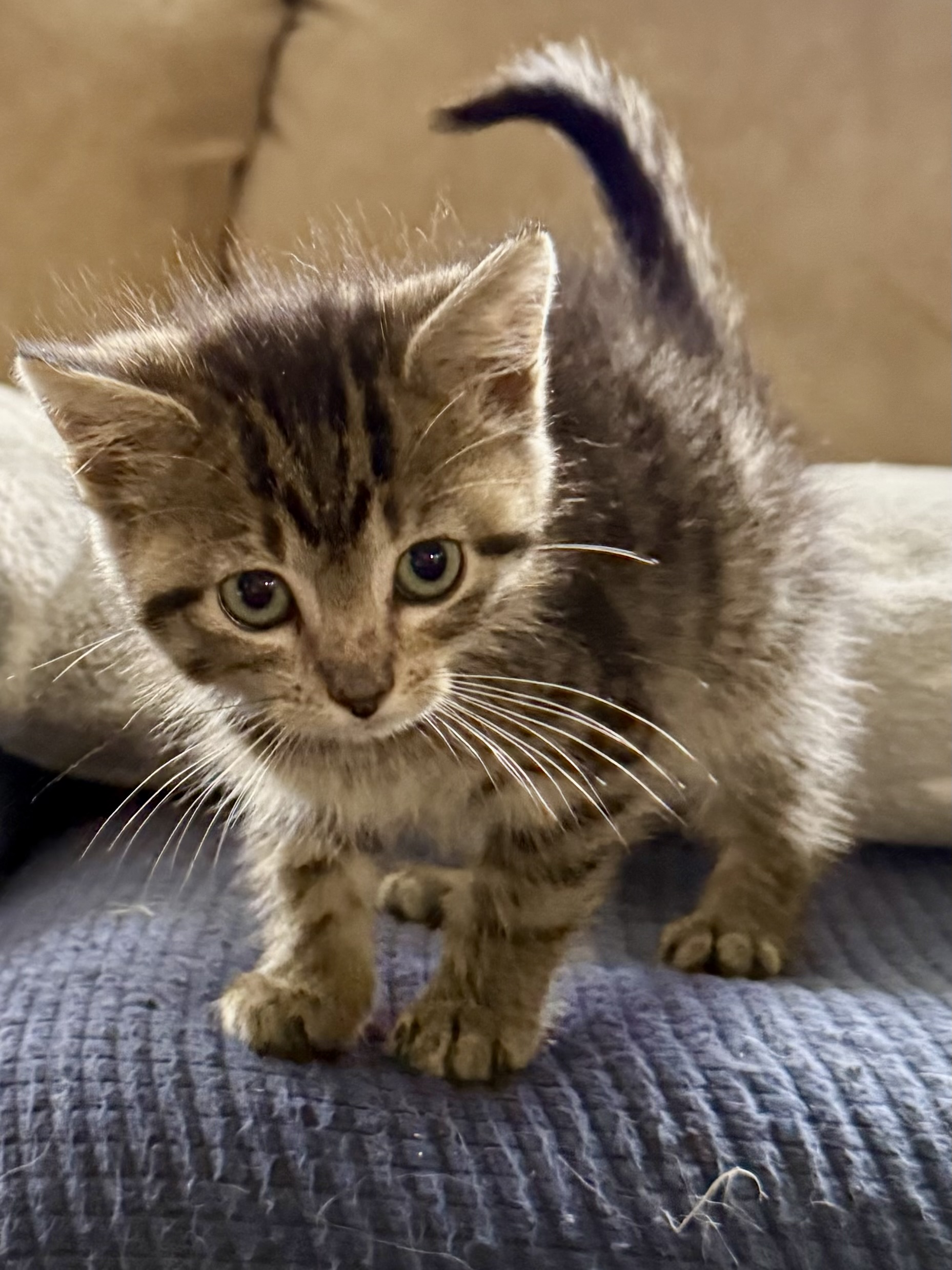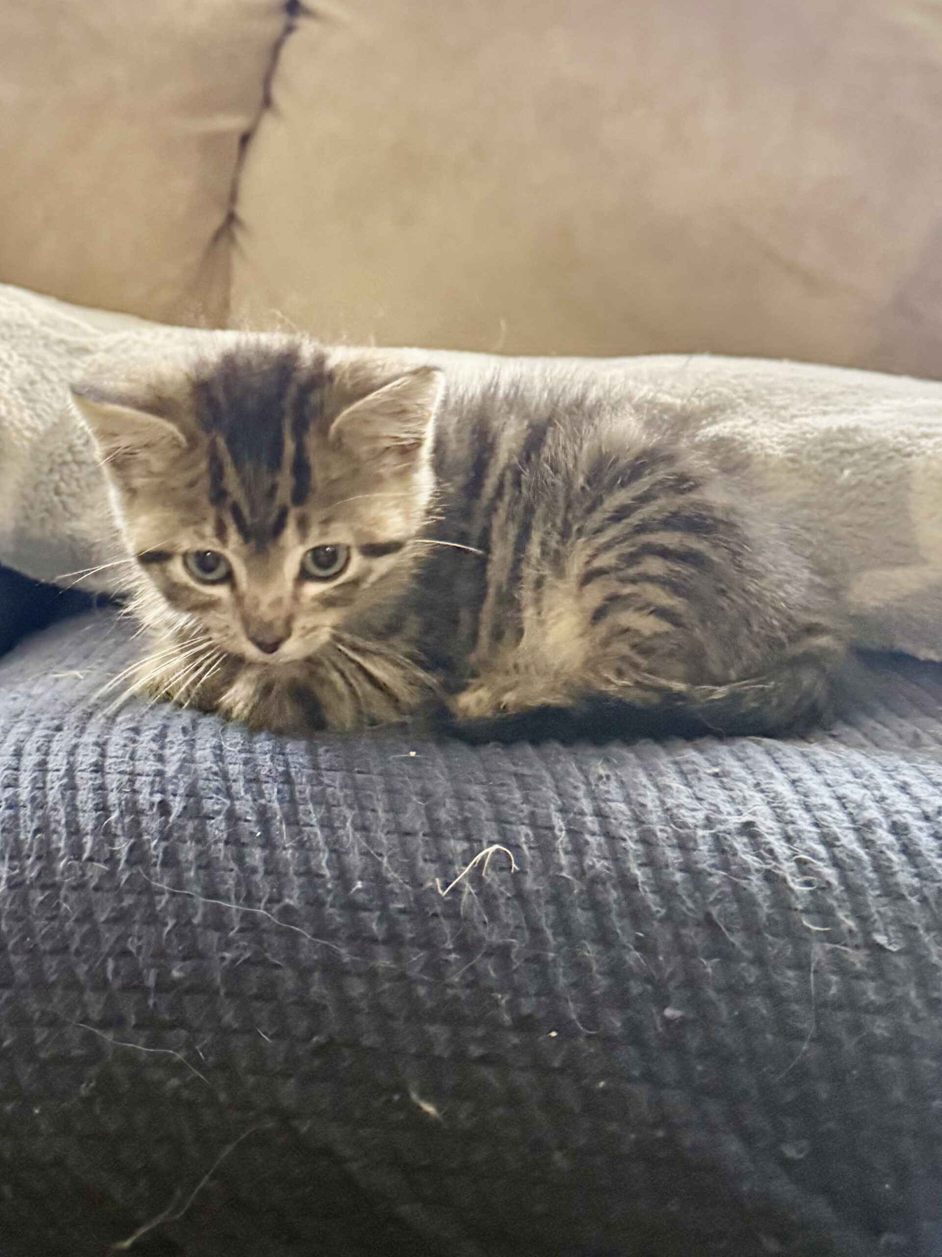 This adorable 9-week-old kitten is ready to find her forever home! Skittles is full of playful energy, kitten curiosity, and plenty of purrs. She's already showing how loving and social she is, great with other cats and comfortable around dogs to as you can see in the picture.  Skittles enjoys chasing toys and cuddling up for naps. She is litter trained,healthy and up to date on age-appropriate vaccines.  Bring this little ball of love home and let her fill your days with joy.