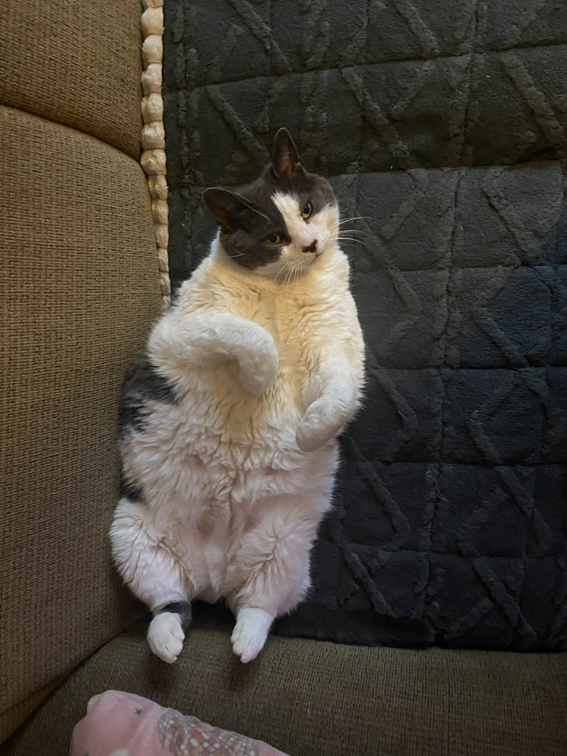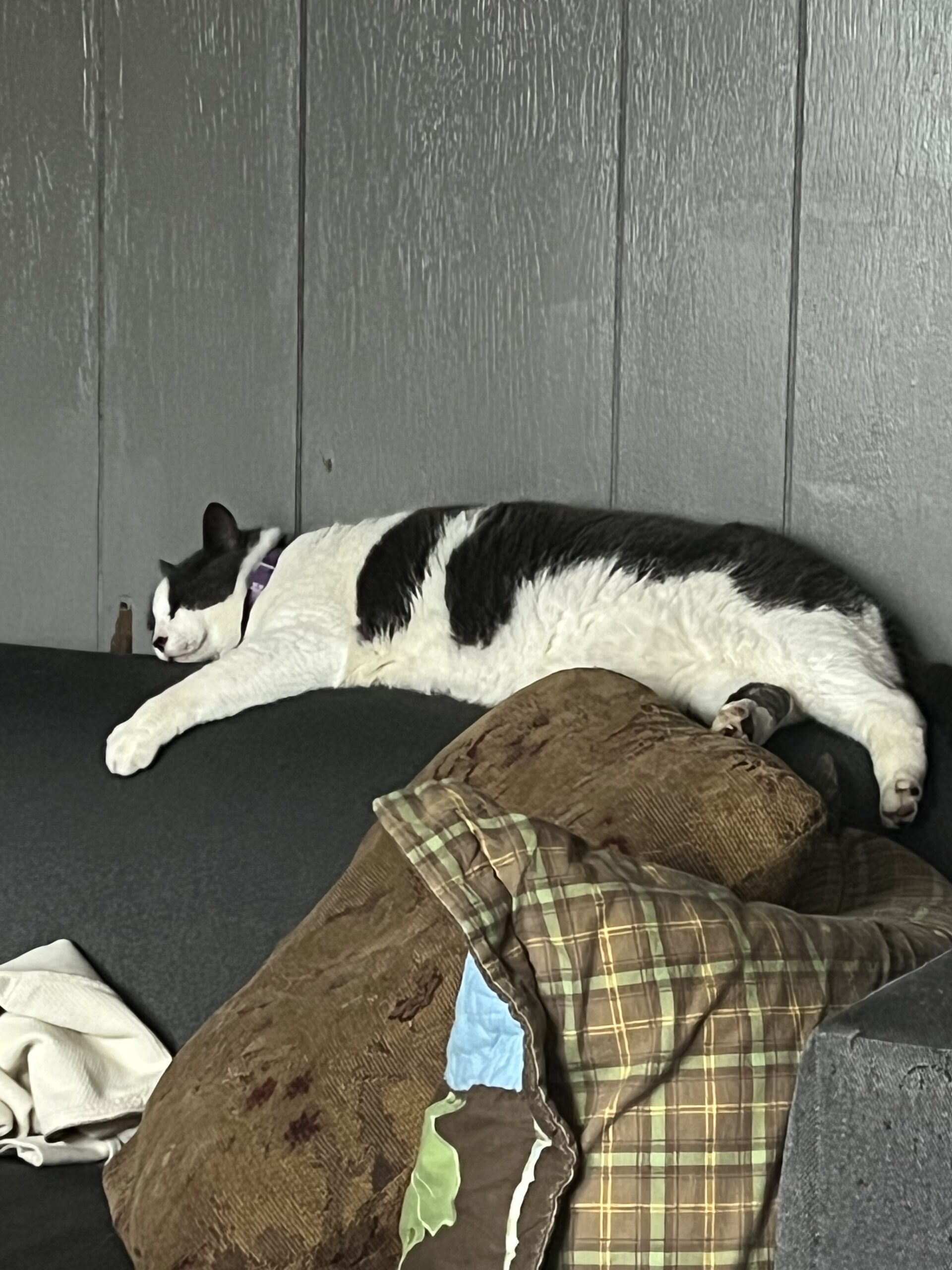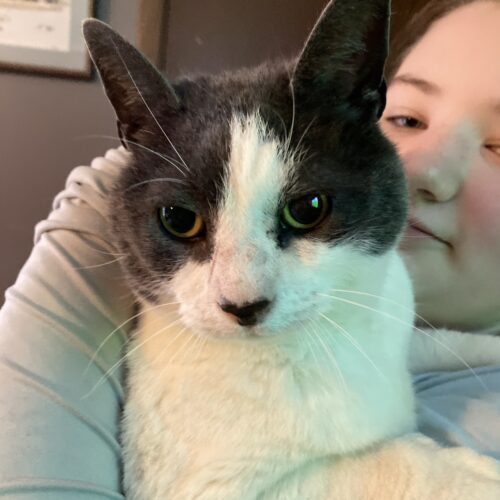 Hi! I'm Murphy! My foster mom found me on a cold rainy November morning on her way to work. Of course she had to stop and see if I friendly and i was so she took me in. We don't know Murphy's background but he was likely dumped. He is a big boy weighing in at 15.5 lbs! My current favorite things are sleeping on top of the couch and food!