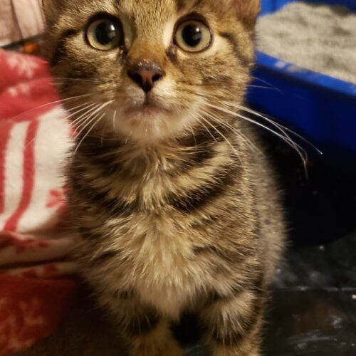 Meet Amigo, the sweetest 9 week old kitten (as of 8/17) you could hope to find in a shelter. His playful and curious nature makes every day a new adventure. Amigo loves to explore and is always ready for a cuddle, purring contentedly for anyone near to hear. He's friendly and quickly makes friends with everyone, charming all who meet him with his delightful antics. Adopting Amigo means bringing home a bundle of joy who will fill your life with laughter and affection. He's ready to be your forever friend!