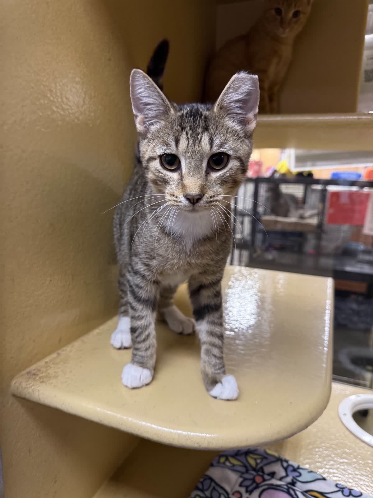 He’s playful, curious, and always up for a cuddle after a good round of zoomies. Whether he’s chasing toys or curling up in a sunny spot, Arlington brings joy wherever he goes. If you’re looking for a healthy, affectionate kitten who’s ready to grow up by your side, Arlington is waiting to meet you!