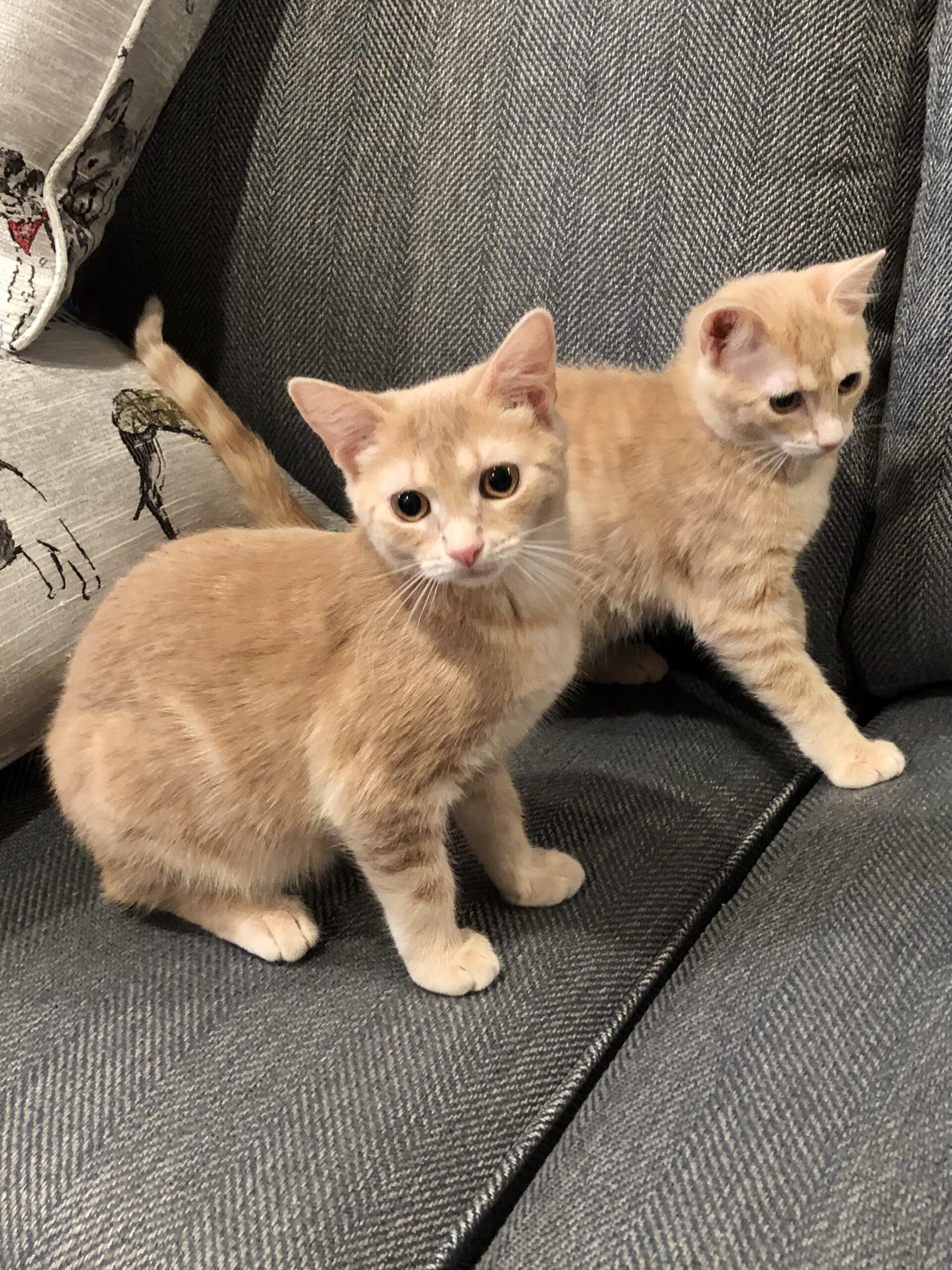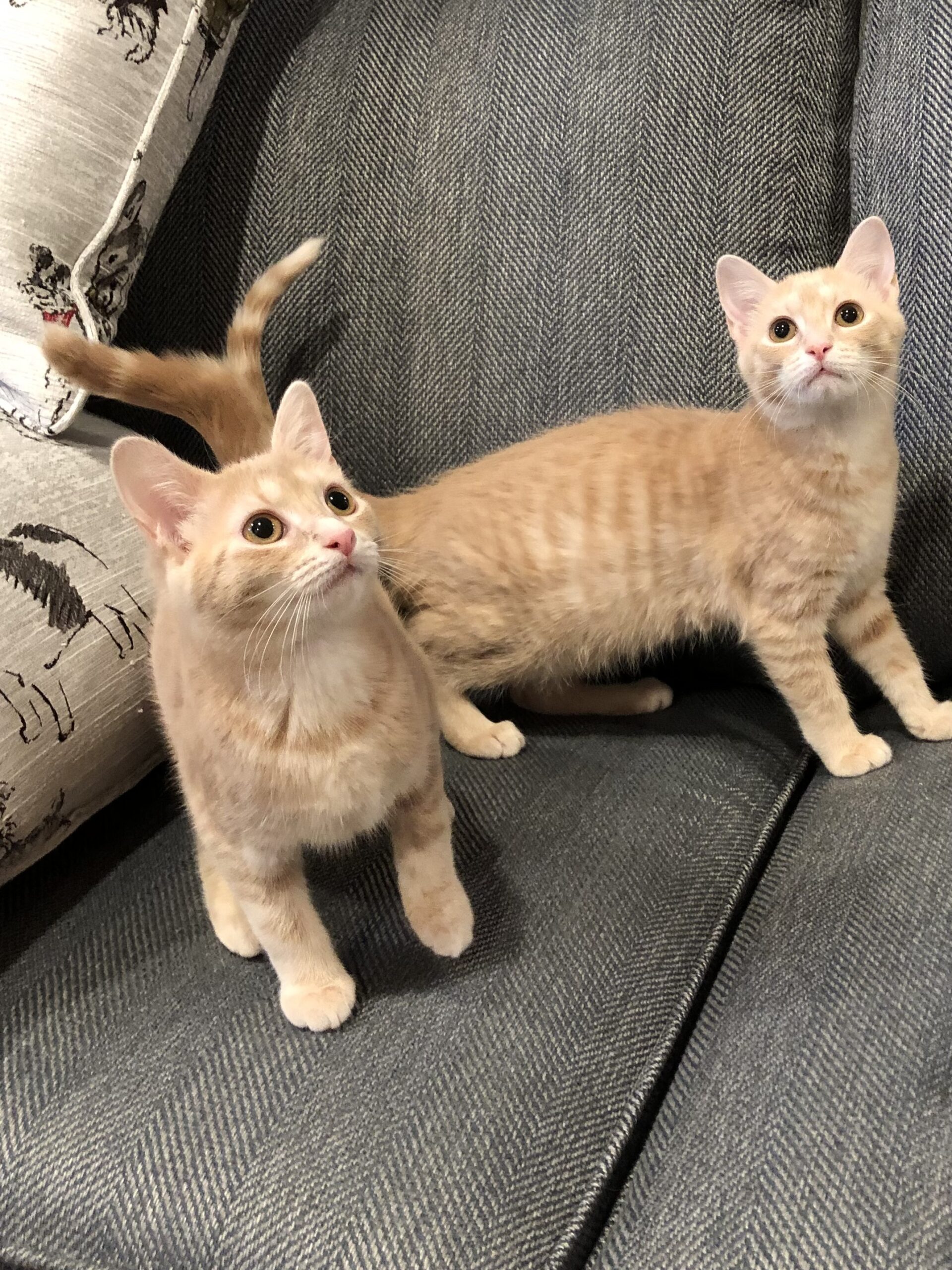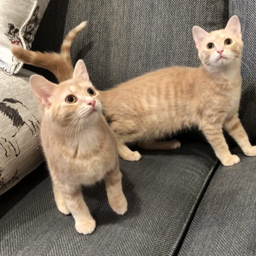Blondie and I are 12 week old sisters. We were found as newborns and were bottle fed (there were 4 of us.) So we are definitely spoiled! We are very sweet and extremely playful. We are bonded so must be adopted together.
