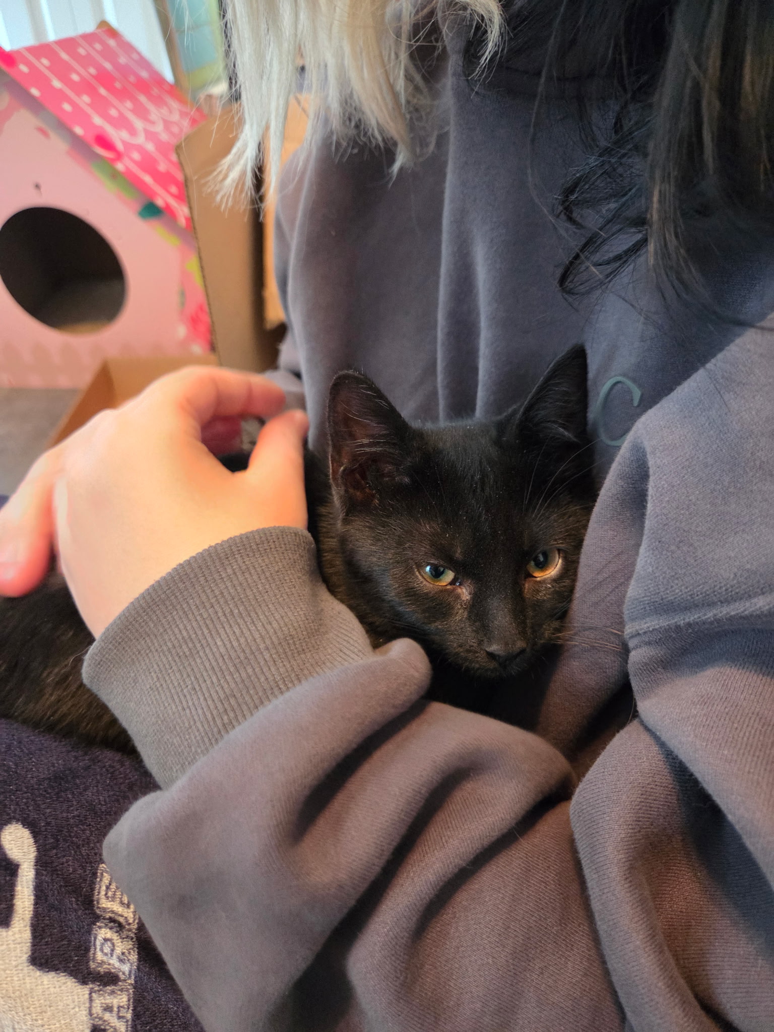 Meet Boo, the bravest kitten at the shelter! His journey here started with a mischievous adventure. One day, Boo decided to explore a box in a volunteers backyard. Curiosity won, and he snuck inside. Hours later, Boo emerged at the shelter, wide-eyed and ready for new escapades. This cuddly explorer loves to play and seeks affection, making him the perfect blend of independent and loving. If you’re looking for a playful companion who’s always up for a cuddle, Boo is your ideal match!