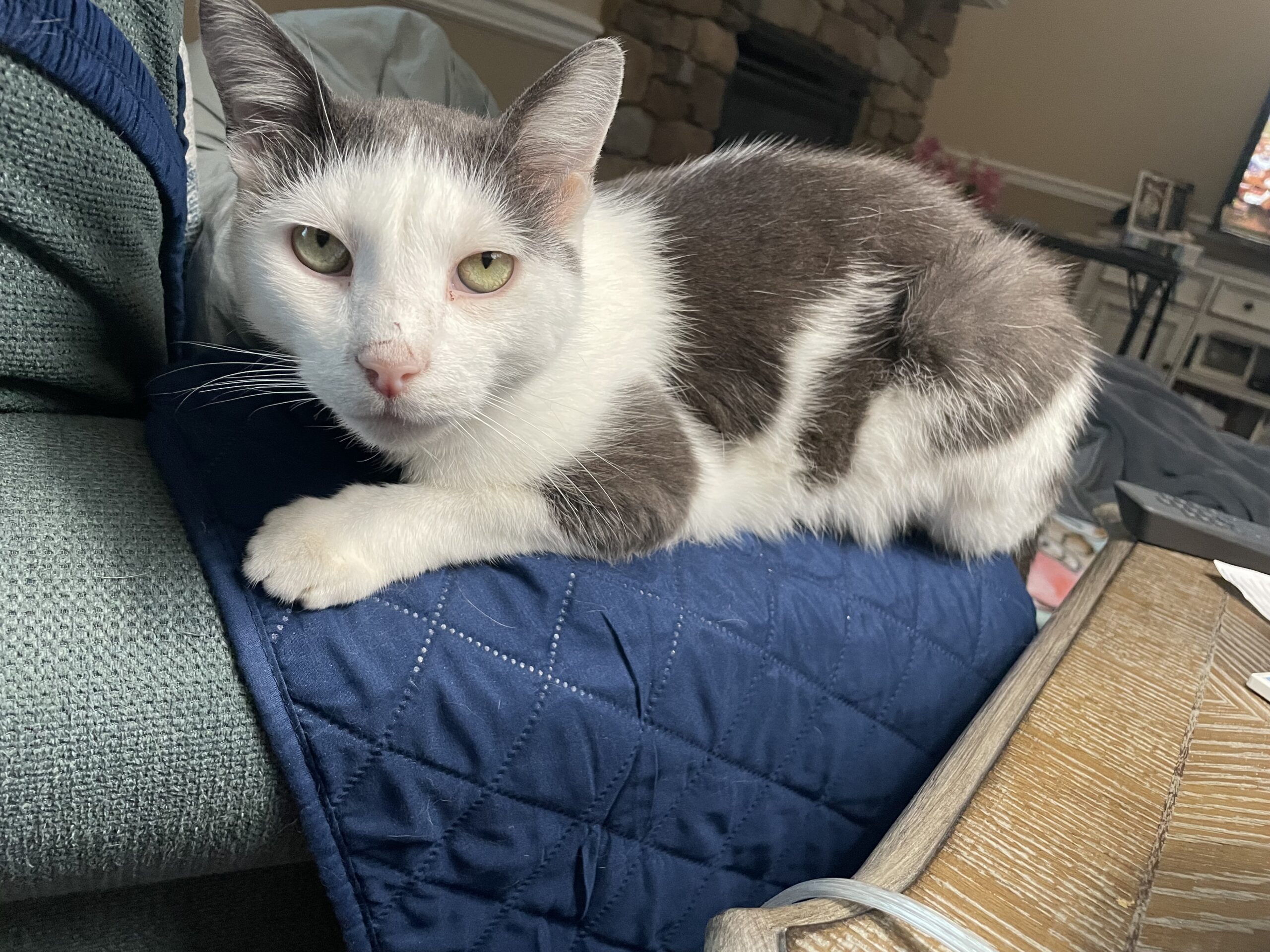This affectionate adult male cat is a total sweetheart who loves to cuddle, sit on your lap, and follow you around like a loyal little shadow. He’s playful, curious, and always up for a game or a nap by your side. He’s also dog-friendly and would do great in a home with a calm canine companion. If you're looking for a loving, loyal, and interactive feline friend, he’s your guy!