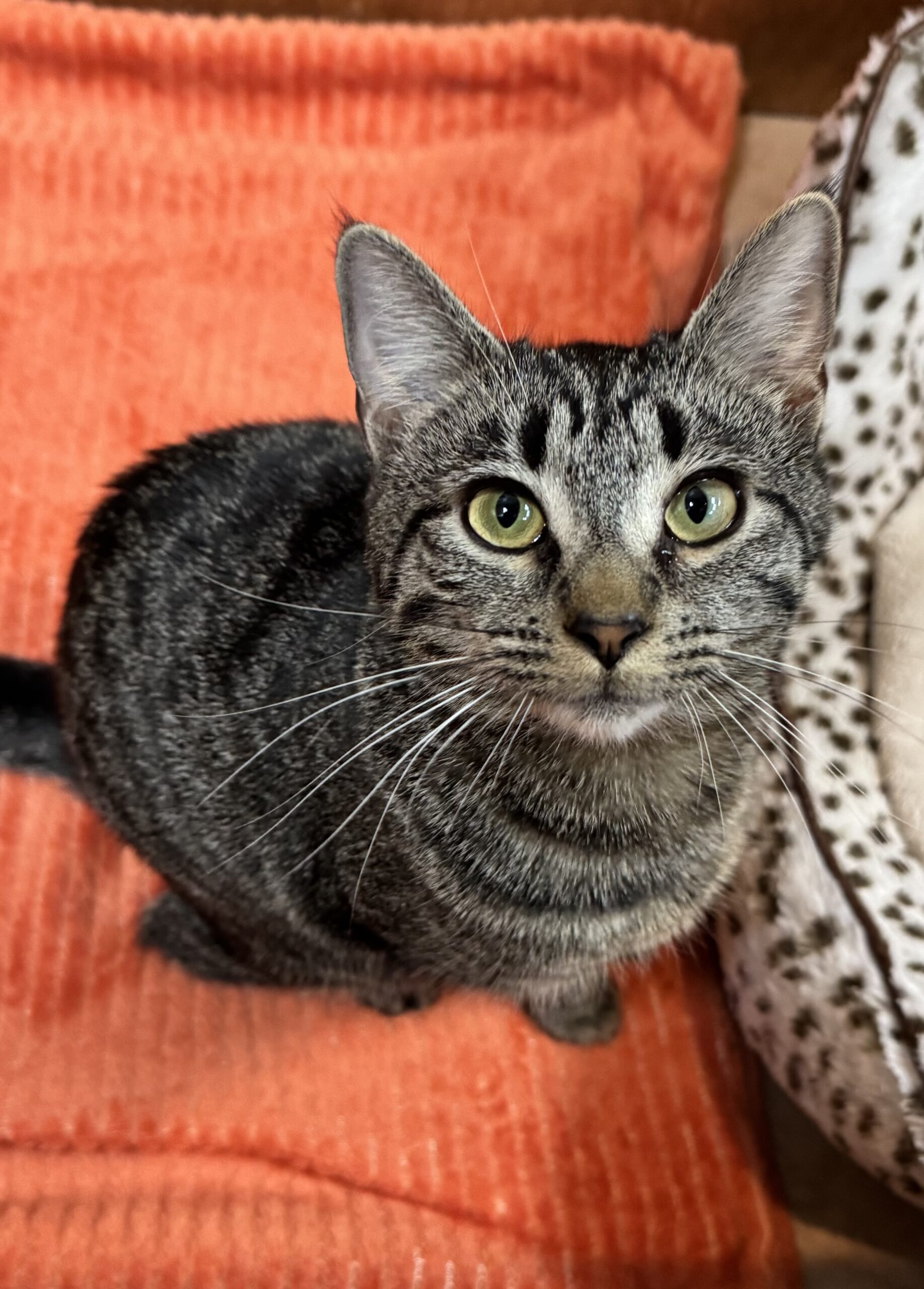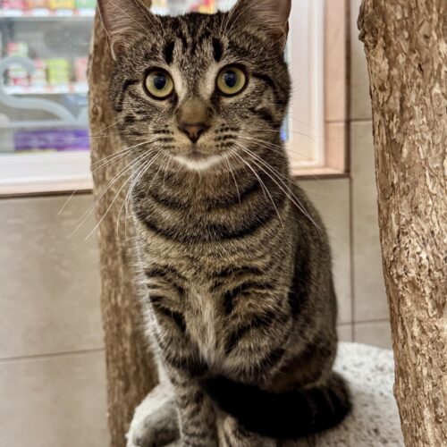 Canyon is a petite little package full of love and delightfully quirky habits. She can be very timid at first, but once she warms up to you—watch out! She’ll happily show off her belly and steal your heart in no time.