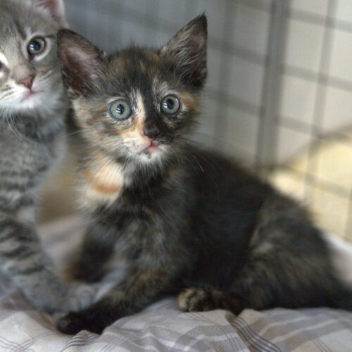 Hi there, I'm Bethel! I'm an 8-week-old tortoiseshell kitten with a big heart and an even bigger love for playtime. I might be tiny, but I’ve got a whole lot of personality—chasing toys, exploring cozy corners, and snuggling up for naps are my specialties. I love people and I’m always ready to share my purrs and affection with anyone who gives me a little love. I’m looking for a forever home where I can grow up safe, happy, and adored. If you’ve got room in your heart (and on your couch), I’d love to meet you!