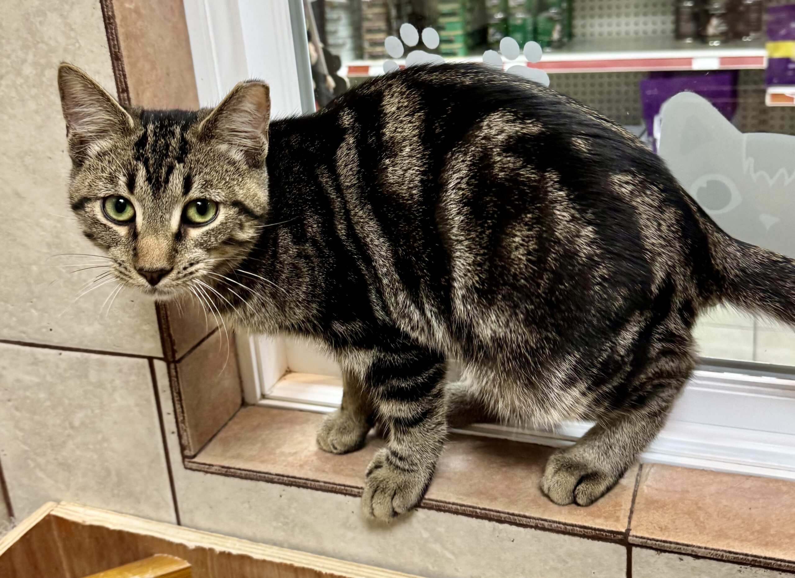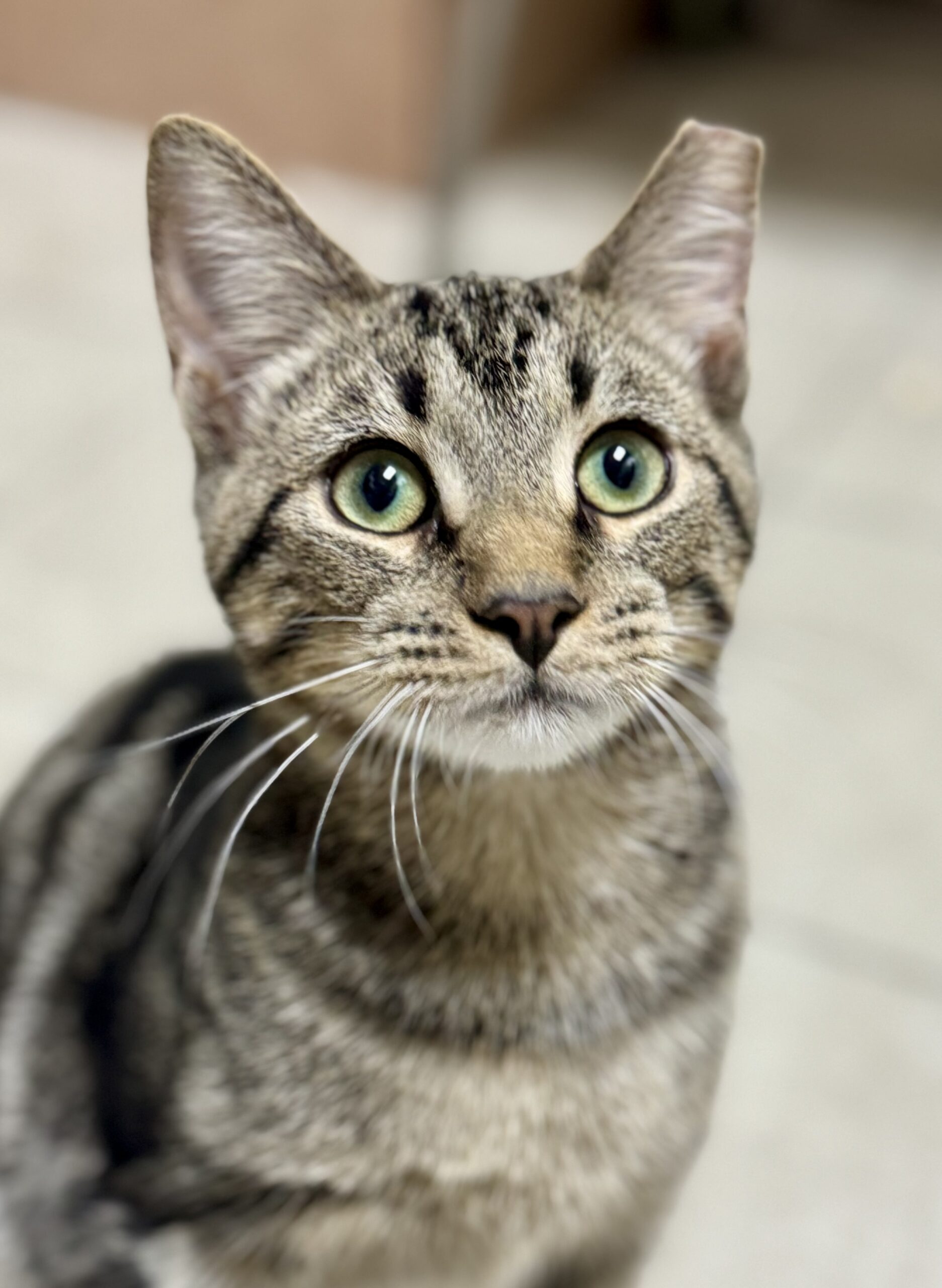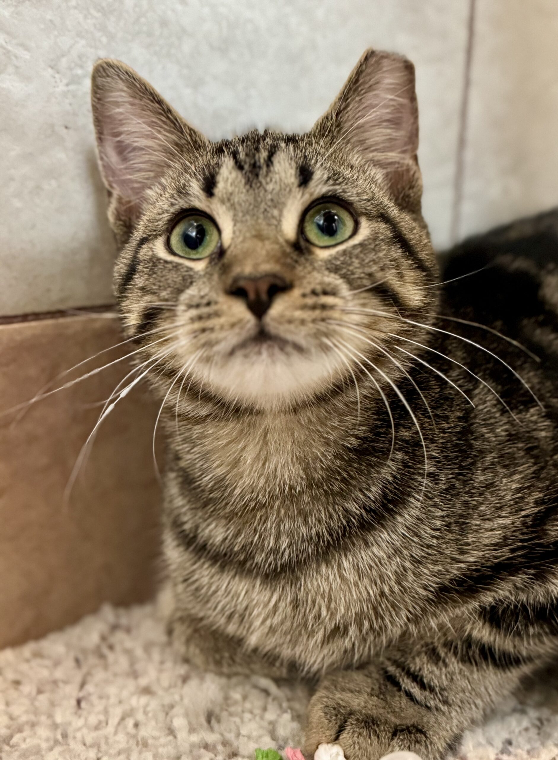Cicero has come a long way in the 2 months he and his siblings have been in foster care, proving how docile a disposition he truly has. He loves to play with string and wand toys and anything that spins or moves. He is also a snuggler climbing onto your lap for pets in exchange for purrs. he can be picked up, but prefers not to be carried around. With his beautiful swirl coat pattern of varied shades of brown, from chocolate to tan, he is a handsome boy. If you are interested in a lovely pair, check out his sister Tulia, an all black mini panther.