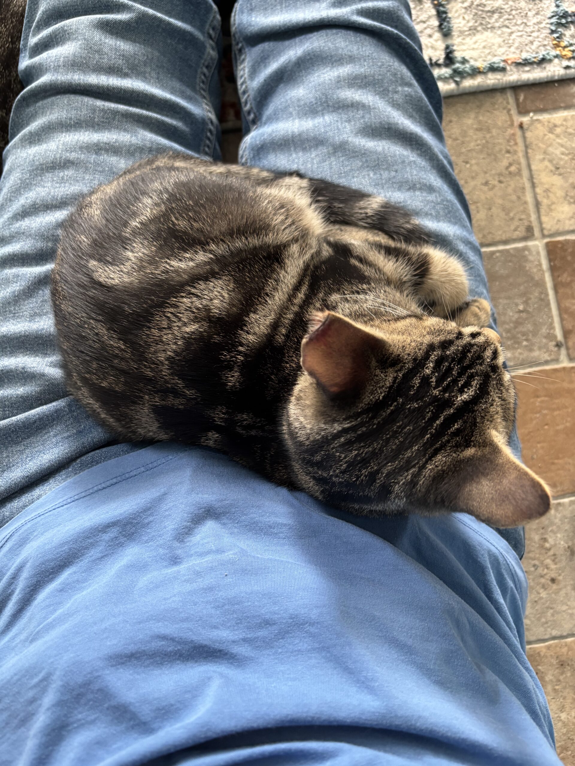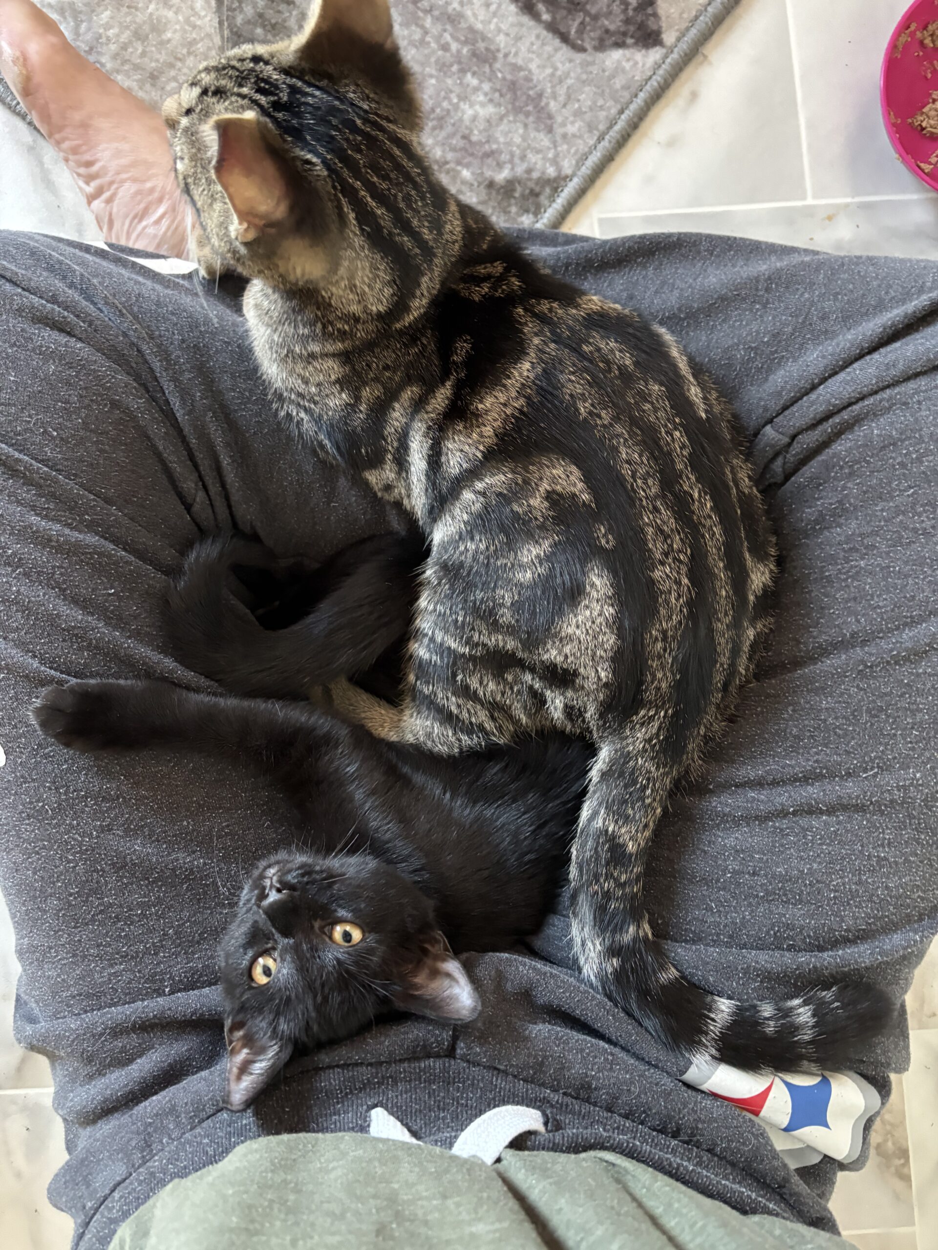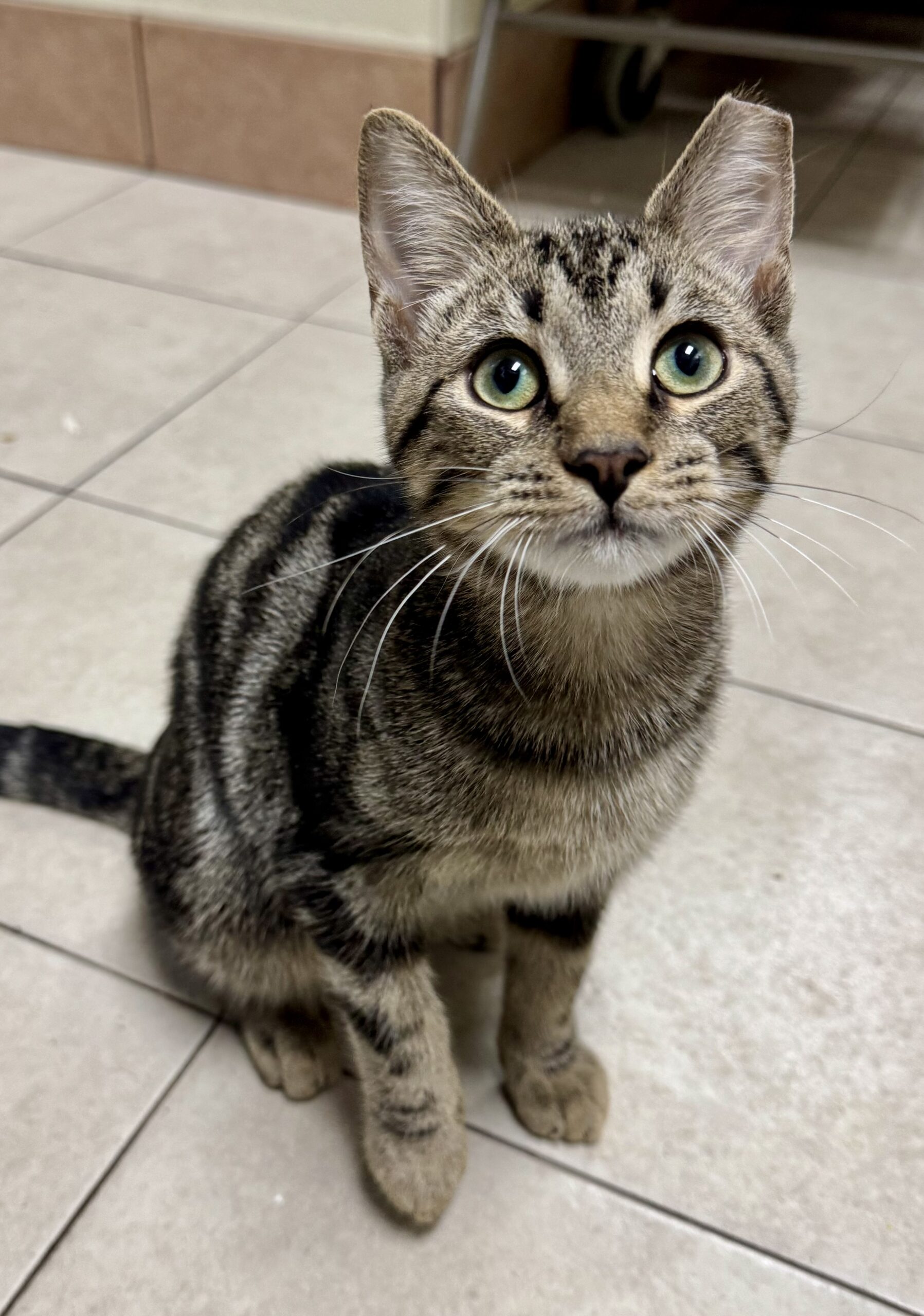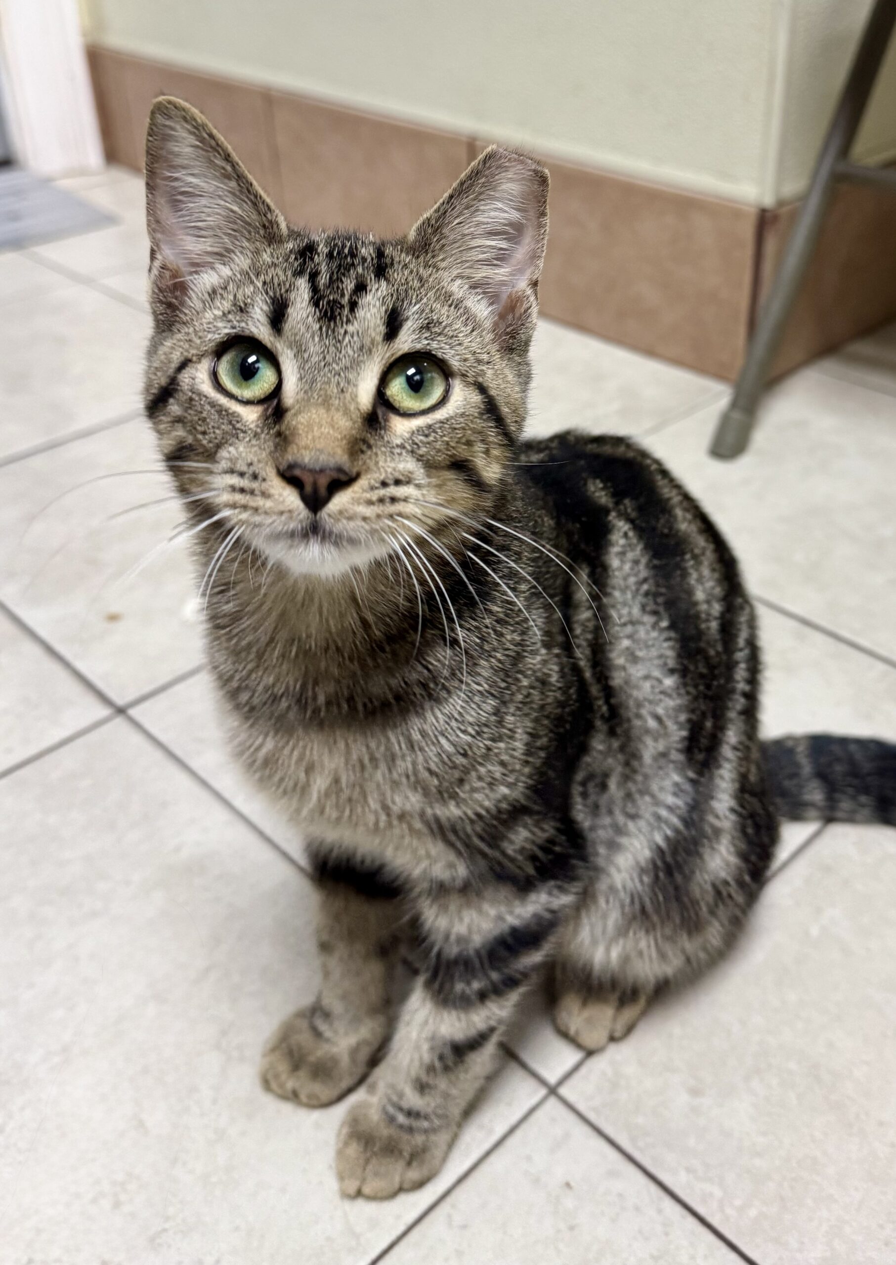 Cicero has come a long way in the 2 months he and his siblings have been in foster care, proving how docile a disposition he truly has. He loves to play with string and wand toys and anything that spins or moves. He is also a snuggler climbing onto your lap for pets in exchange for purrs. he can be picked up, but prefers not to be carried around. With his beautiful swirl coat pattern of varied shades of brown, from chocolate to tan, he is a handsome boy. If you are interested in a lovely pair, check out his sister Tulia, an all black mini panther.