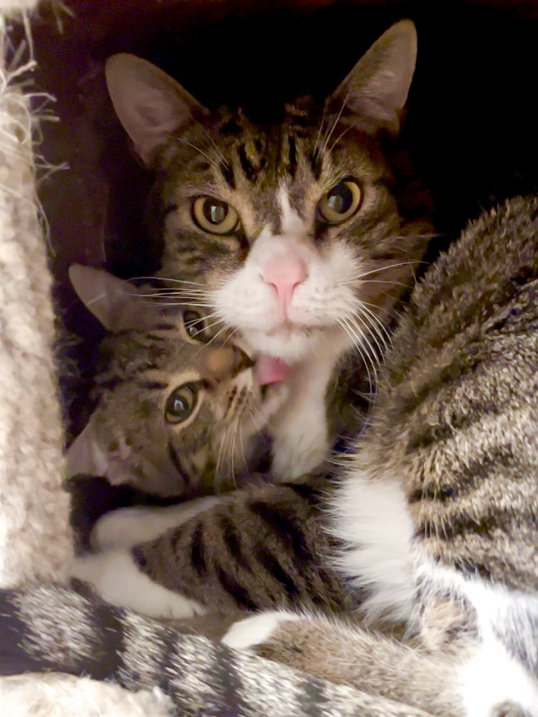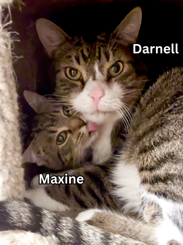 Darnell was scared and confused again, but he soon made a friend - a little 4-month-old kitten named Maxine! Darnell immediately "adopted" Maxine when she arrived in rescue, grooming her, snuggling her and helping her find her confidence. We would love to find them a home together if possible! (Check out Maxine's profile here).