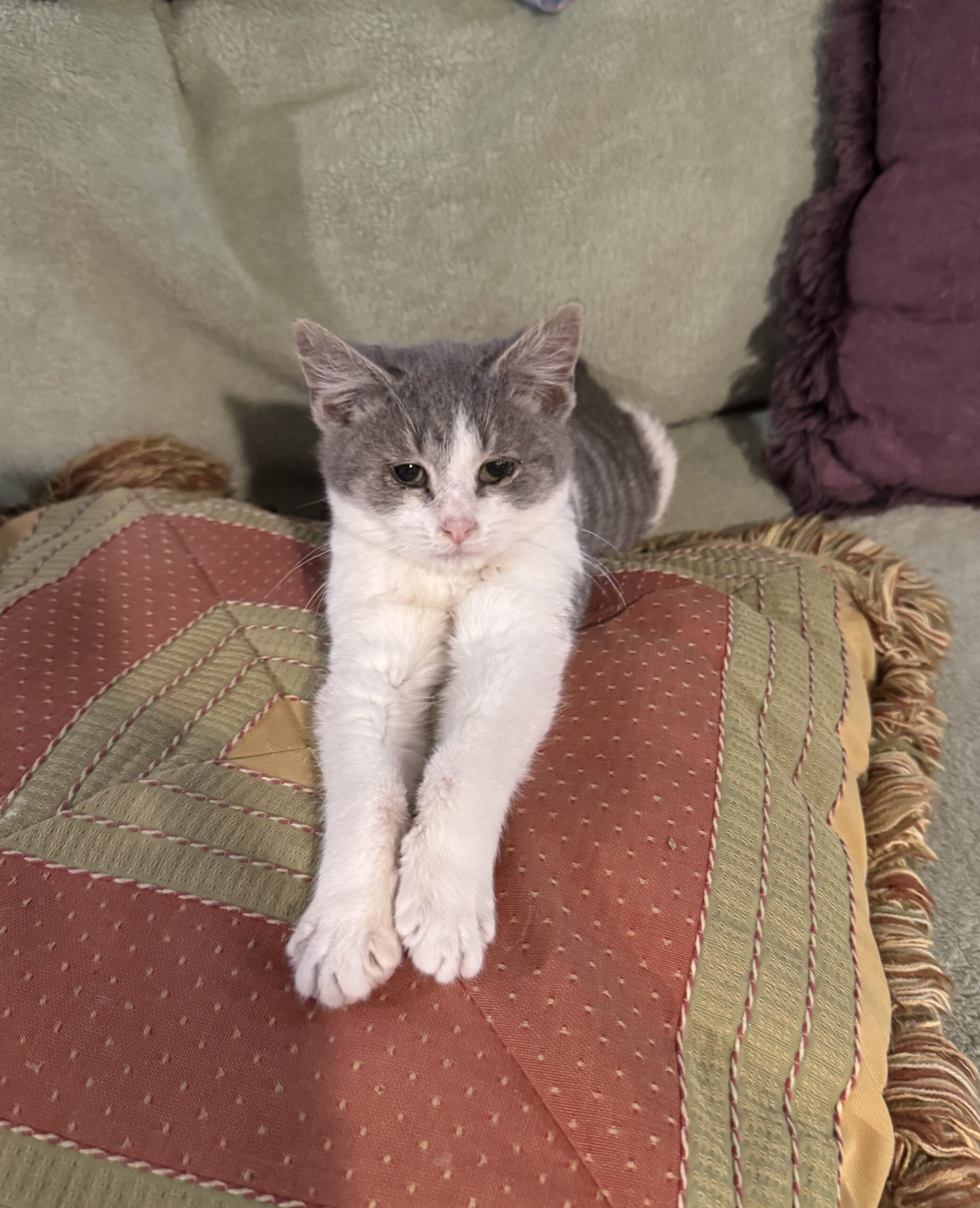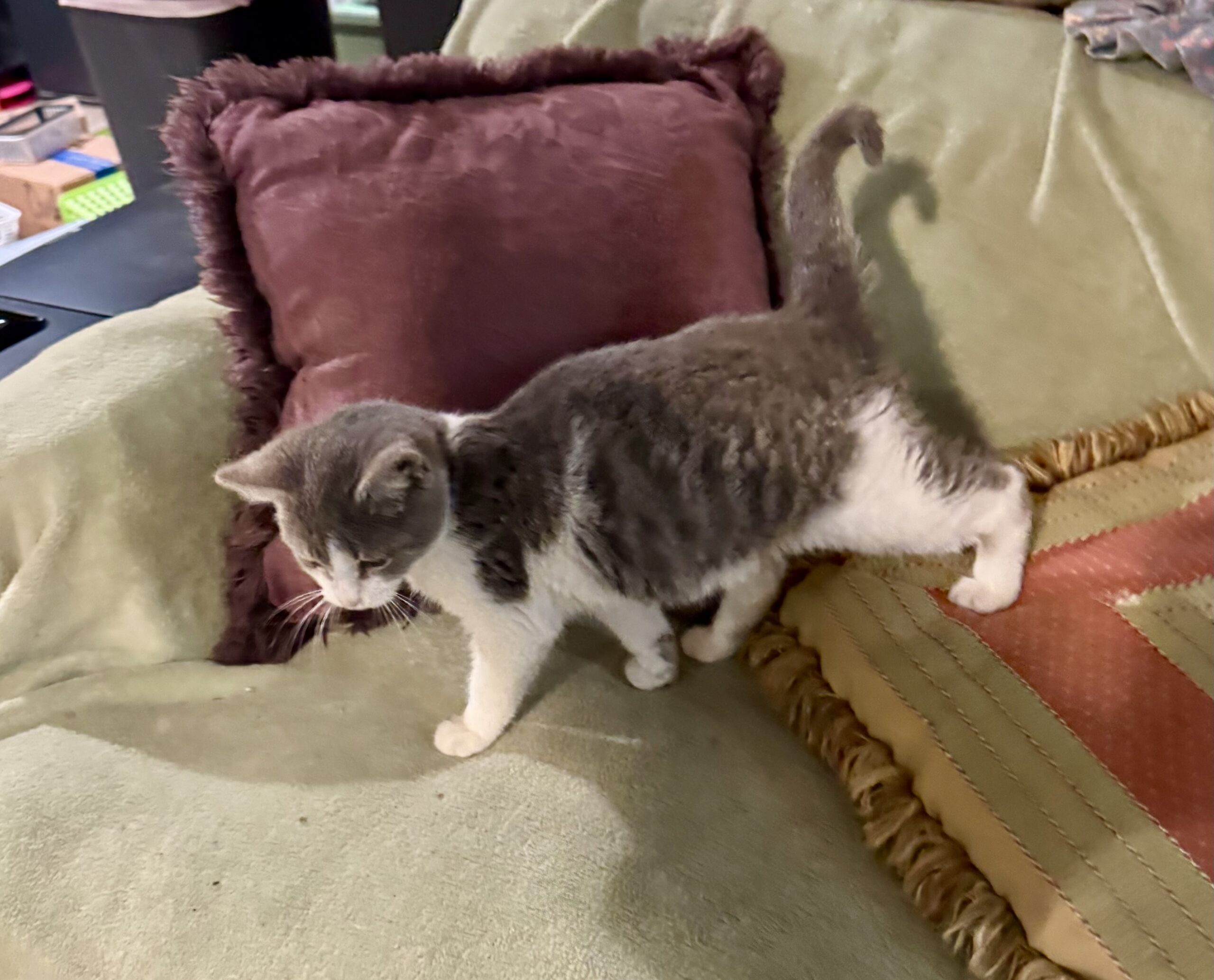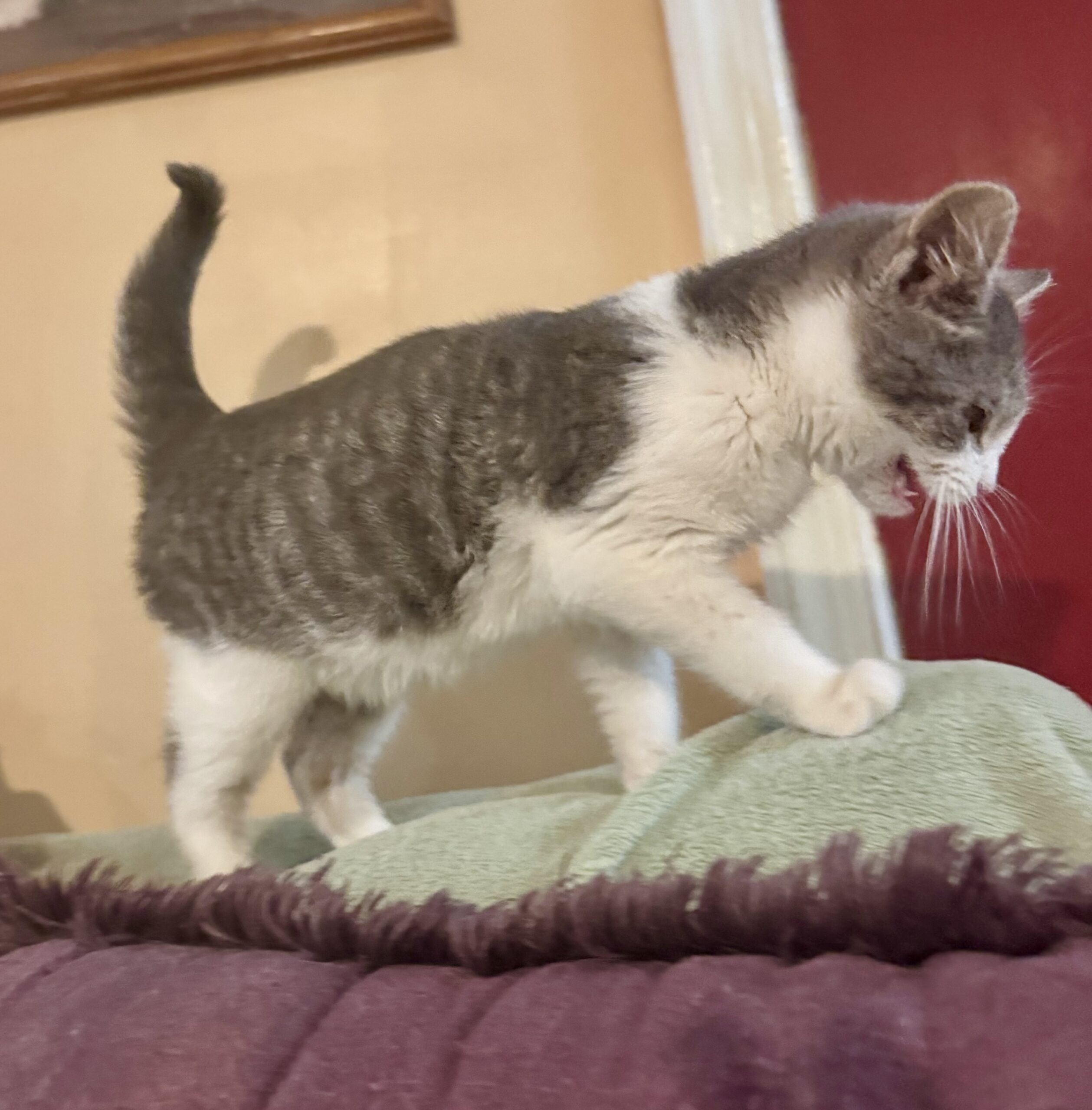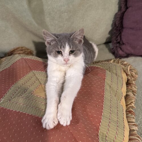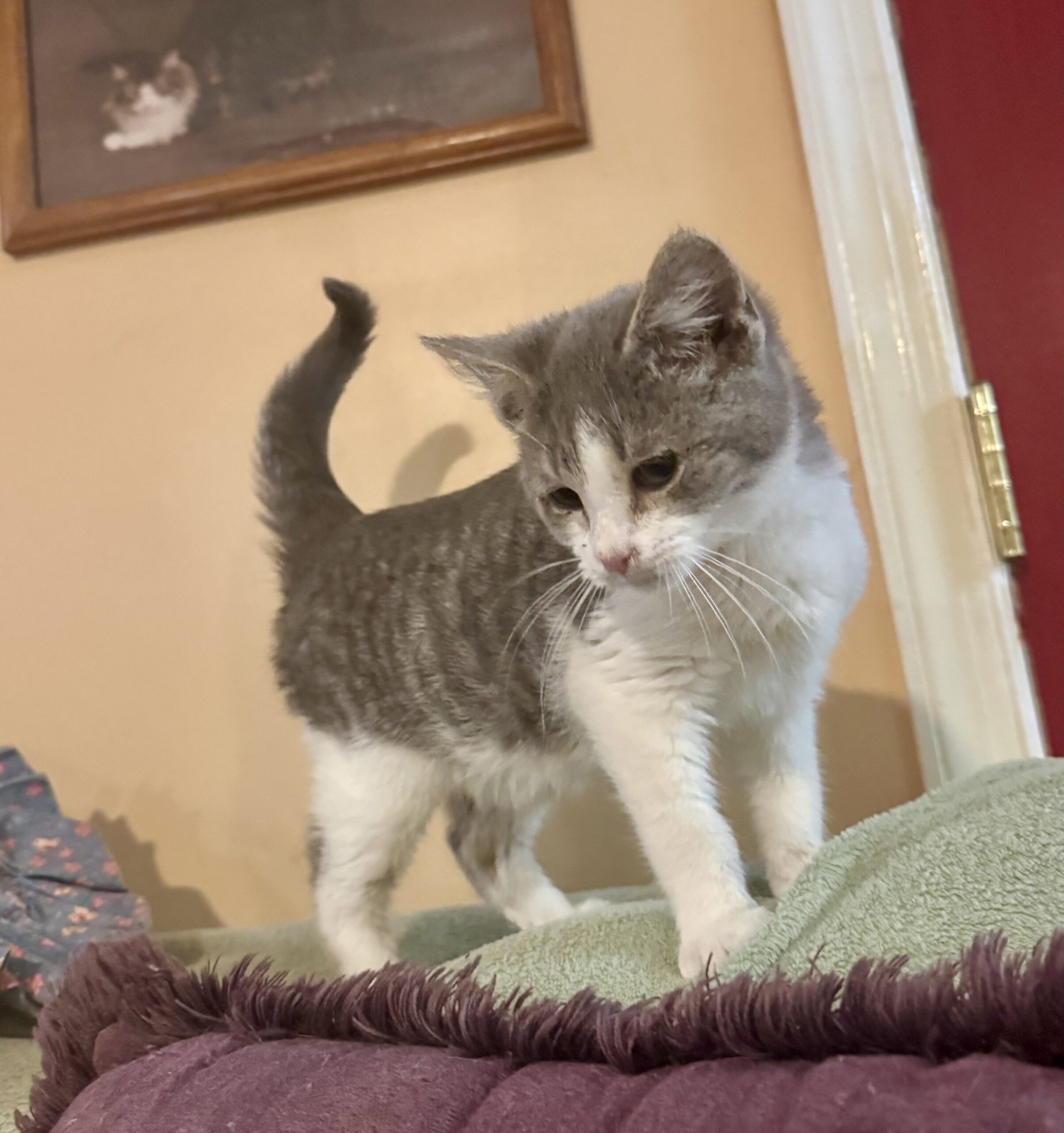 Hi! I'm Echo, a kitten with a zest for life! Despite just shaking off a head cold, my spirits are high. I love exploring every nook of my temporary home, playing with toys, and cuddling up with anyone who'll share a warm lap. I'm known for my funny antics that keep everyone laughing. Being brave and smart, I quickly learn new games and tricks. I'm looking for a forever home where I can share all my love and energy. Adopt me and fill your life with joy and playful adventures!