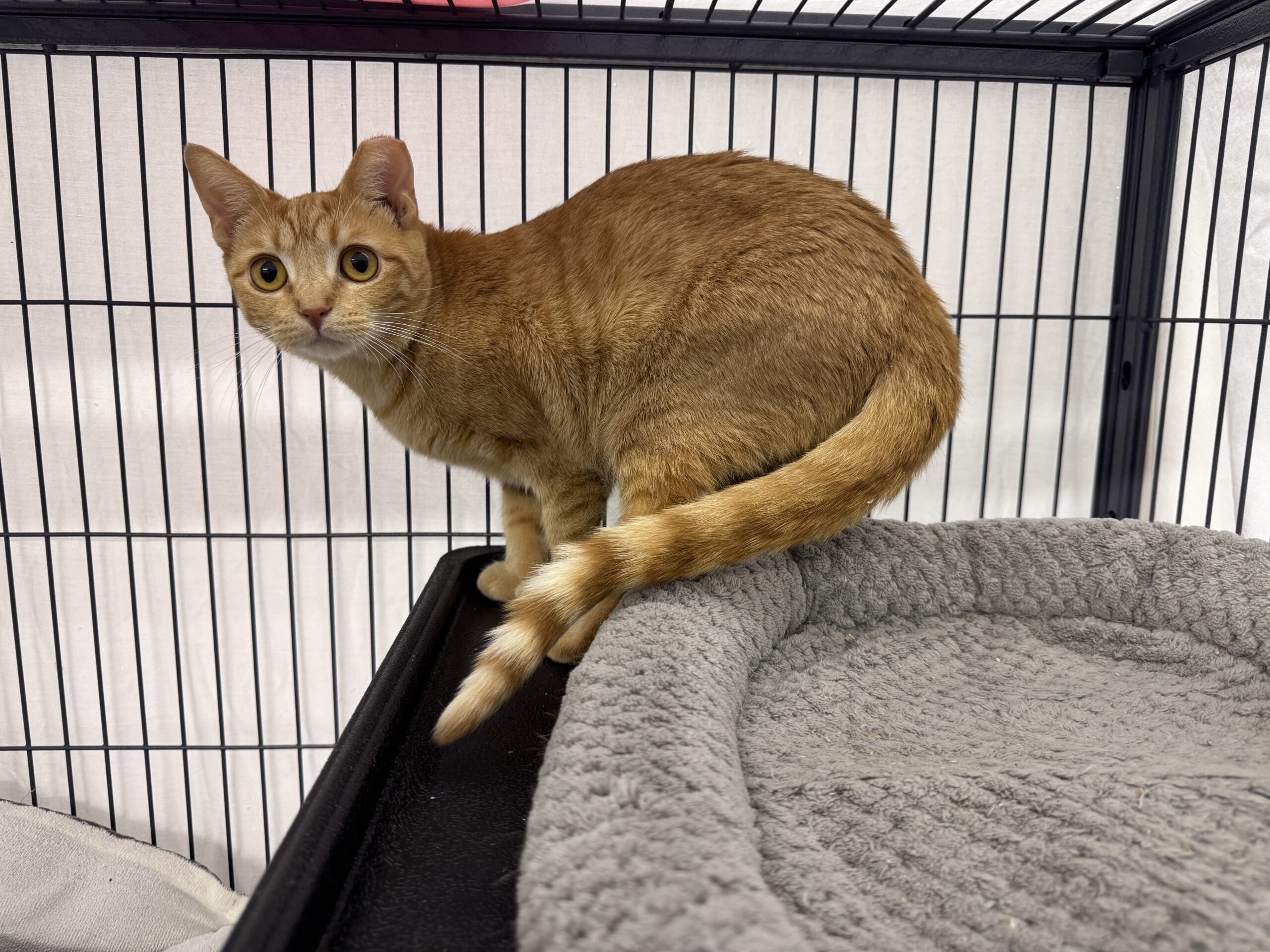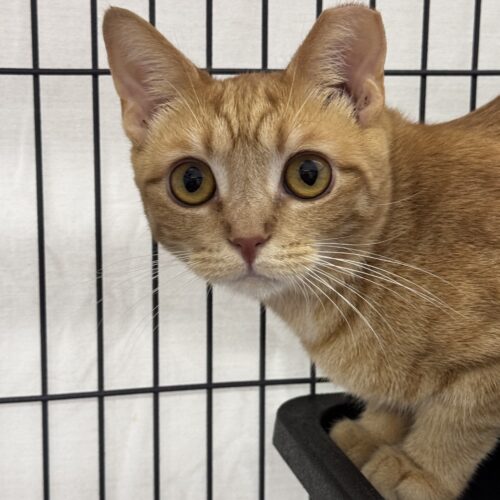 Fergie is a sweet girl who may be a little shy at first, but her big, beautiful golden eyes will draw you right in. Once she feels comfortable, she truly enjoys gentle pets and loves spending time playing with her toys. Fergie is bonded with her sister, Maya, and the two share a special connection that helps her feel safe and confident.
