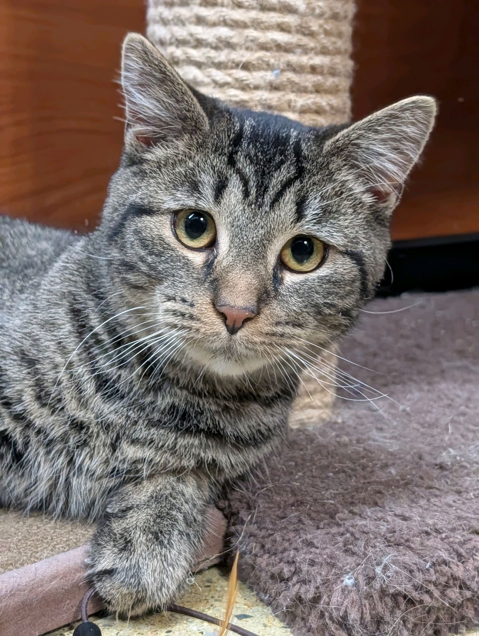 Meet Galigula, a delightful kitten with a personality that shines as bright as her spirit. This sweet, cuddly, and friendly little feline is not only loyal but also quite the chatterbox when she seeks your attention. Galigula's engaging and loving nature makes her the perfect companion for anyone looking for a furry friend to share life's moments with. Her talkative demeanor ensures you'll never feel alone, and her loyalty means she'll always be by your side. Adopt Galigula today and experience the joy of unconditional love and companionship.