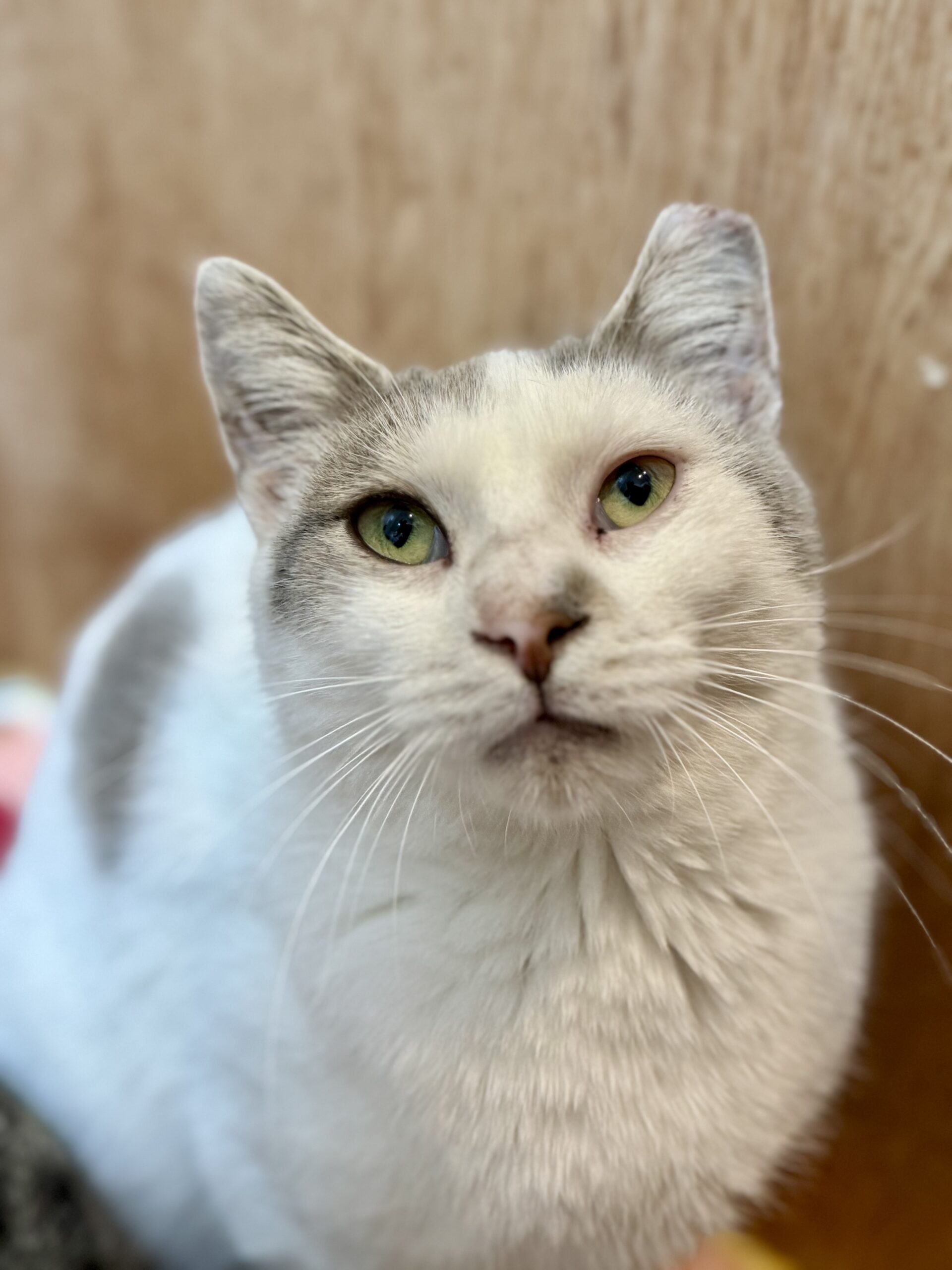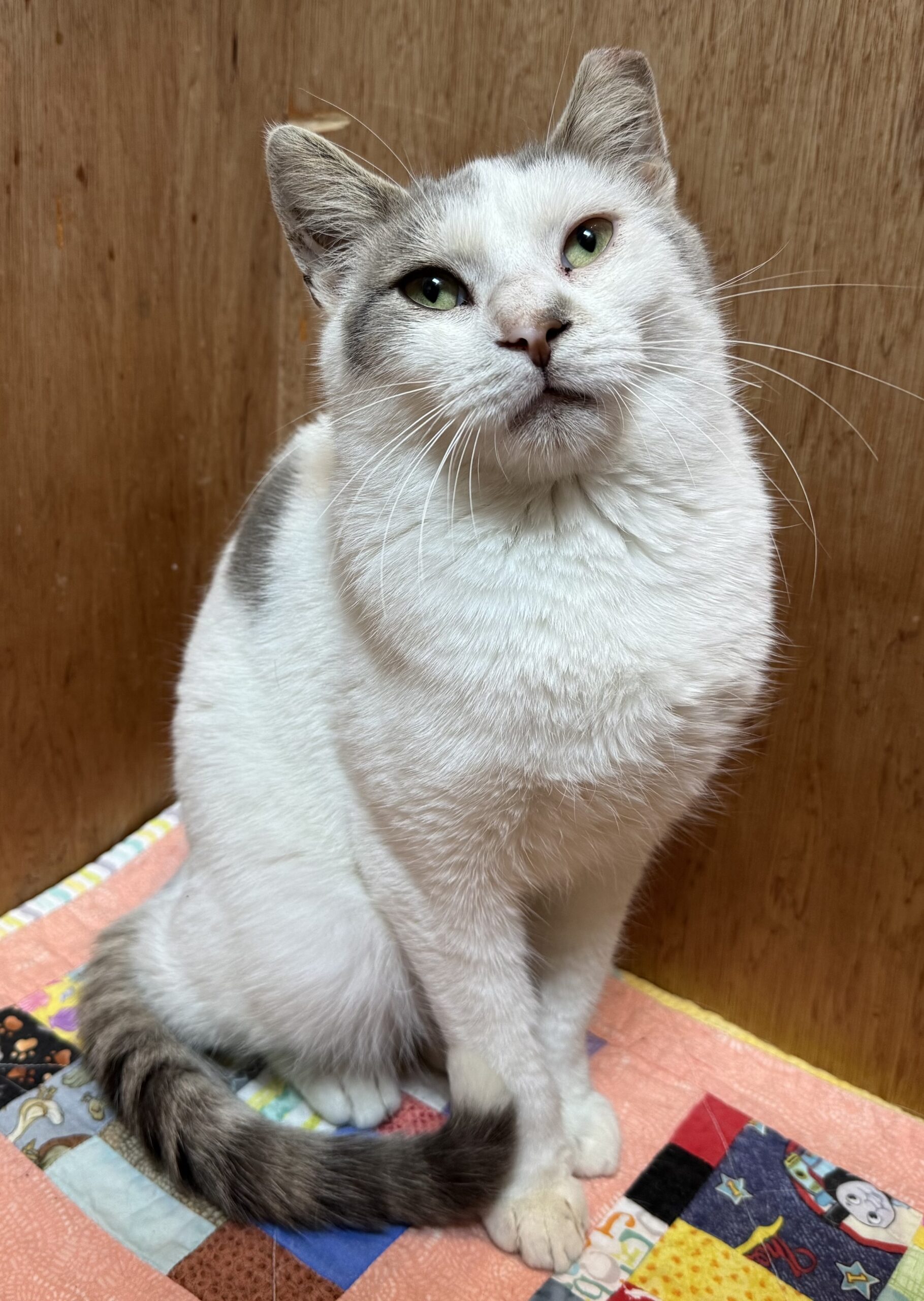 Meet George, a young and sweet cat with a gentle soul. He's a bit shy and nervous when you first meet him, but give him a little time and he'll cuddle right into your heart. George has a particular fondness for Tiki treat sticks, which are sure to be the way to his heart. If you're looking for a quiet, loving companion who will treasure your company, George is your perfect match. Adopt George and discover the joys of a gentle friend who will bring warmth and affection into your home.
