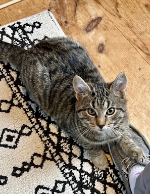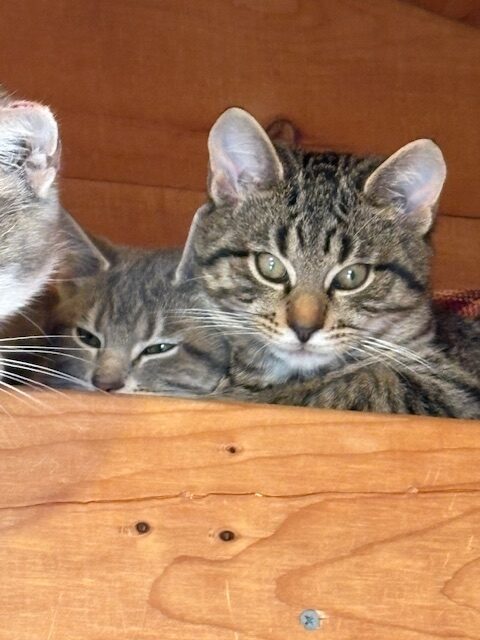 Gilbert is getting ready for his new home! Gilbert and his siblings (and mom!) were rescued from the outside life and have been learning to be indoor cats in their very own Treehouse penthouse. All of Gilbert's siblings have homes, so now it's Gilberts turn! Of all the kittens, Gilbert loves to be pet! He has a giant purr to go with it. He's very playful with his siblings, but also likes to sit with someone on his own making him the perfect only-cat-home cat if needed! Put on the YouTube cat TV and he'll be your bestest friend. I am litterbox trained. Gilbert will be fixed and vaccinated before adoption.