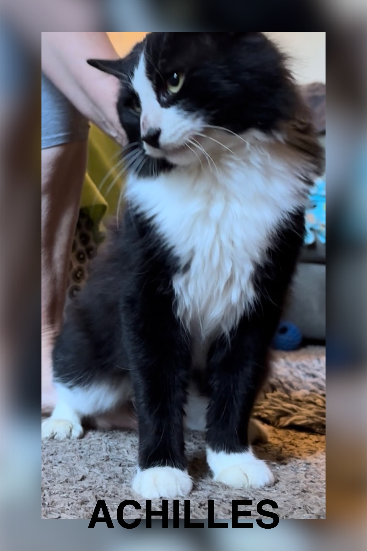 To meet Achilles is to love him. He is a gentle companion. And like any gentleman showers you with affection. Such an handsome medium haired boy who gets along with his housemates which include a medium size dog. He is an easy keeper and easy to handle. He is current and up-to-date on all his vaccines, negative FIV FEeLV. And micro chipped.