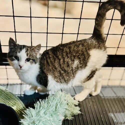 Hi! I’m Keke, a kitten full of life and love. My days are spent playing, exploring every nook and cranny, and figuring out fun puzzles. I adore cuddles and will start purring the moment you touch me, promising a bond of friendship and loyalty. I'm always ready for a game or a quiet moment by your side. If you're looking for a playful, smart companion who will keep you entertained and loved, I'm your girl! Why not bring me home? I’m sure we’ll be the best of friends!