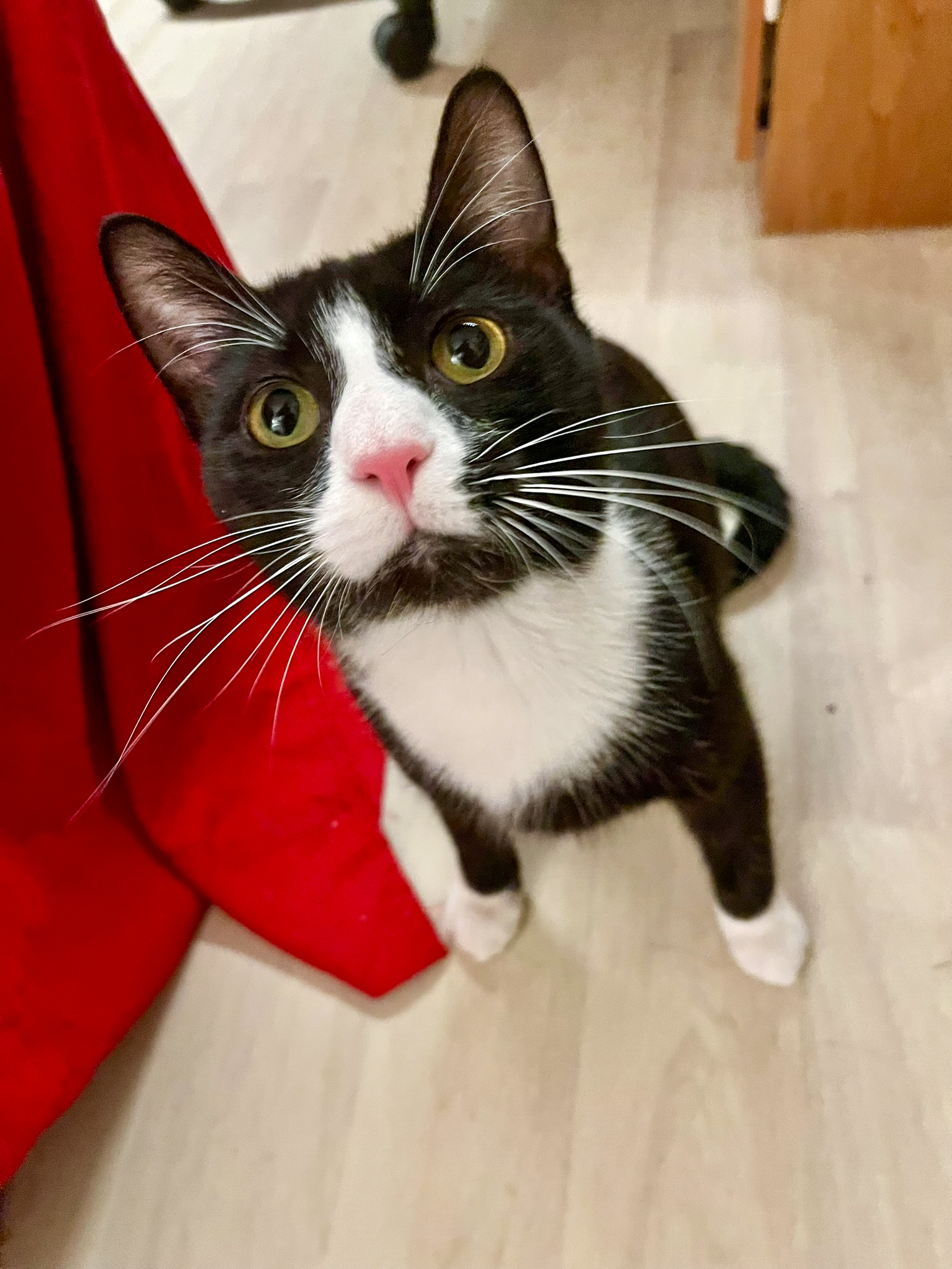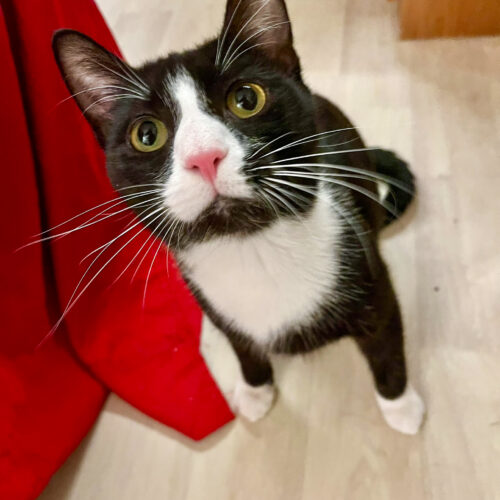 Kelvin is a sweet 9-month-old cat looking for a calm, loving home with humans who will happily shower him with attention and snuggles. He was adopted from Heavenly Paws as a kitten in spring of 2025 but was returned after developing litter box issues. Once back in foster care, those issues resolved completely, leading us to believe his previous home was simply a little too busy for his sensitive nature.