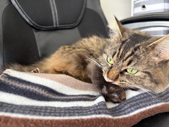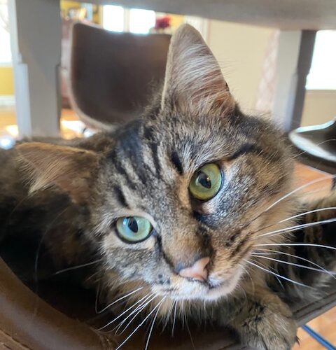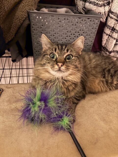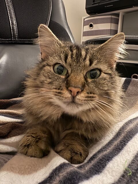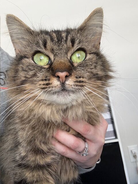 I'm waiting for my special human to get all my loving attention! I'm very shy at first, but once I have earned your trust, I will follow you everywhere! I have beautiful soft fur with the fluffiest long-haired tail. My lovely green eyes will draw you in and make you want to cuddle me forever. I loved to be brushed and will cuddle up next to you while you sleep. I don't like to be carried around often, as I'm still learning how to trust humans. I was found outside in the cold snow and now that I know what a warm cozy home is like, I don't ever need to return outside. Please consider being my forever fur parent and you won't regret it.