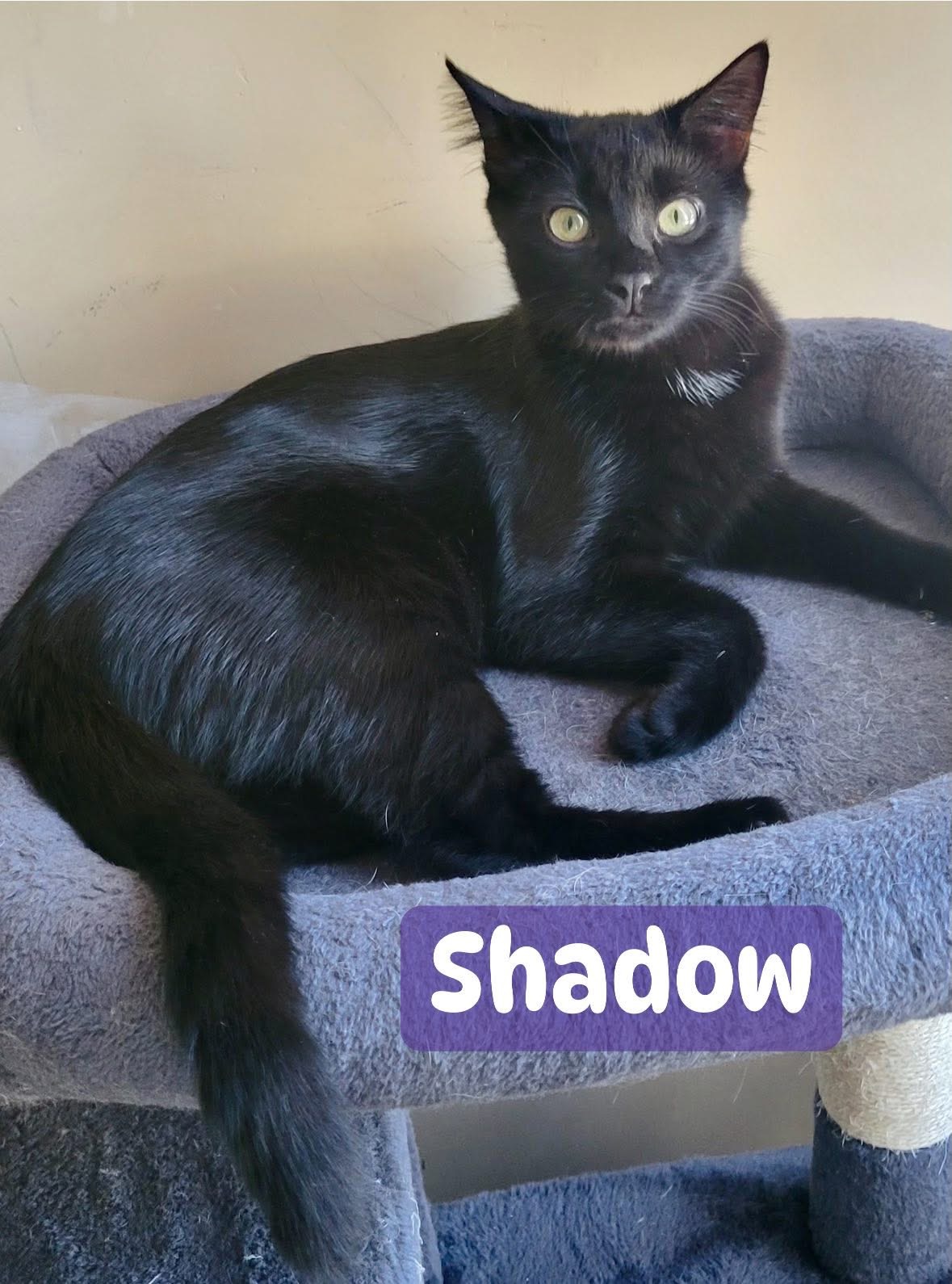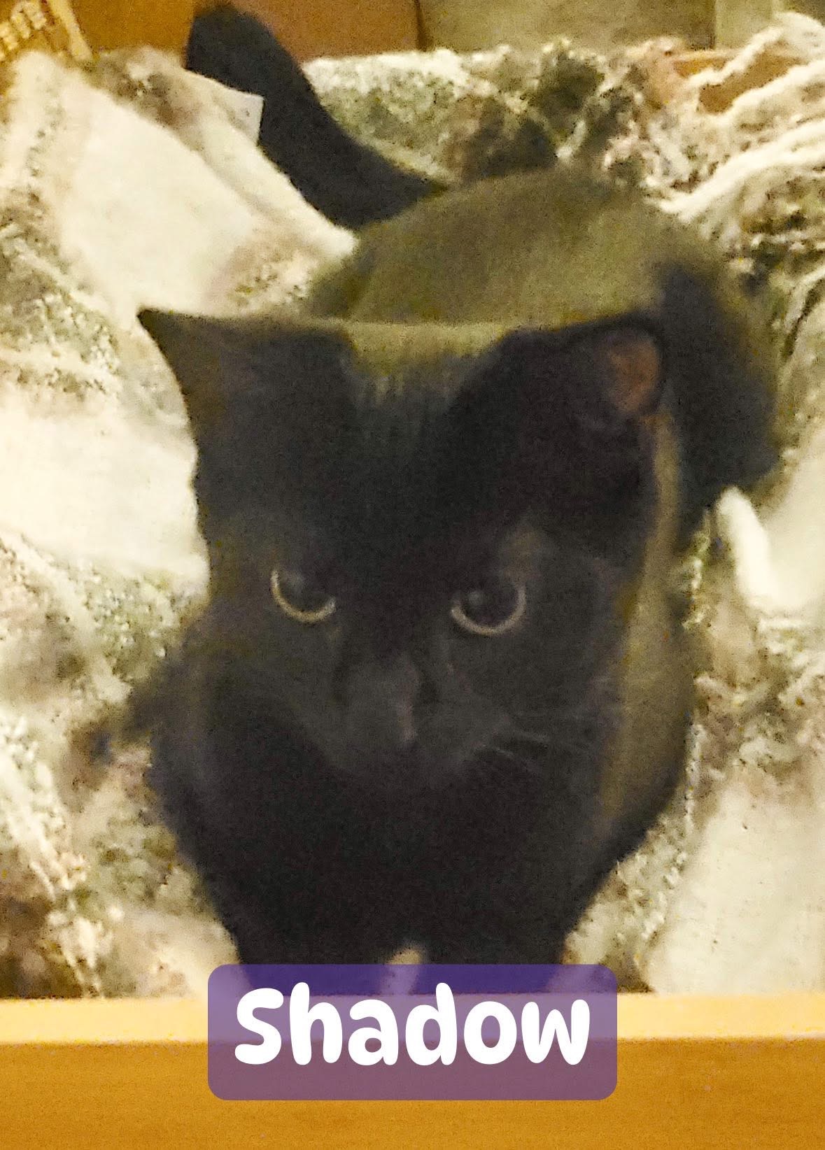 Shadow is also Lilly’s daughter. This sweet girl is part of a litter from a mother that was abandoned outside. She is playful and litterbox trained. Has not been around children or dogs so we cannot testify to her acceptance.