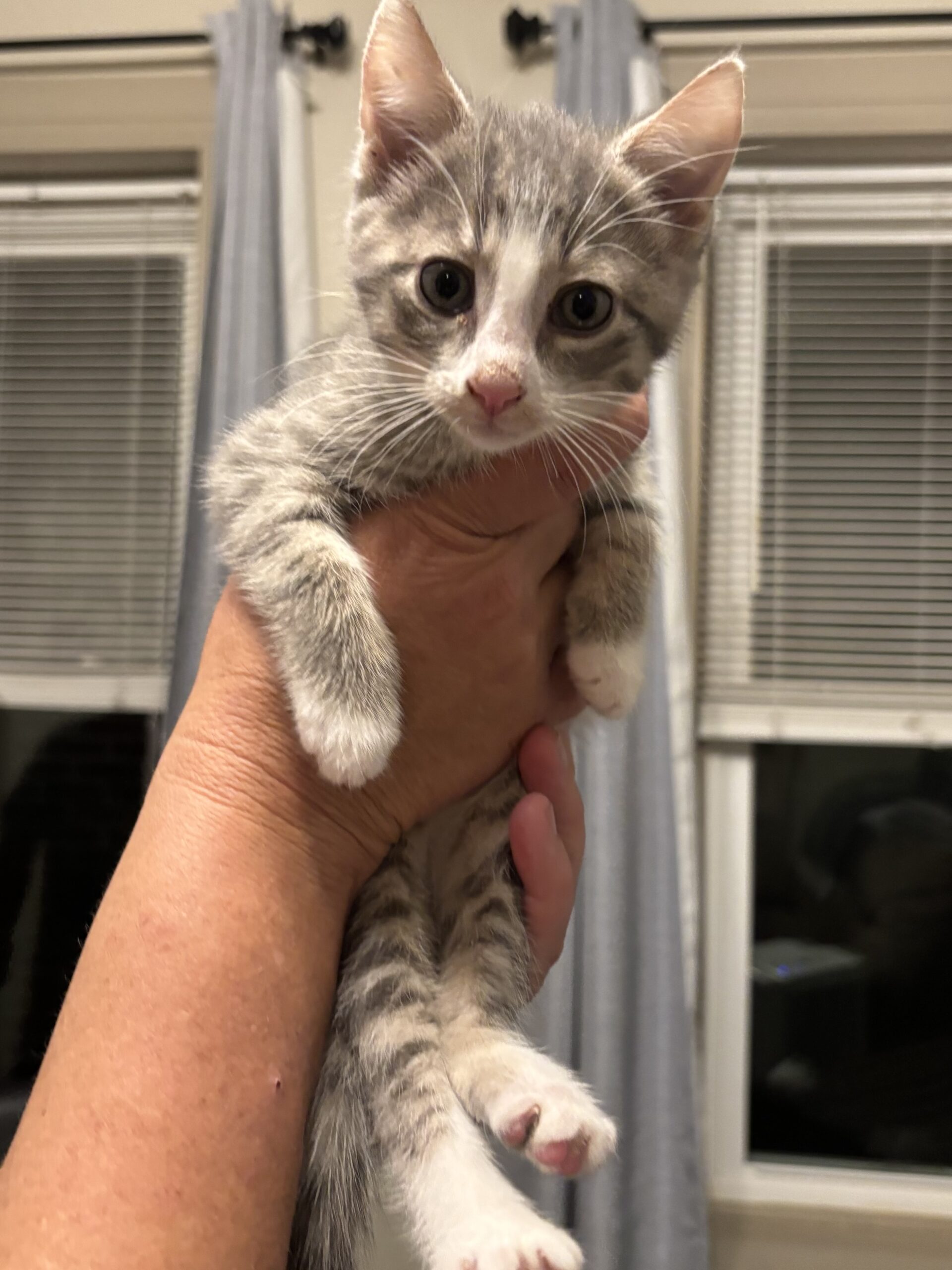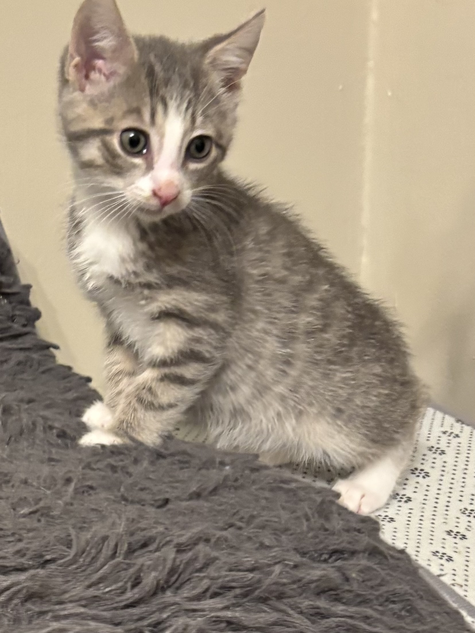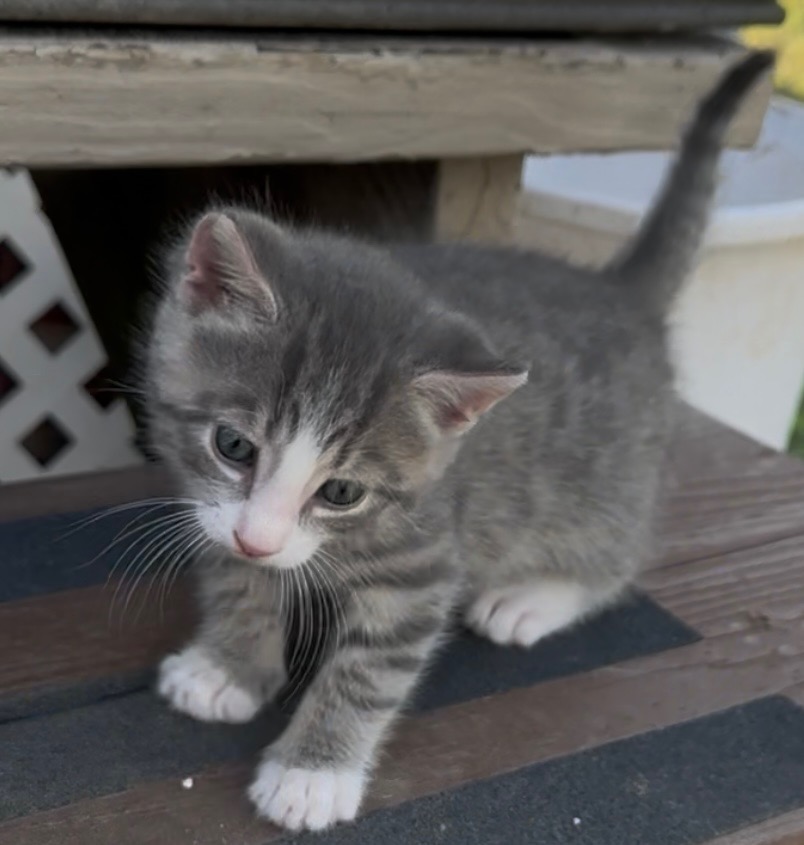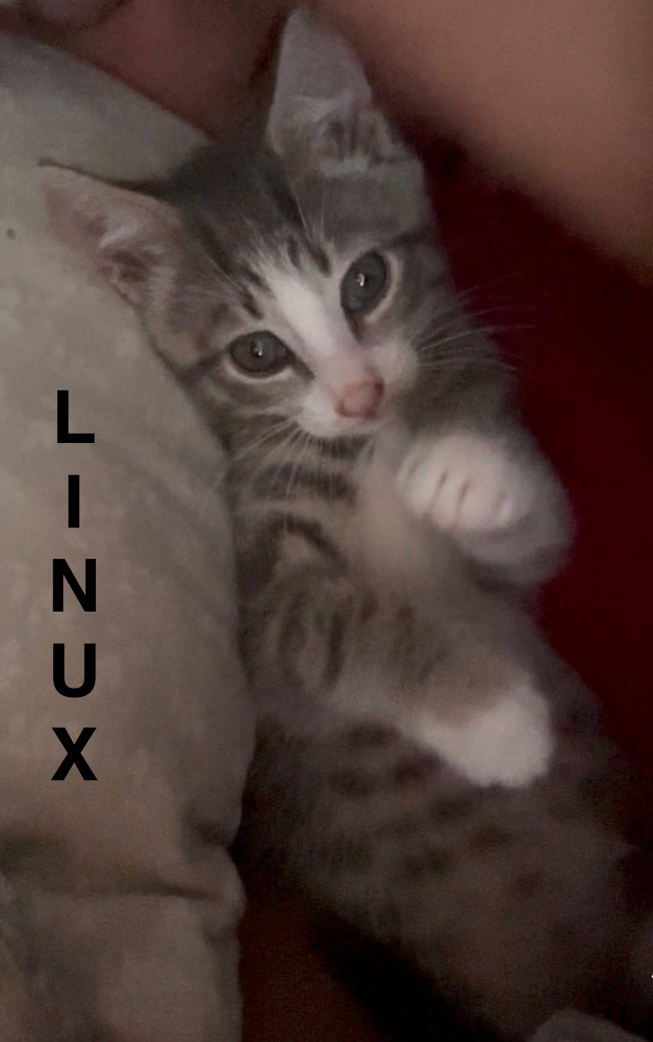 Linux was raised by hand since 2 weeks old. He is very friendly and lovable. Did we mention adorable! He is fostering with a large dog, which he snuggles and plays with too. His favorite spot is curled around your neck to purr loudly in your ear. He has tested negative for FIV/ FeLV, micro chipped and current on age appropriate vaccines.