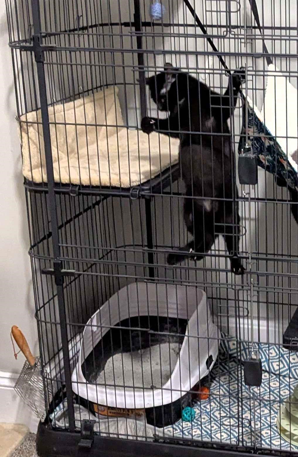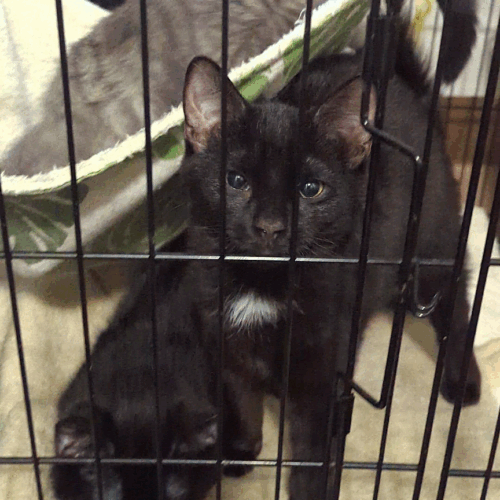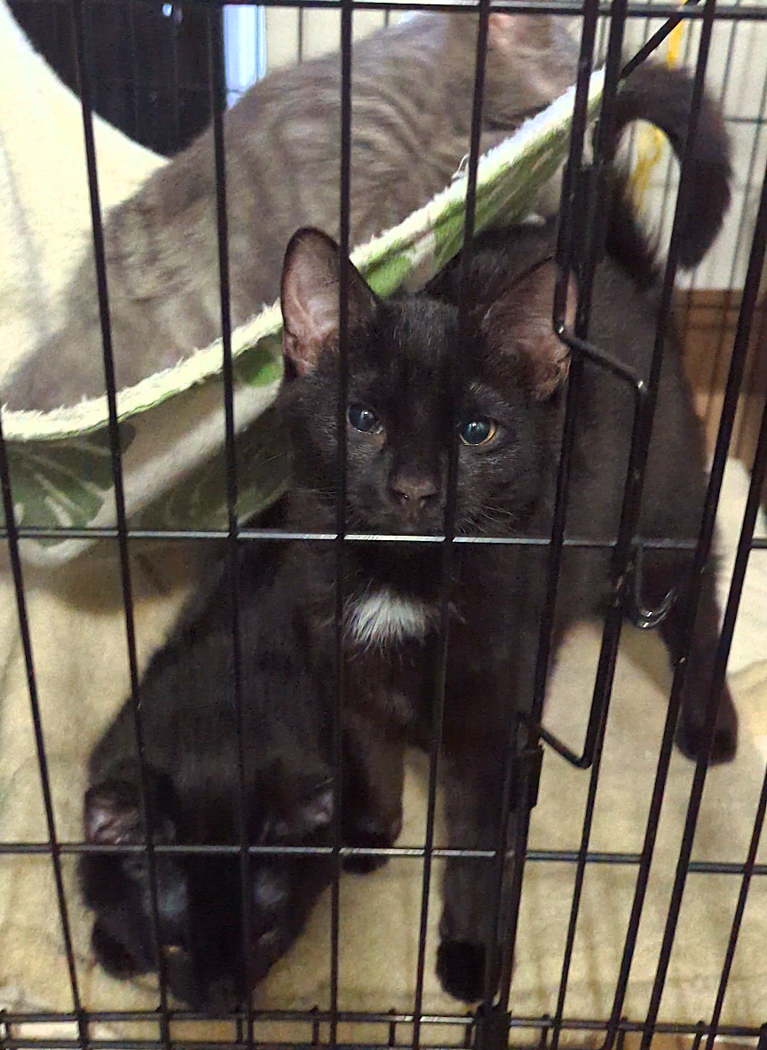 This girl is as smart as she is cute! She loves to play and will zoom around all day before settling in for a good snooze. Nowhere is out of bounds for Macadamia when it comes to exploring, and she's a professional when it comes to climbing to the top of her enclosure. She will make a wonderful kitten for any home, and would love to be adopted with her sister Cashew or to a home with another kitty friend.