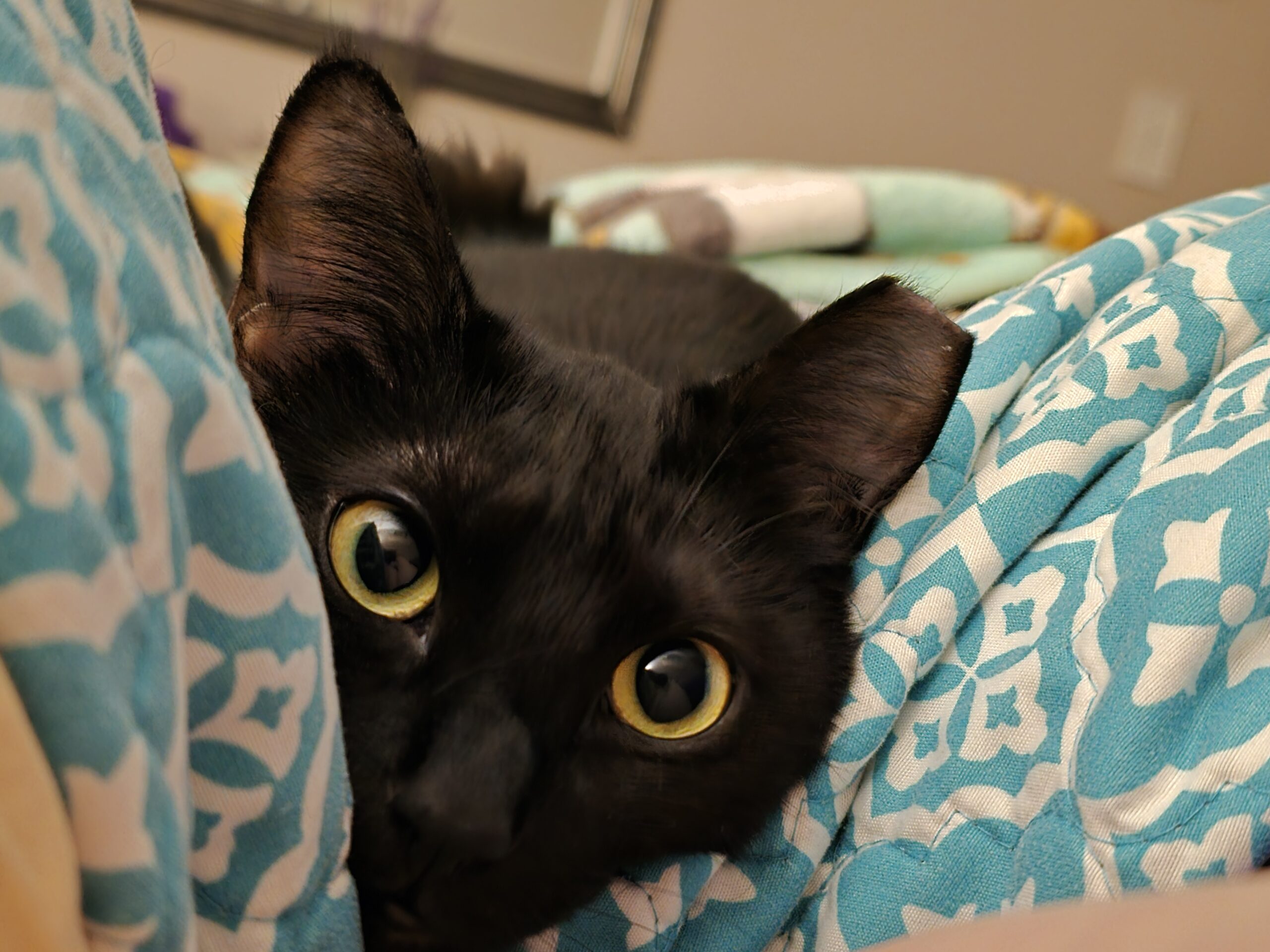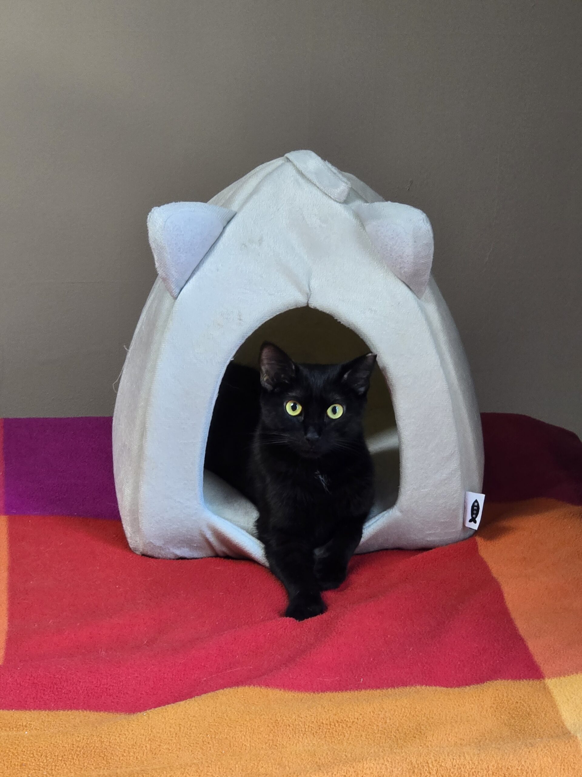 Meet Maddie! This long, sleek girl came to us terrified of just about everything. During her time in foster care, she has become more confident, greeting people with long meows and cautiously exploring. When she feels safe with you, she'll treat you to loud purrs, loving gazes, and nighttime cuddles.