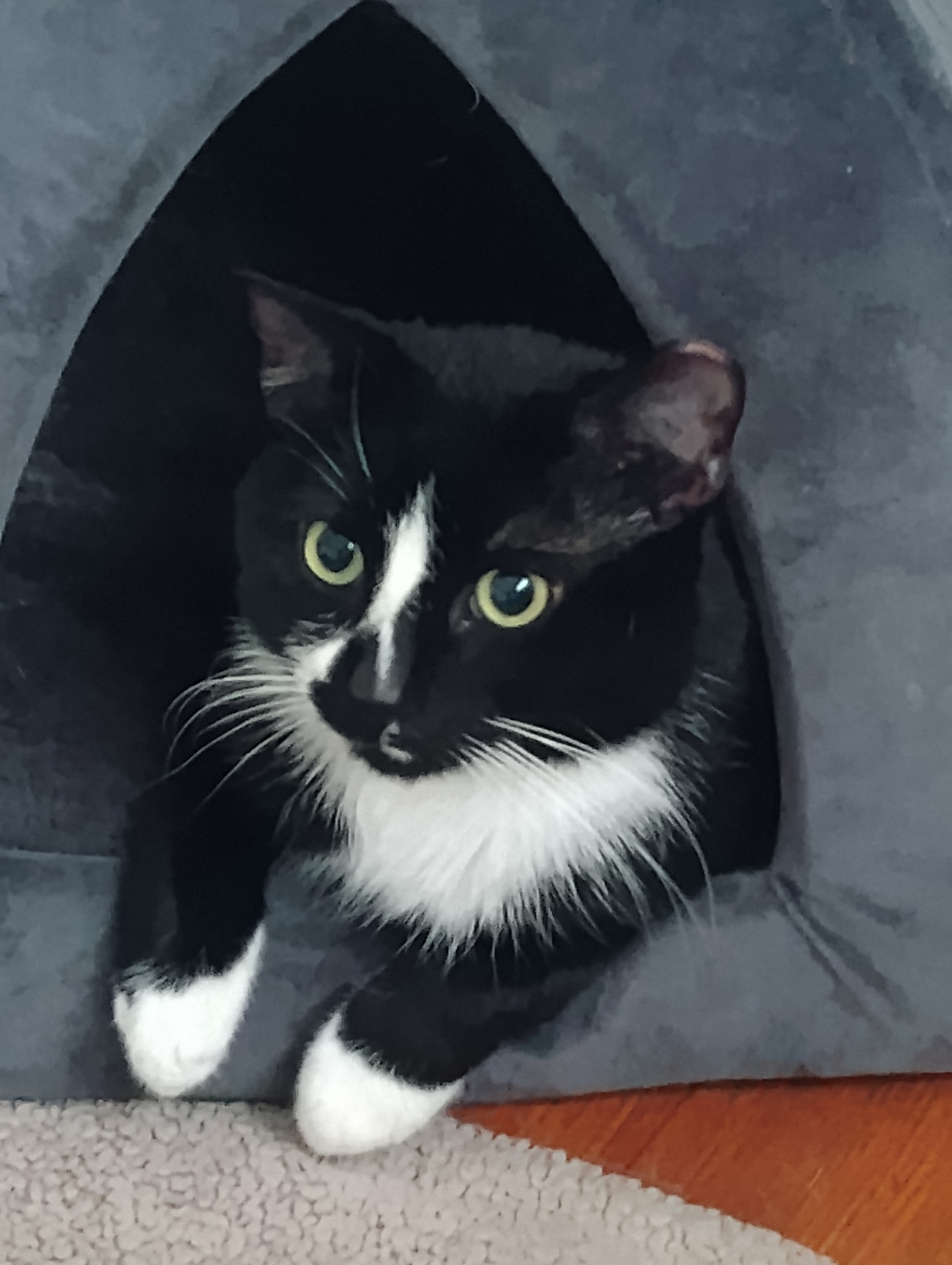 Marvin will walk right into your lap and purr with love.  He can be a little shy/nervous at first but it doesn't take long for him to want to be friends. He is a total gentleman with other cats and will respect their wishes. He would love a buddy to play and snuggle with though. Marvin has been through a lot in his first few years, but it hasn't kept him down. He was found outside, starving, and a kind lady took him in and helped him get better. He is up-to-date on his shots, neutered, and ready for a home of his own. He is FIV+ but that doesn't slow down his enthusiasm for dangly toys or his need for companionship. Marvin is a true treasure, a one-of-a-kind cat. Whoever adopts this boy is in for a lifetime of love.