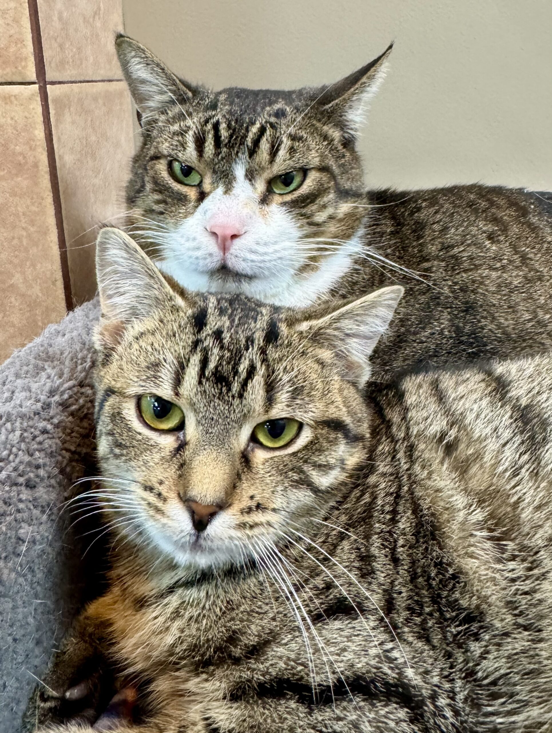 Have you ever heard that the best thing to do in prison is befriend the biggest guy there? That's pretty much what Maxine did with 17-pound Darnell. The two of them have become inseparable, and can often be found cuddling and grooming each other. They make an odd couple - with a 12 pound weight difference! - but we would love to see them find a home together.