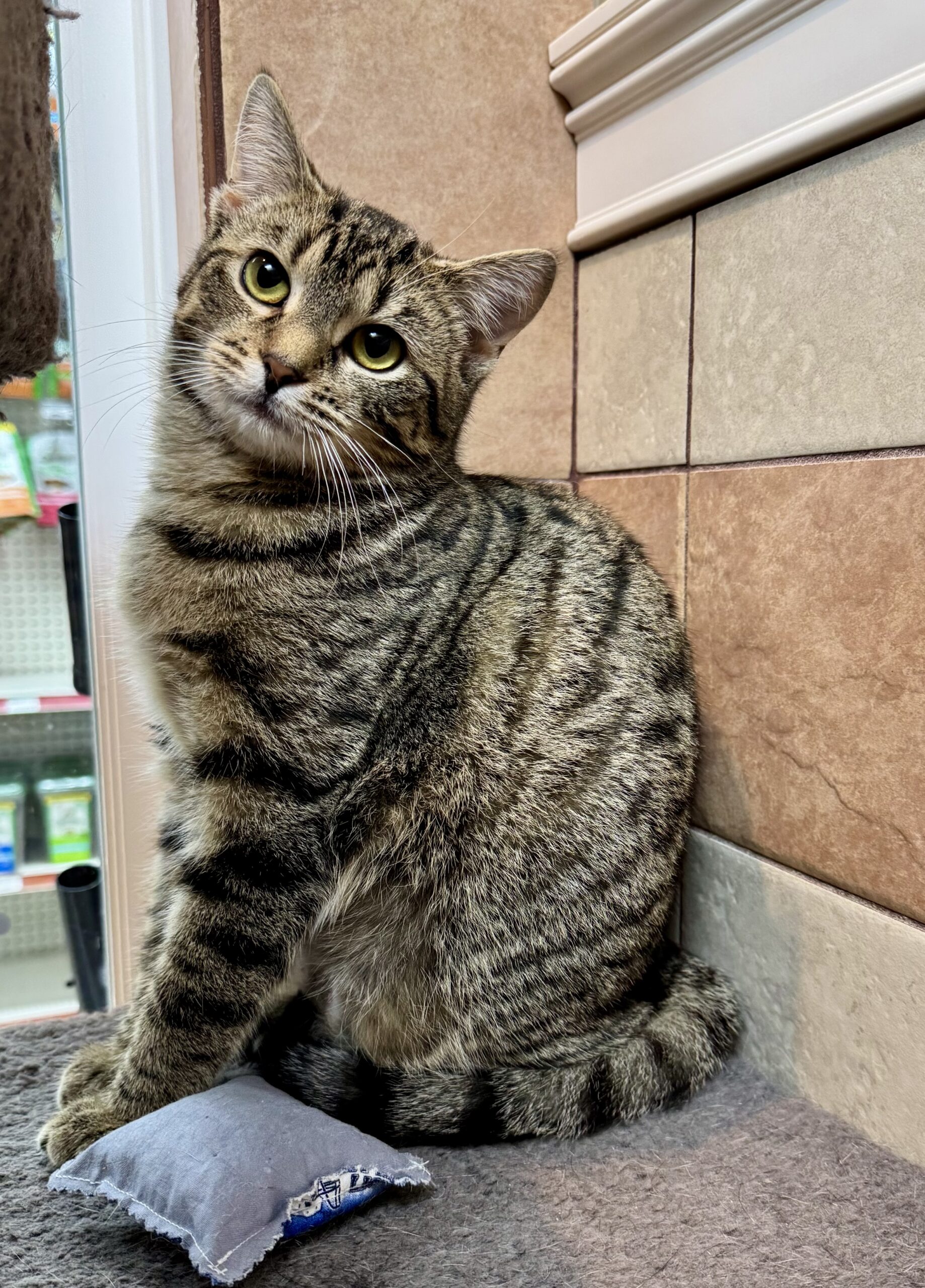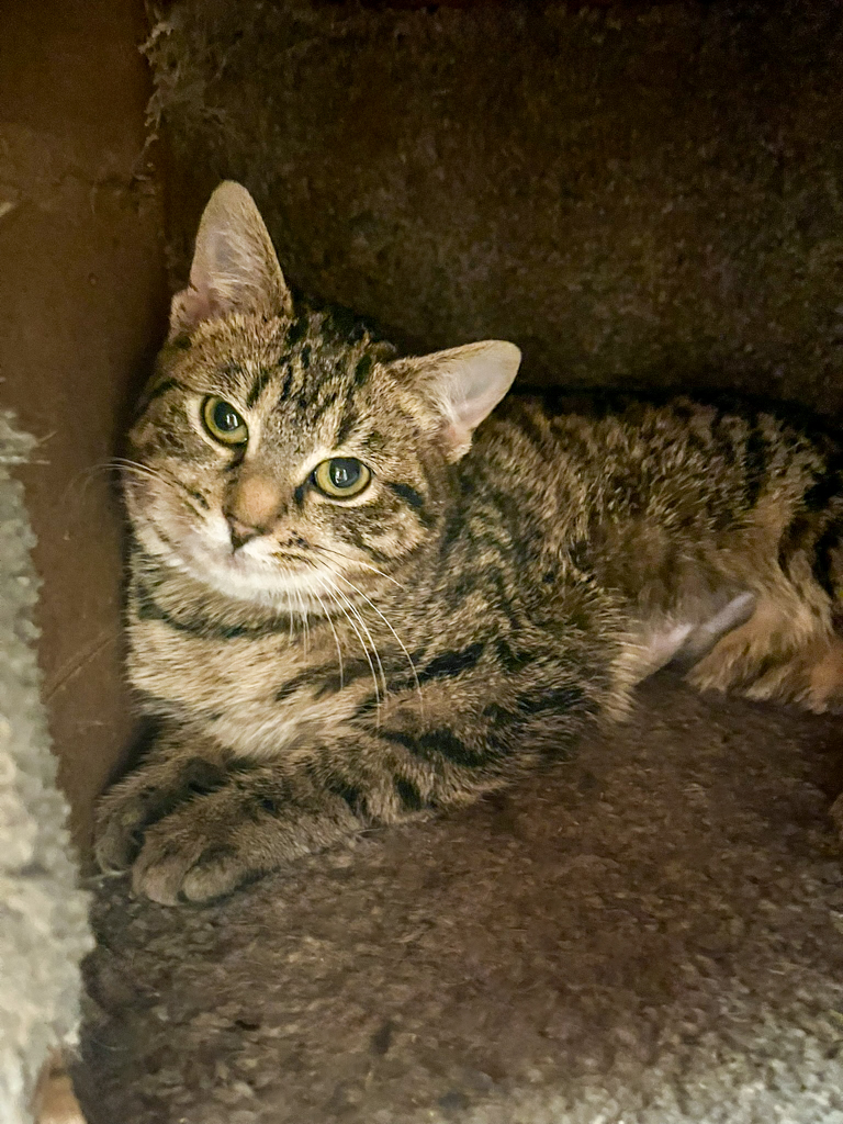 Maxine is a beautiful 5-month-old tabby looking for a home where she can blossom. After living the first few months of her life outside, Maxine was scared when she first came into rescue, but she soon learned to trust people - as well as her new best friend, Darnell!