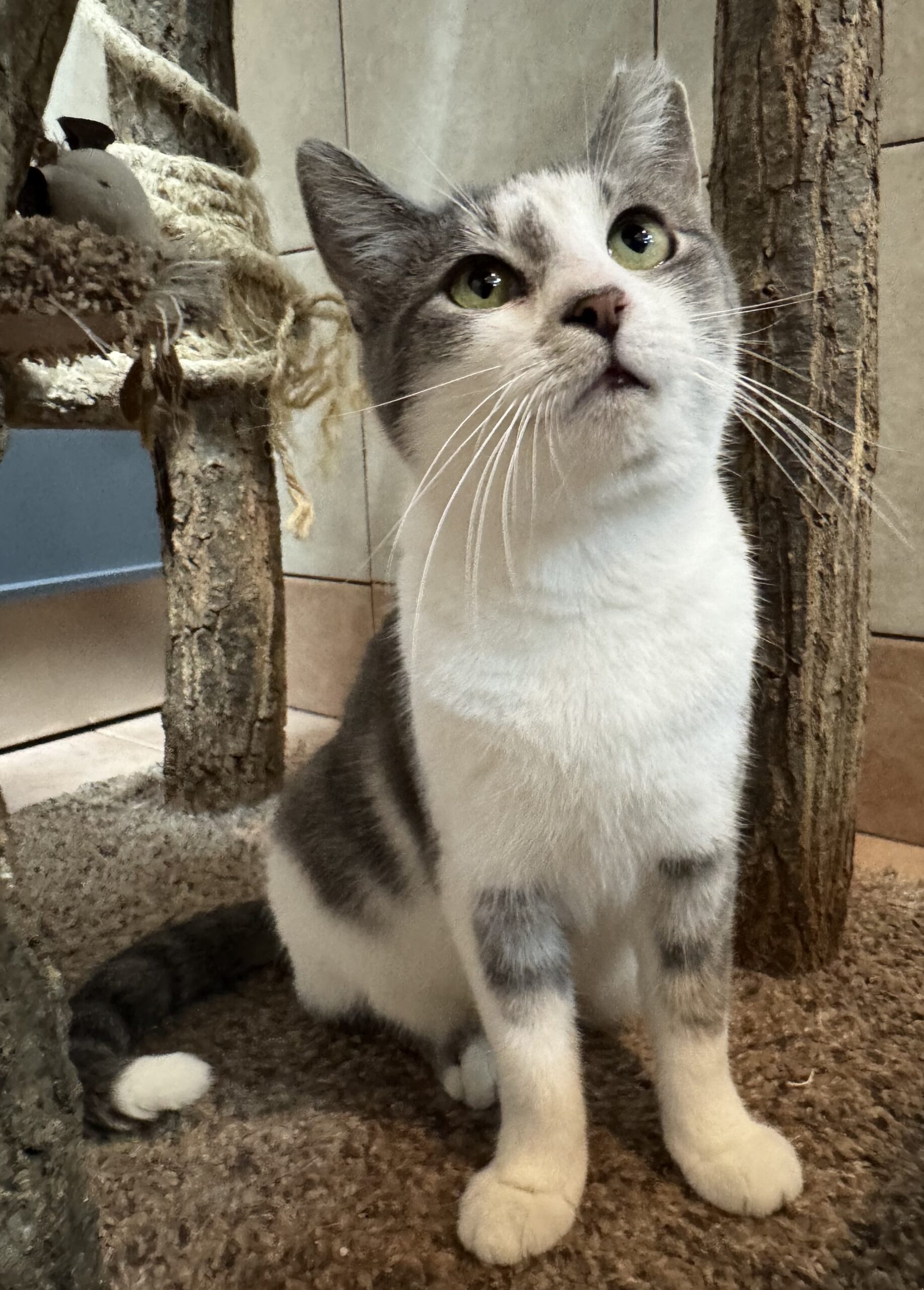 Hi, I'm Mika! As a kitten, I love when people gently rub my belly and play with me. I'm very friendly and cuddly, always ready to snuggle up with a kind human. Spending my days dreaming of a forever home where I can share all my affection. I promise to be your gentle companion, always there to greet you with purrs and love. Adopting me means endless cuddles and a forever friend who adores attention. Let's make wonderful memories together!