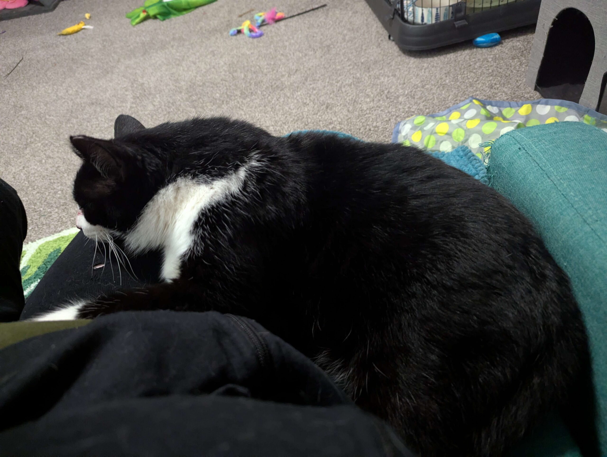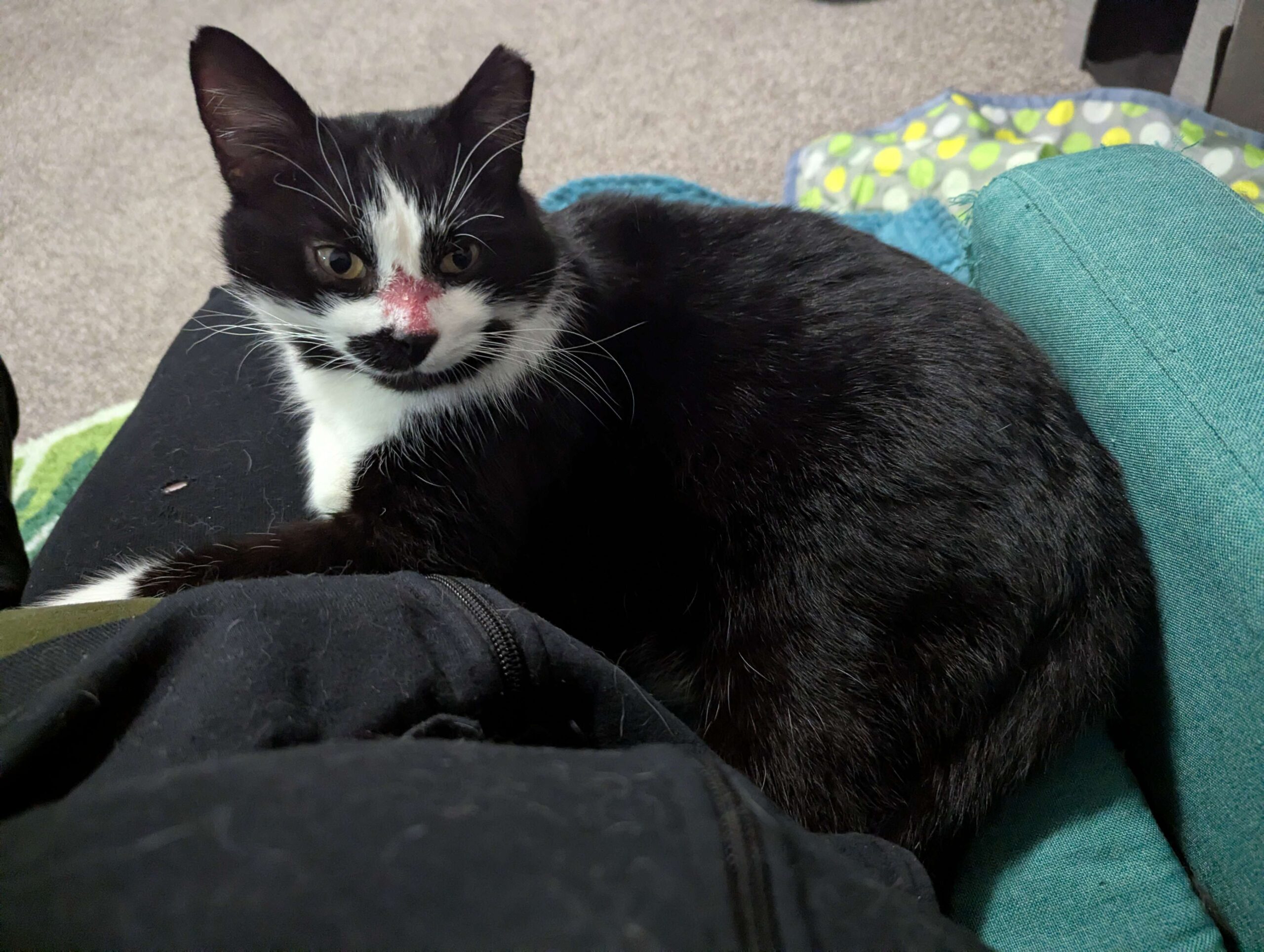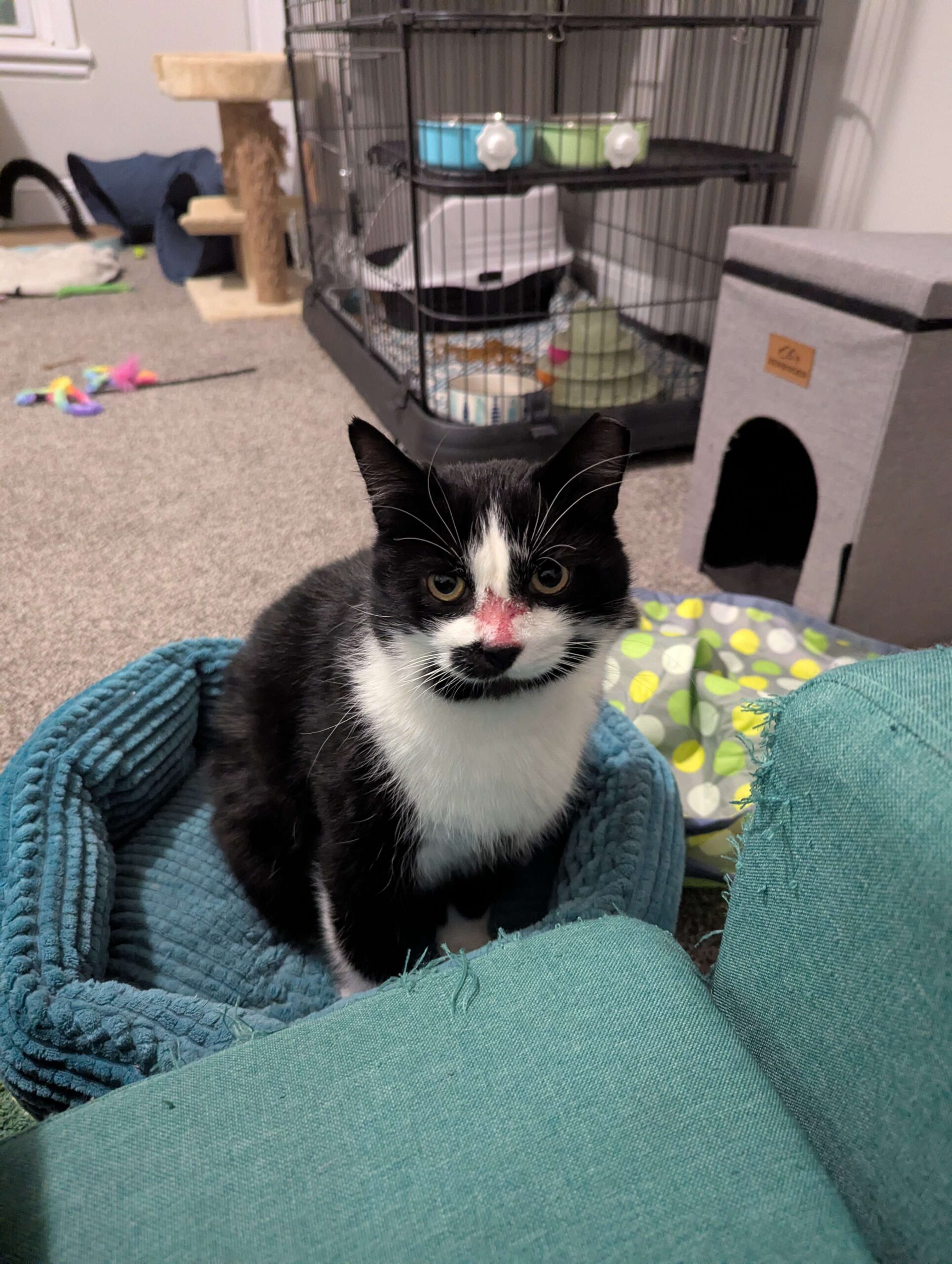 Don't be alarmed by his gruff appearance, Mr. T is the most loving cat you will ever meet! He came into foster via a TNR program and had a large wound on his nose. The majority of it has all healed up, and now the fur is just slowly starting to regrow. While he may be missing a little fur, he makes up for it with his larger-than-life personality. All he wants is love (and food), and if he could spend all day curled up on someone's lap getting endless pets, he certainly would. He comes when foster mom calls and jumps up into her lap or next to her and curls up, nuzzling into her hand for pets with the BIGGEST purrs. While he does occasionally still hiss when startled, he doesn't have a mean bone in his body and has absolutely no problem with being picked up and carried around. He has been around several different cats and kittens and does well around them as long as they are properly introduced.