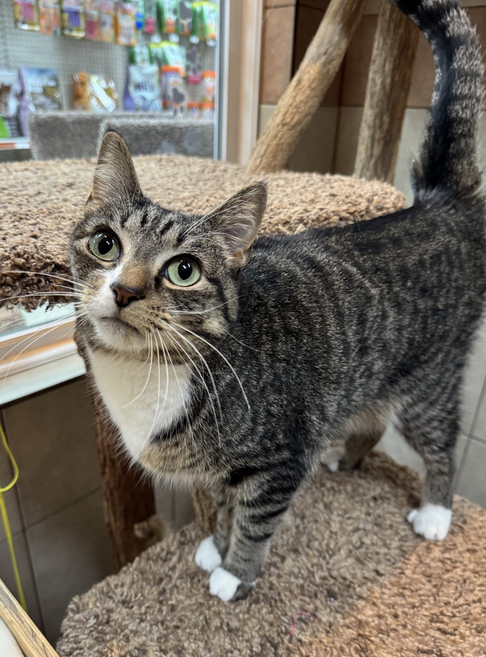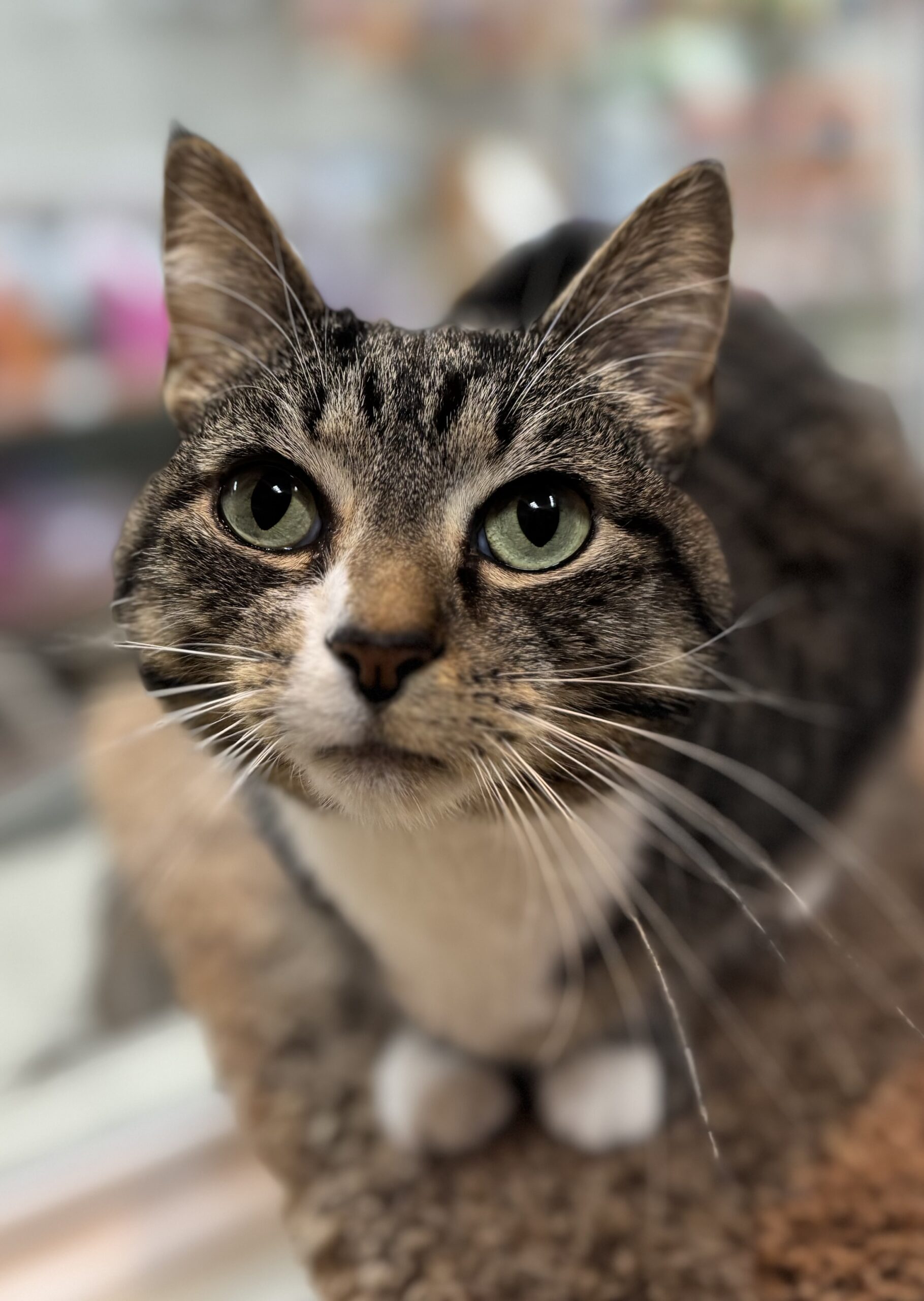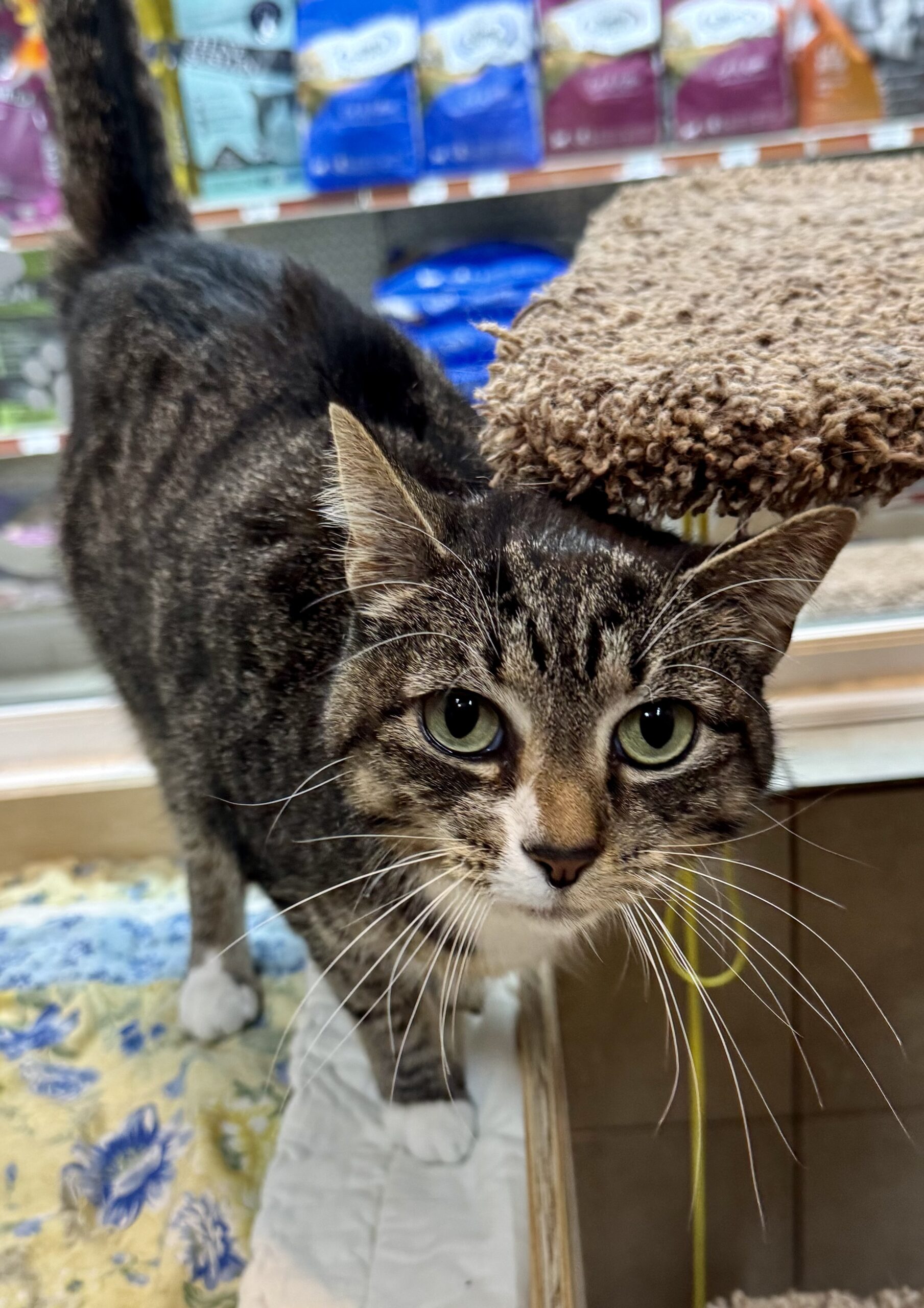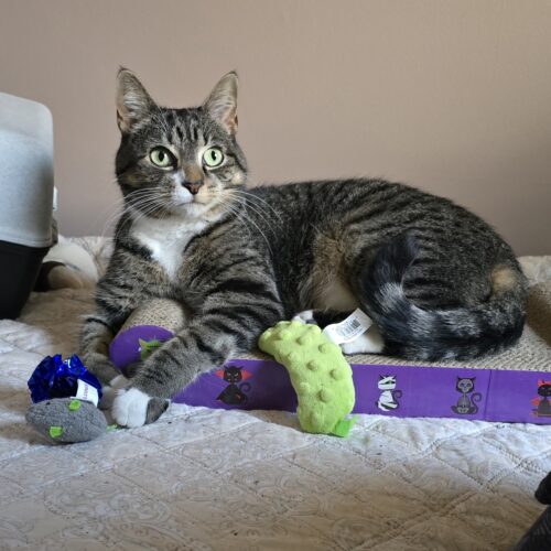 We suspect Nala will always be a rather timid cat, so she will need to have a calm, quiet home. She would do best with someone experienced with cats, who won't mind if she hides a lot until she's comfortable and won't force her to interact if she's not ready. She'll need a home with no dogs or small children; her previous home had dogs, and she was very scared of them. She also seems to be afraid of men, so she might do best in a home with just women. Now that she's living in a calmer household, she is turning into a sweet, chatty little girl, who is still sometimes distrustful of people, but desperately wants love and attention.