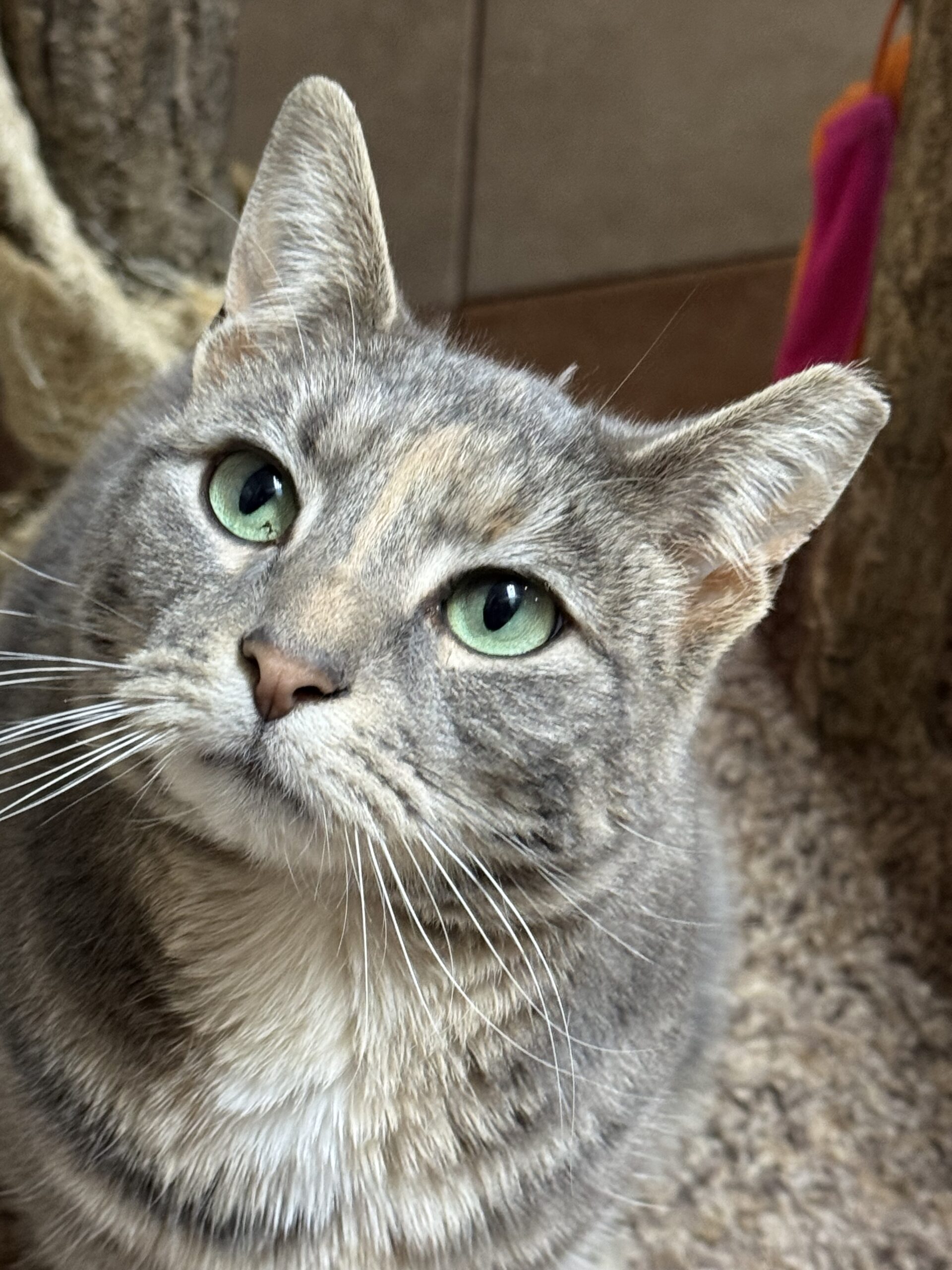 Hi! I’m Penelope. I love exploring every nook of my cozy shelter home, sniffing out adventures and cuddling up with anyone who needs a hug. I’m as brave as I am gentle, always ready to comfort my friends here with purrs and affection. My curiosity keeps me lively, and my loyalty makes me a devoted companion. If you need a friend to explore the corners of your world and fill it with warmth, I’m your girl. Adopt me, and let’s start our journey together!