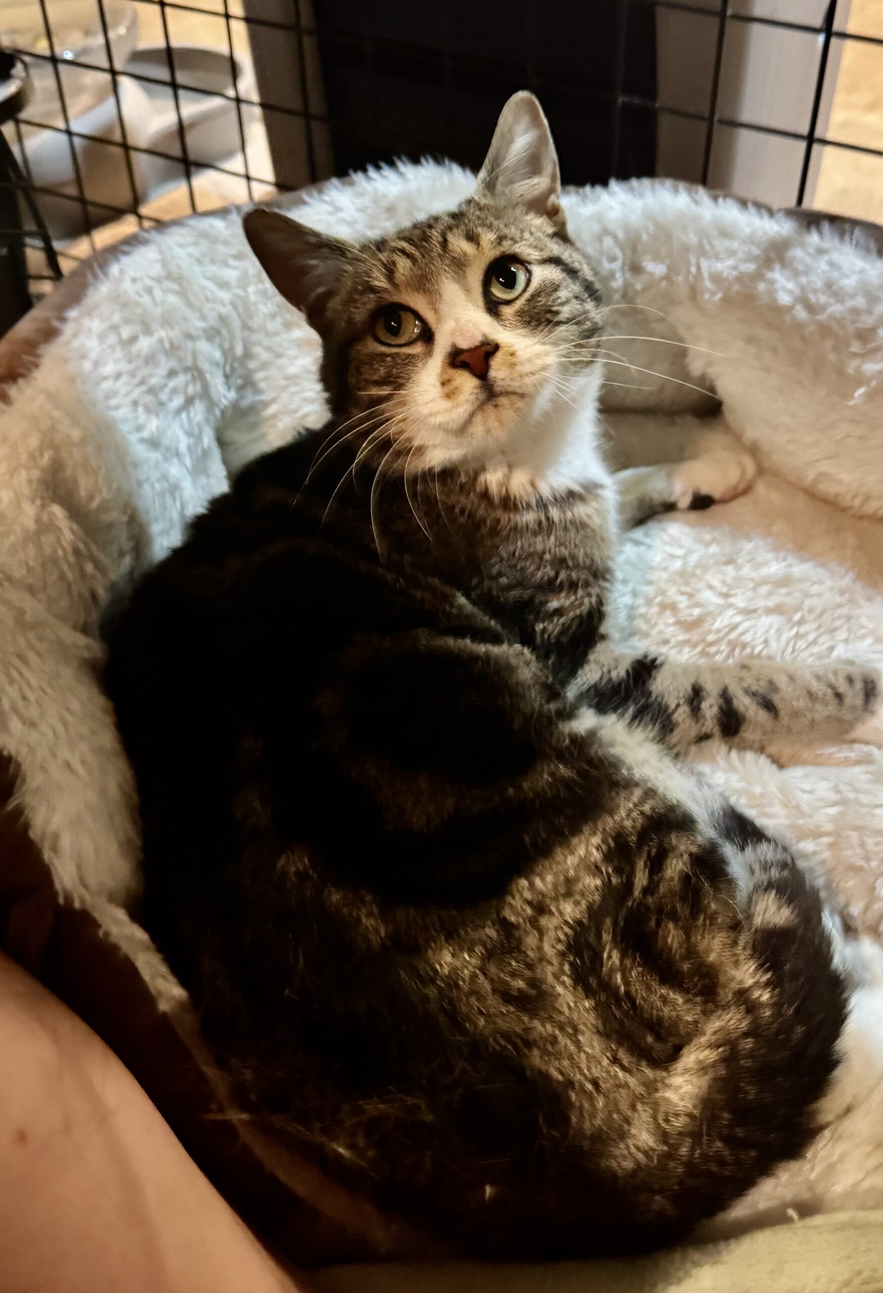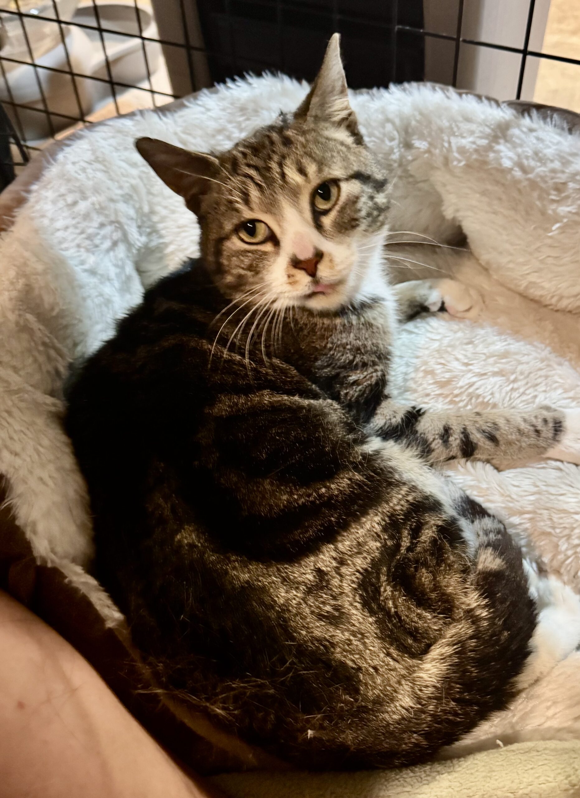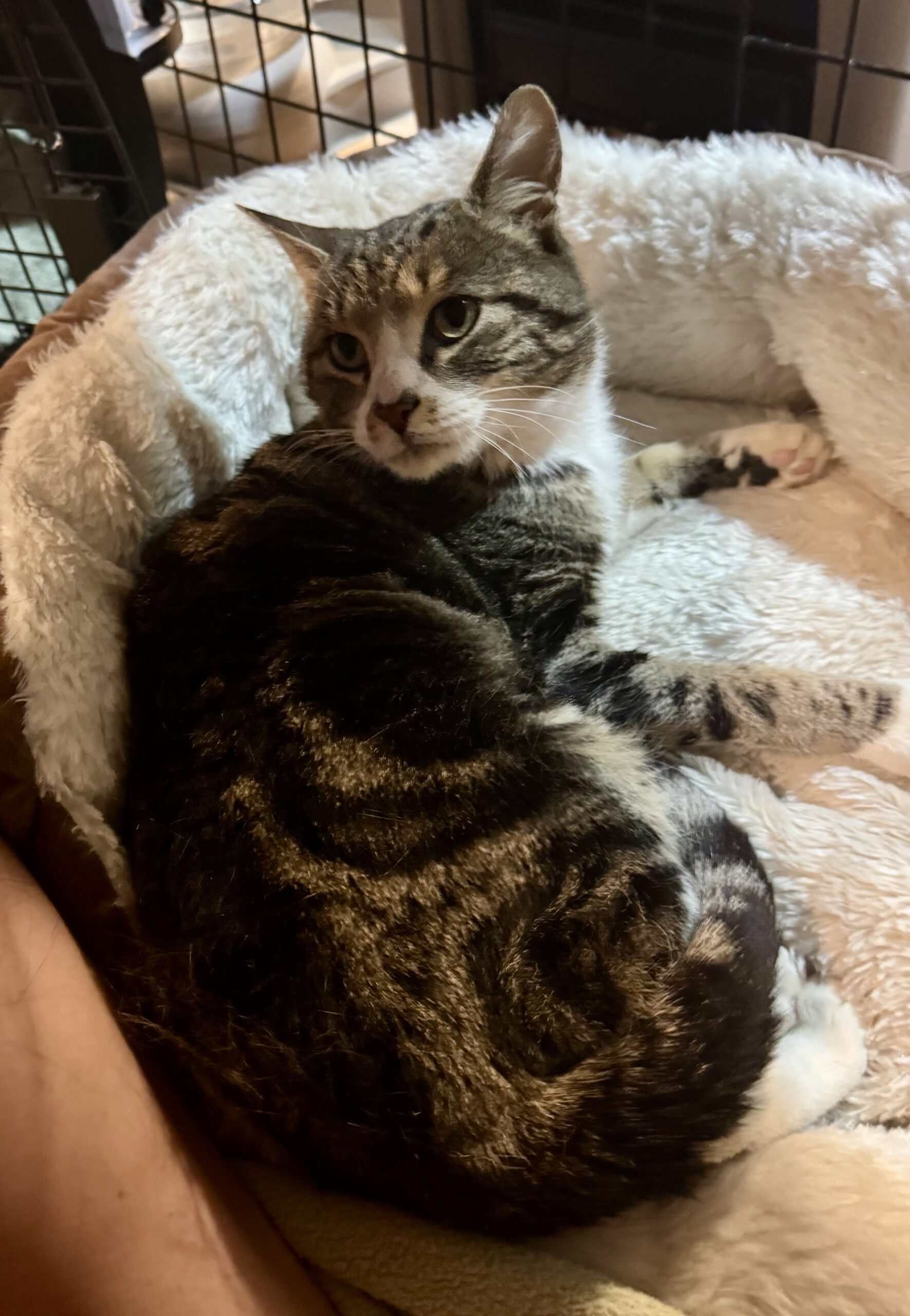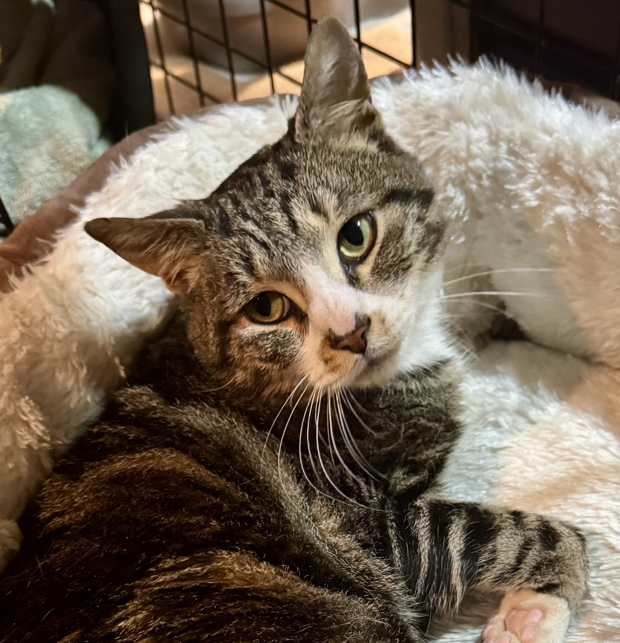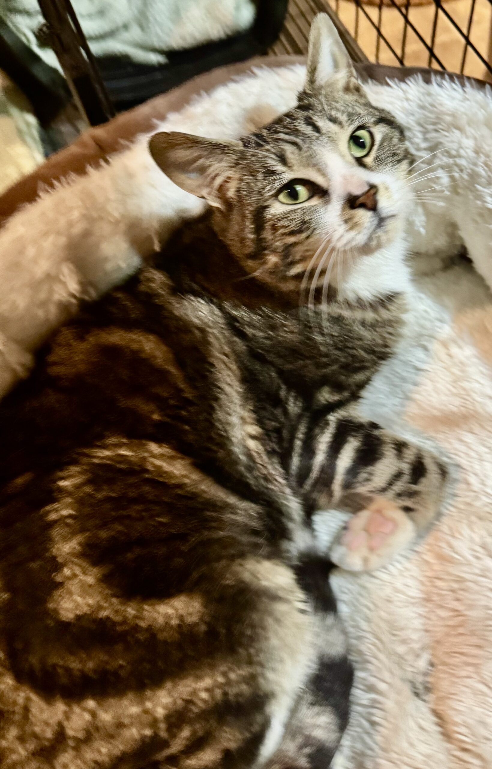 Hi, I'm Mike. I'm a sweet and shy cat with a mellow vibe. I love gentle pets and quiet moments. I was very lucky that I was found and brought to Heavenly Paws because I had a huge umbilical hernia with a lot of dead tissue. I had a big surgery to repair it. I would not have made it on the streets like that, but I'm feeling much better now! I'm looking for a calm home where I can relax and share my friendly spirit. Adopting me means gaining a loyal and loving companion who's ready to bring peace and joy to your life.