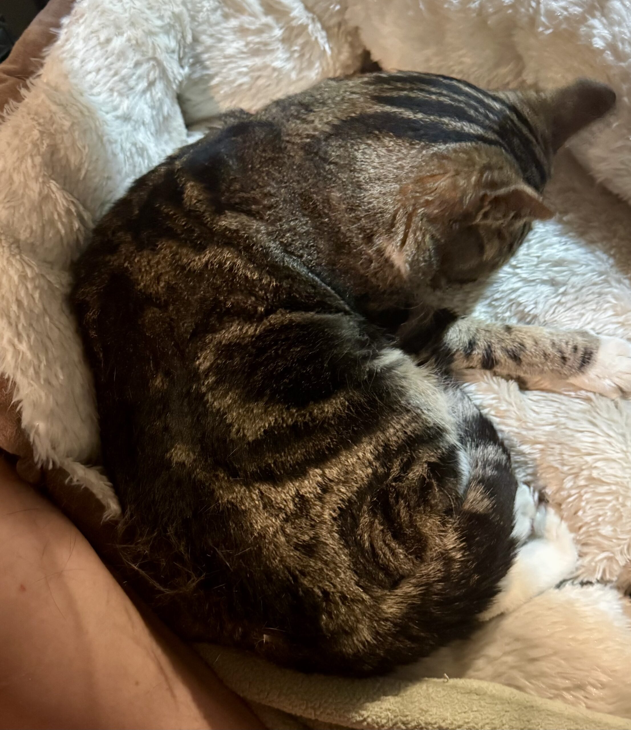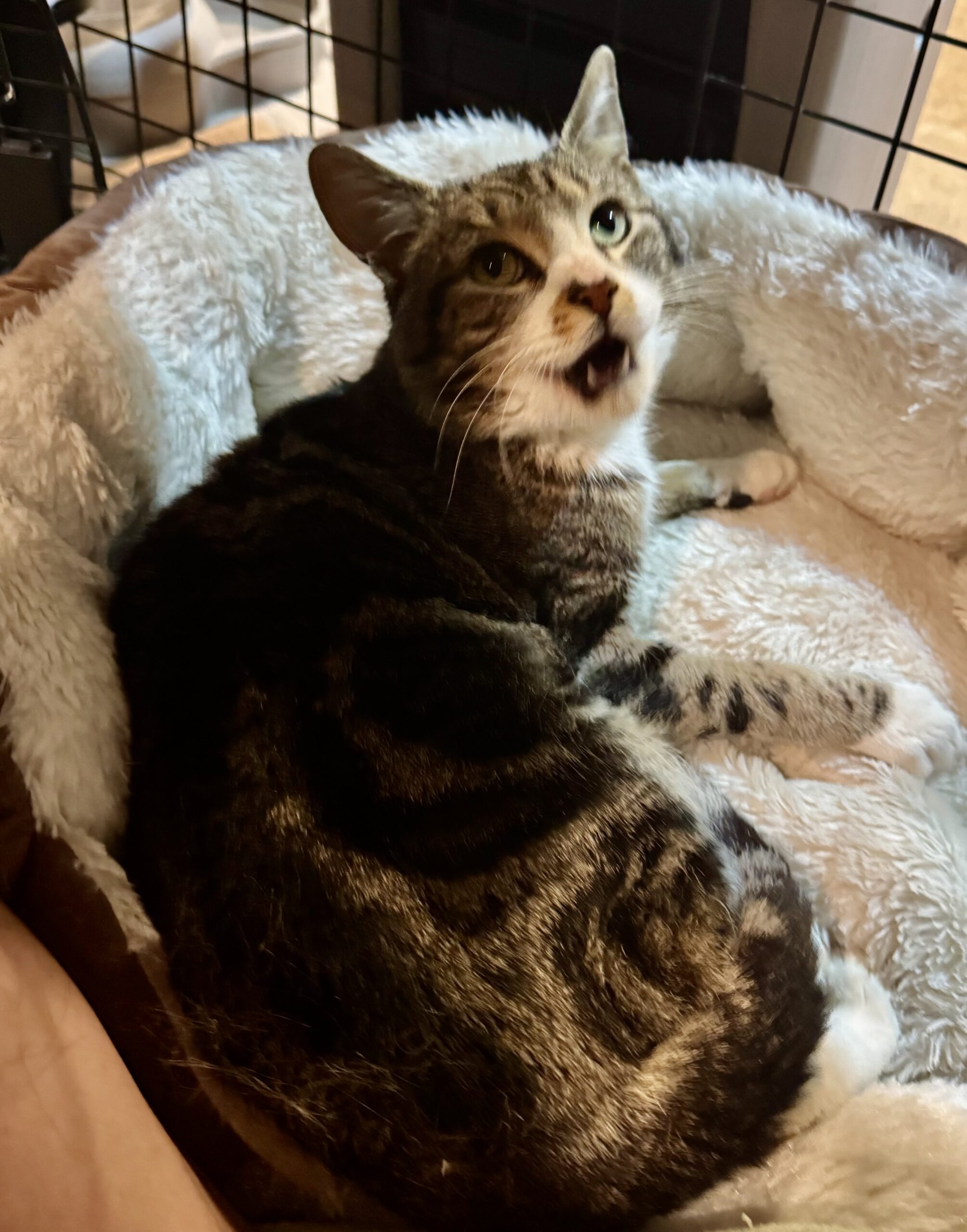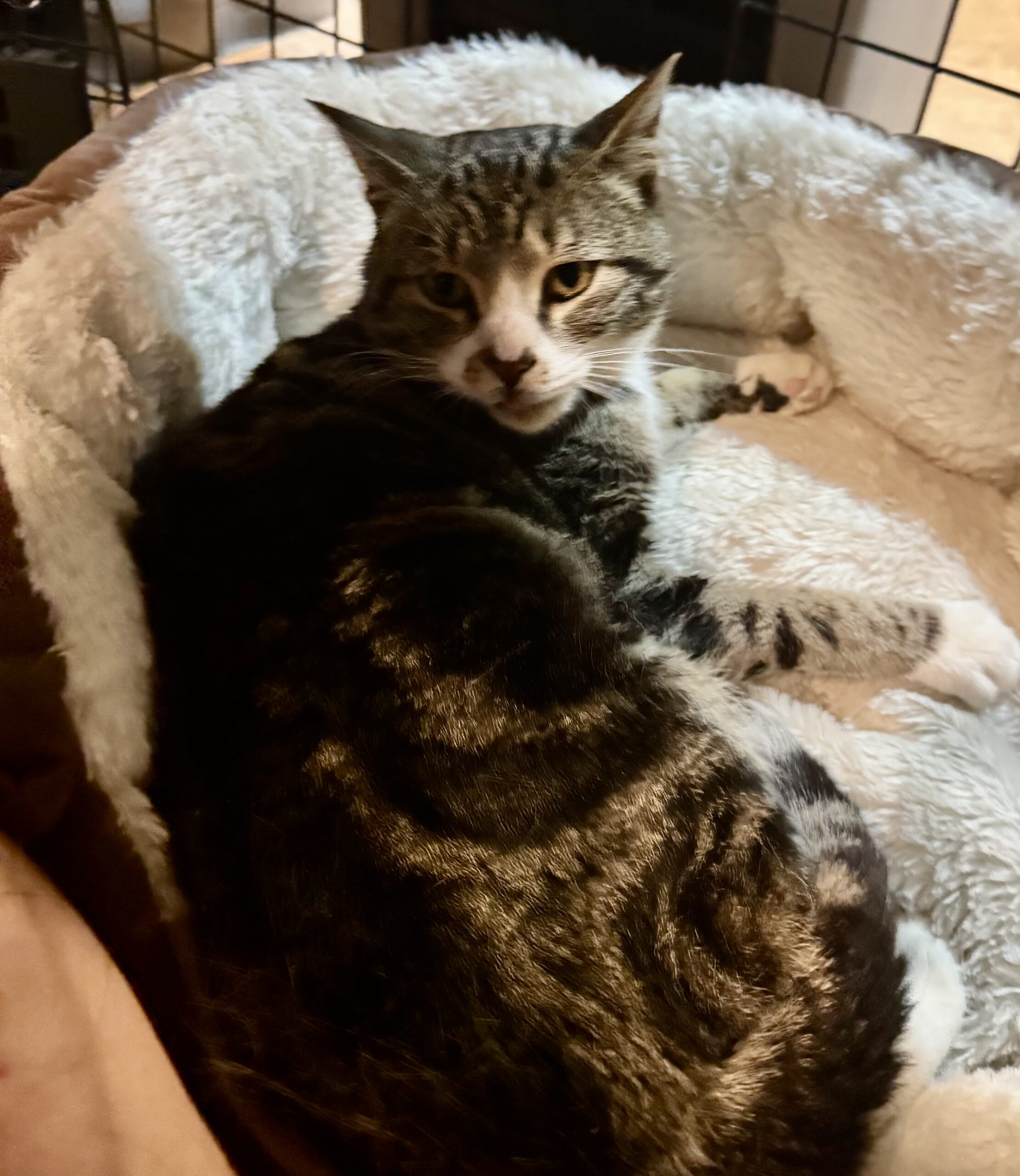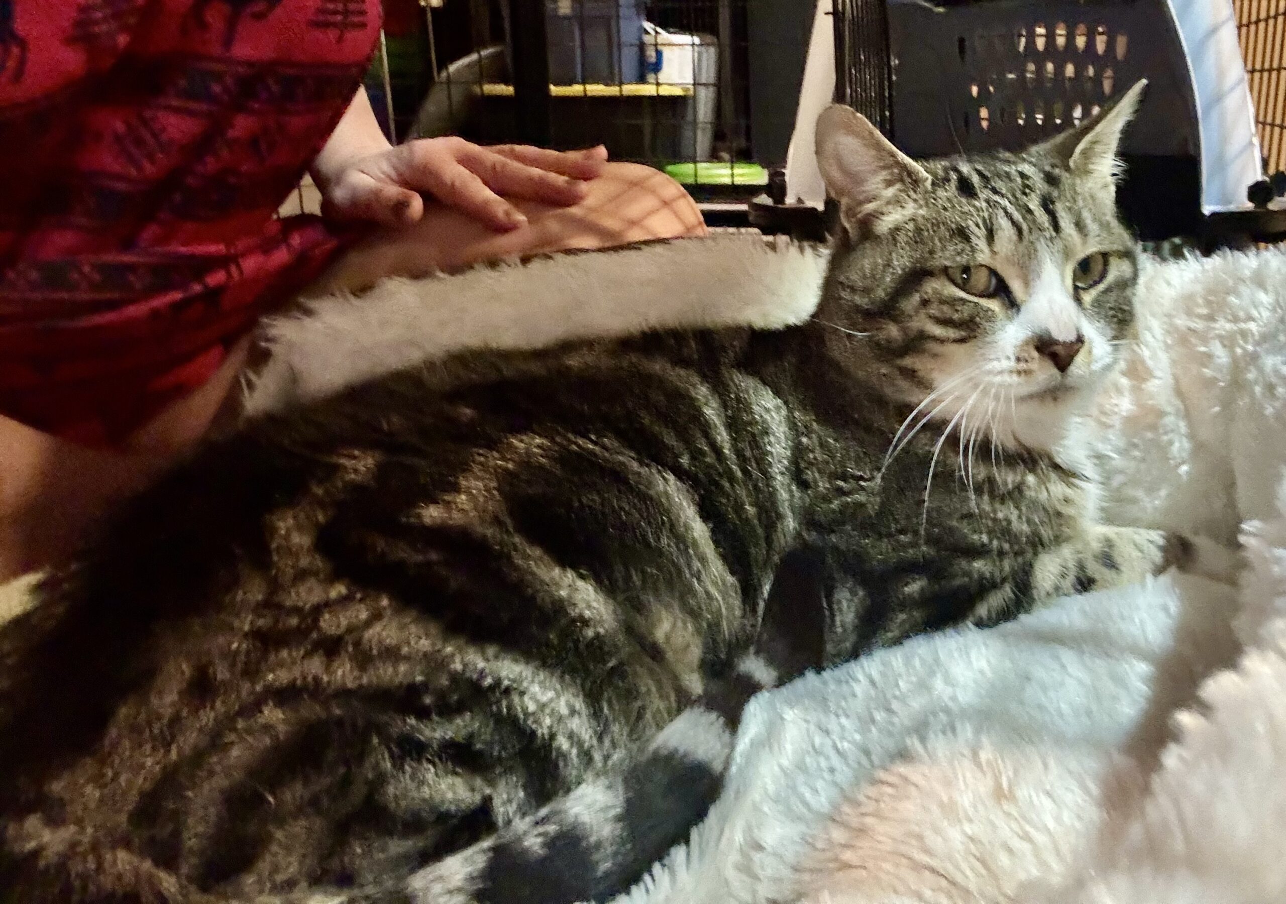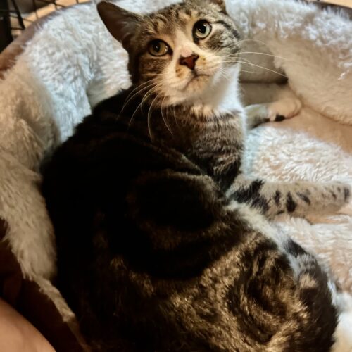 Hi, I'm Mike. I'm a sweet and shy cat with a mellow vibe. I love gentle pets and quiet moments. I was very lucky that I was found and brought to Heavenly Paws because I had a huge umbilical hernia with a lot of dead tissue. I had a big surgery to repair it. I would not have made it on the streets like that, but I'm feeling much better now! I'm looking for a calm home where I can relax and share my friendly spirit. Adopting me means gaining a loyal and loving companion who's ready to bring peace and joy to your life.