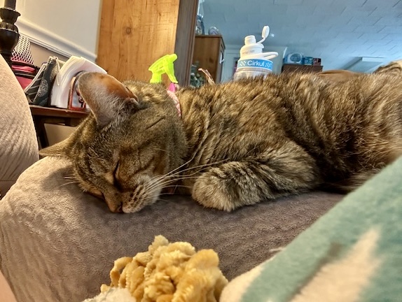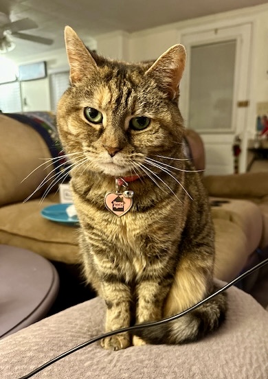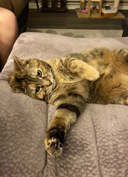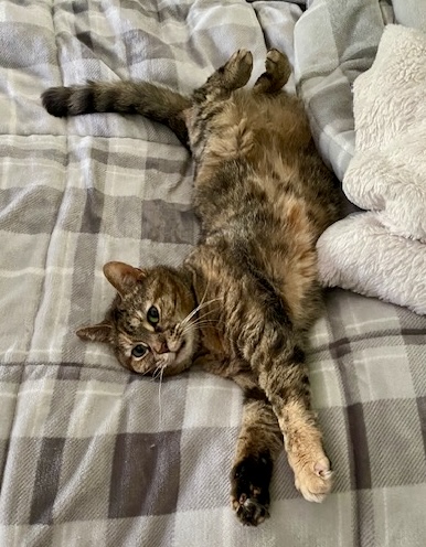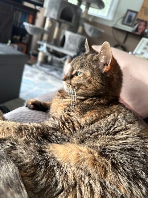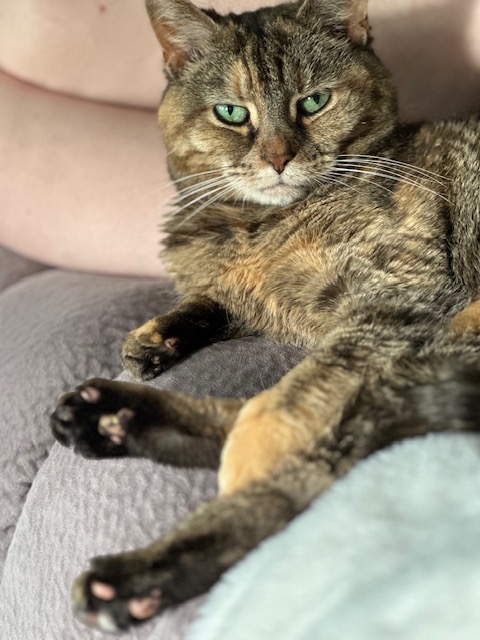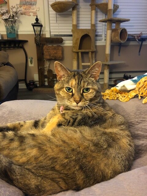 Nola was adopted 8 years ago and was thought to be about 2 years old. Based on health issues, her vet determined she is likely much older. All of her teeth had to be removed soon after adoption but she can eat almost anything and is much happier toothless! She also has chronic IBS and requires prescription food. She is feisty but very sweet with her people. She lives with 3 other cats (also up for rehoming) and an English bulldog. She tolerates all of them. Due to recent major health issues with myself and my daughter, I can not afford to put her on the special food she needs or the medical attention she requires. It’s a heart breaking situation.