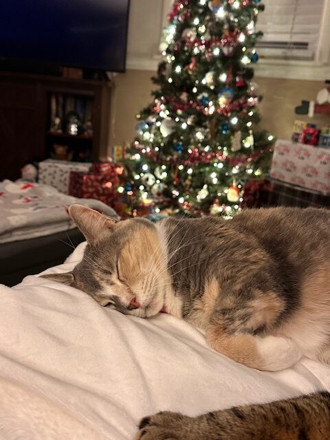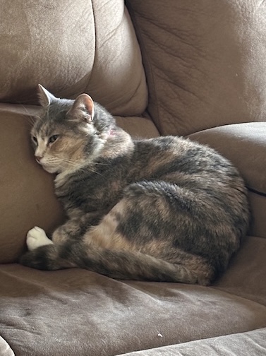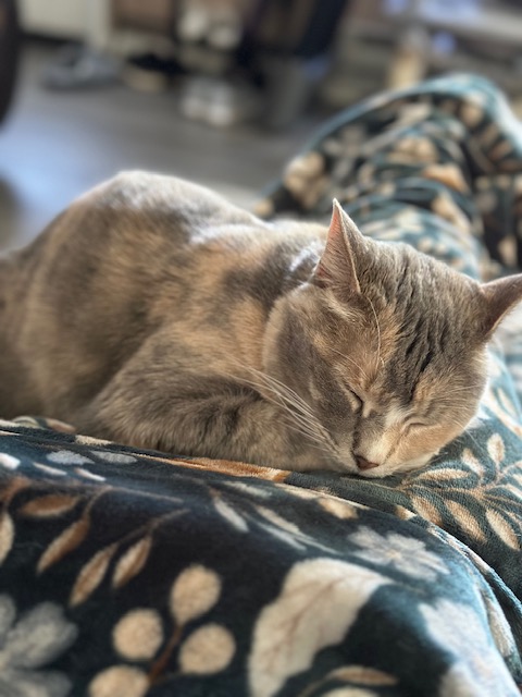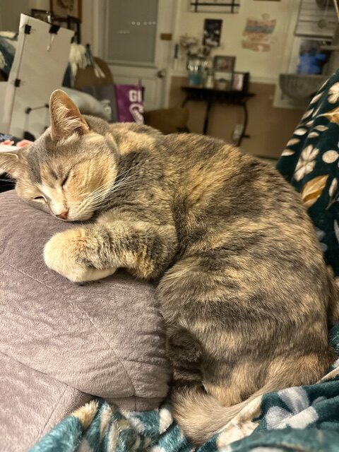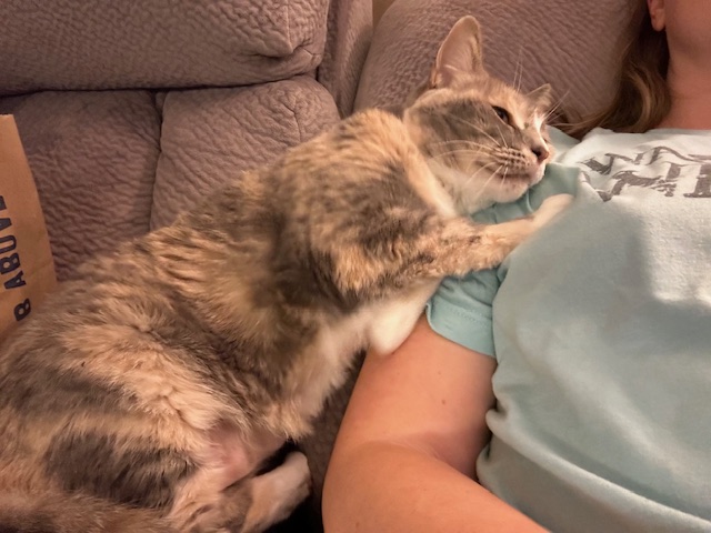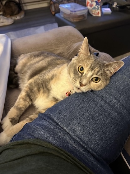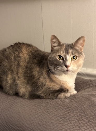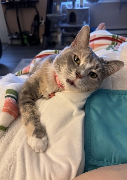 Nyx loves people and attention. She has been know. Only fetch with her toys. She is sweet and very cuddly! Always wants to be with me and is very interested in anyone that comes around. Due to major health issues with myself and my daughter, I am having to rehome all 4 of my cats. Nyx is on oral cyclosporine once every other day due to allergies and over grooming. Otherwise she is very healthy and happy. She would love to stay with her sister, Nola! But it isn’t required. She is a 6 year old indoor cat and is not declawed. She’s a very chill girl and also lives with a dog whom she tolerates.
