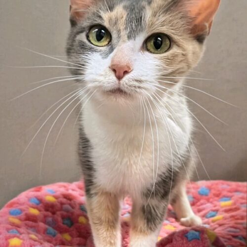 Opal is a sweet girl looking for her forever family!! She loves attention, pets and enjoys her food & treats!! Opal will need to be an only pet as she does not do well with dogs or other cats.