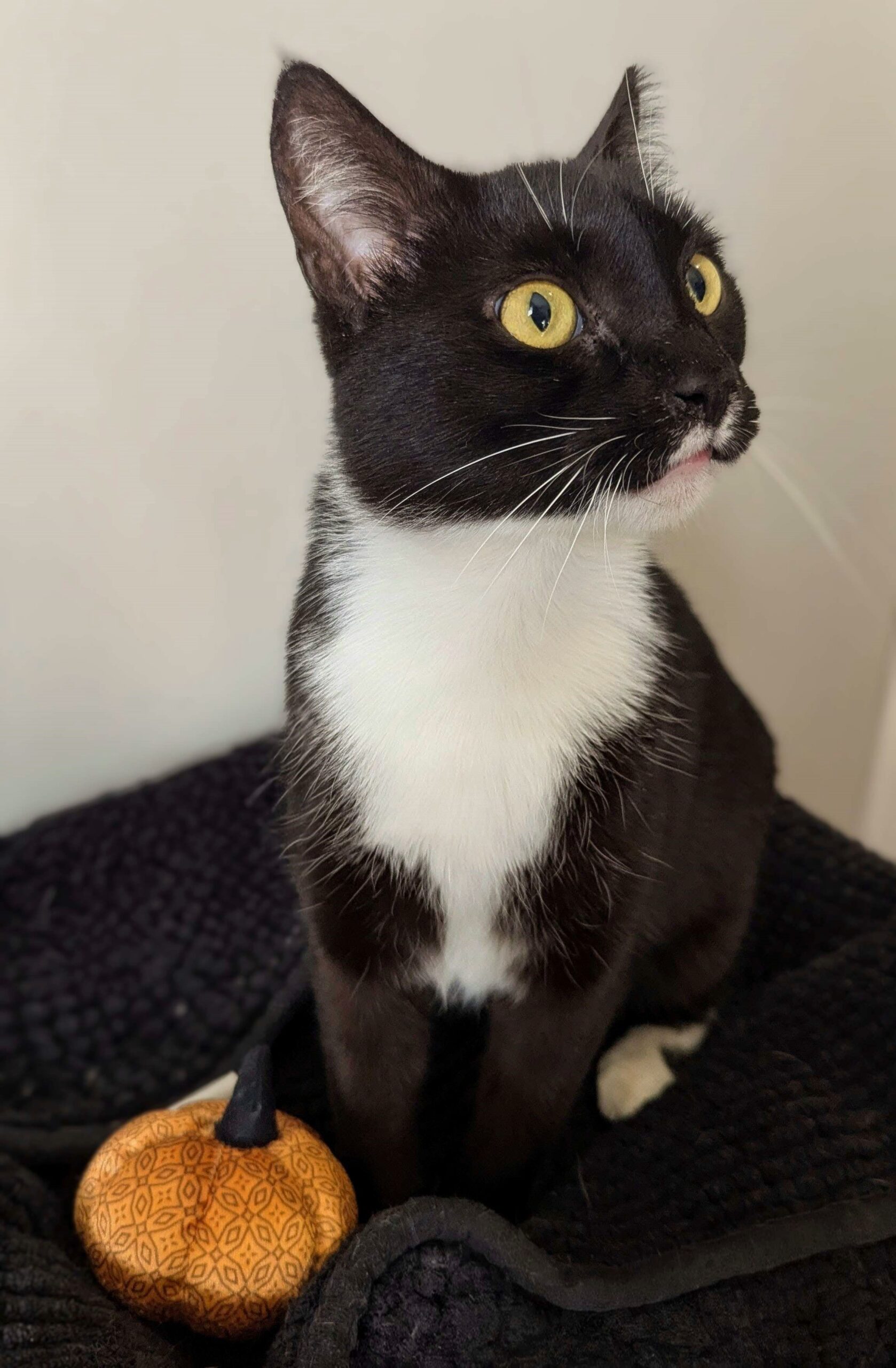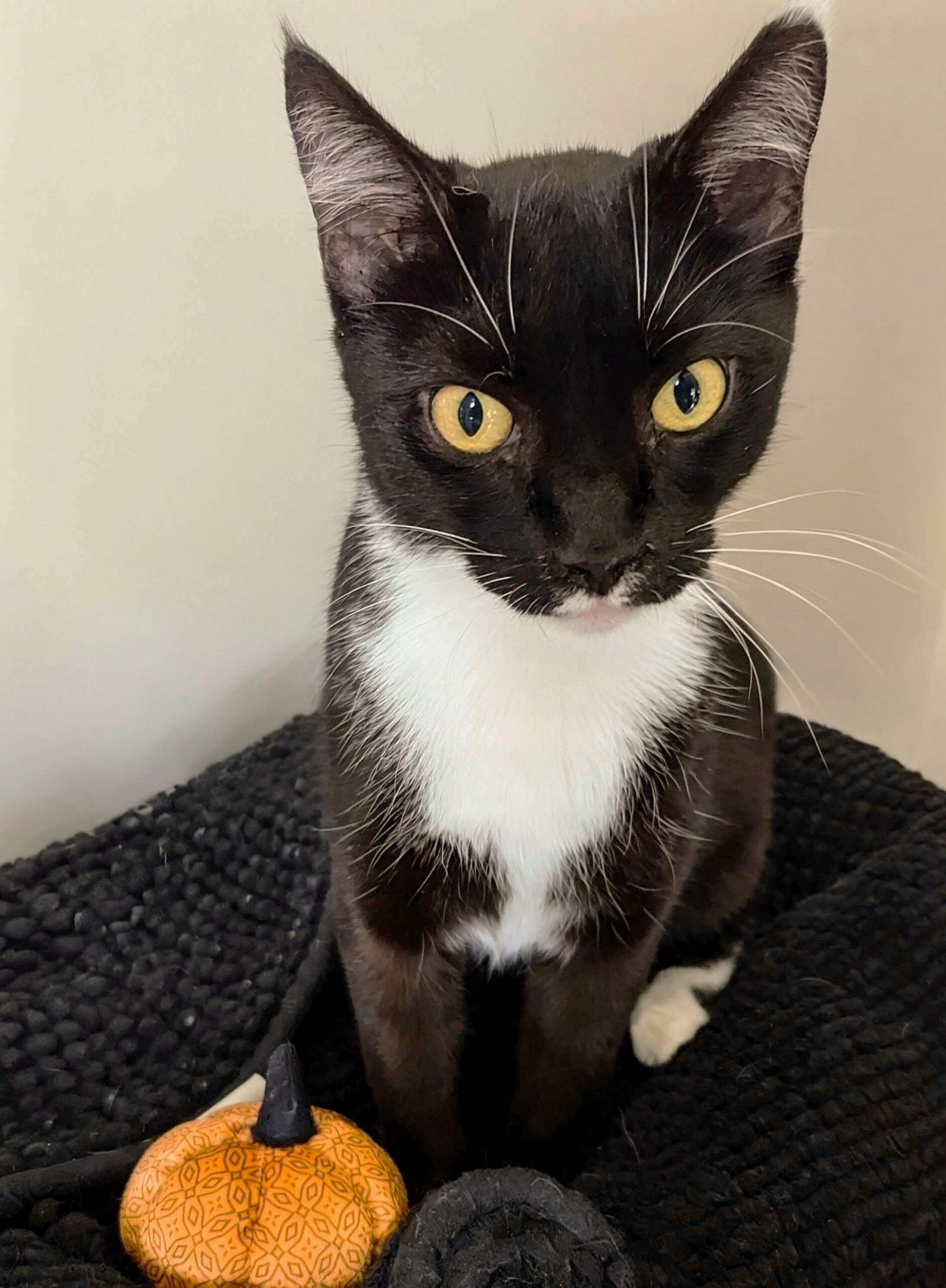 Orca came from a home with many cats and dogs, and very much did not enjoy that environment. She does not mind being around another cat with proper introduction, but a quiet home would be the most suitable for her. She is incredibly loving and wants all the attention she can get. True to her name, she likes to jump up in a little arc to headbutt/rub against foster mom's legs. The moment she first got to sit in her own bed, she started purring and making biscuits. She is a truly wonderful cat and will make an amazing companion.