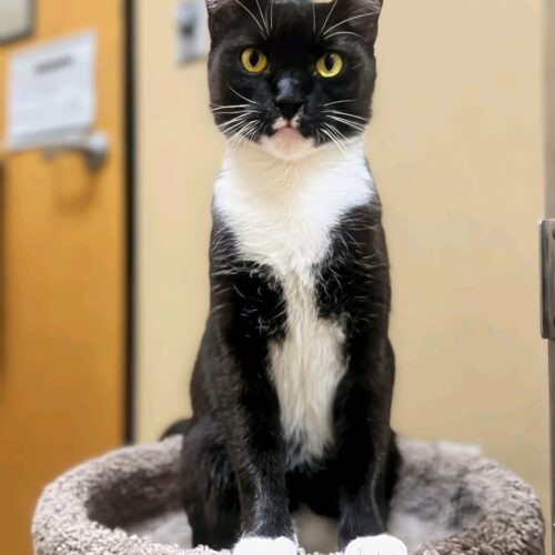Orca is an amazing cat; she is playful, adventurous, loving, and always finding new ways to make her foster mom laugh with her silly antics. She is incredibly cuddly and wants all the attention she can get - from headbutts, to full body pets, to being held and loved on. True to her name, she likes to jump up in a little arc to headbutt/rub against her foster mom's legs. The moment she first got to sit in her own bed, she started purring and making biscuits. Her only "flaw" is that she is "addicted" to catnip - and will absolutely drench a catnip toy in drool while playing with it. She is a truly wonderful cat and will make an amazing companion. She does get along with other kitties with proper introduction and has been introduced to a range of adults and kittens.