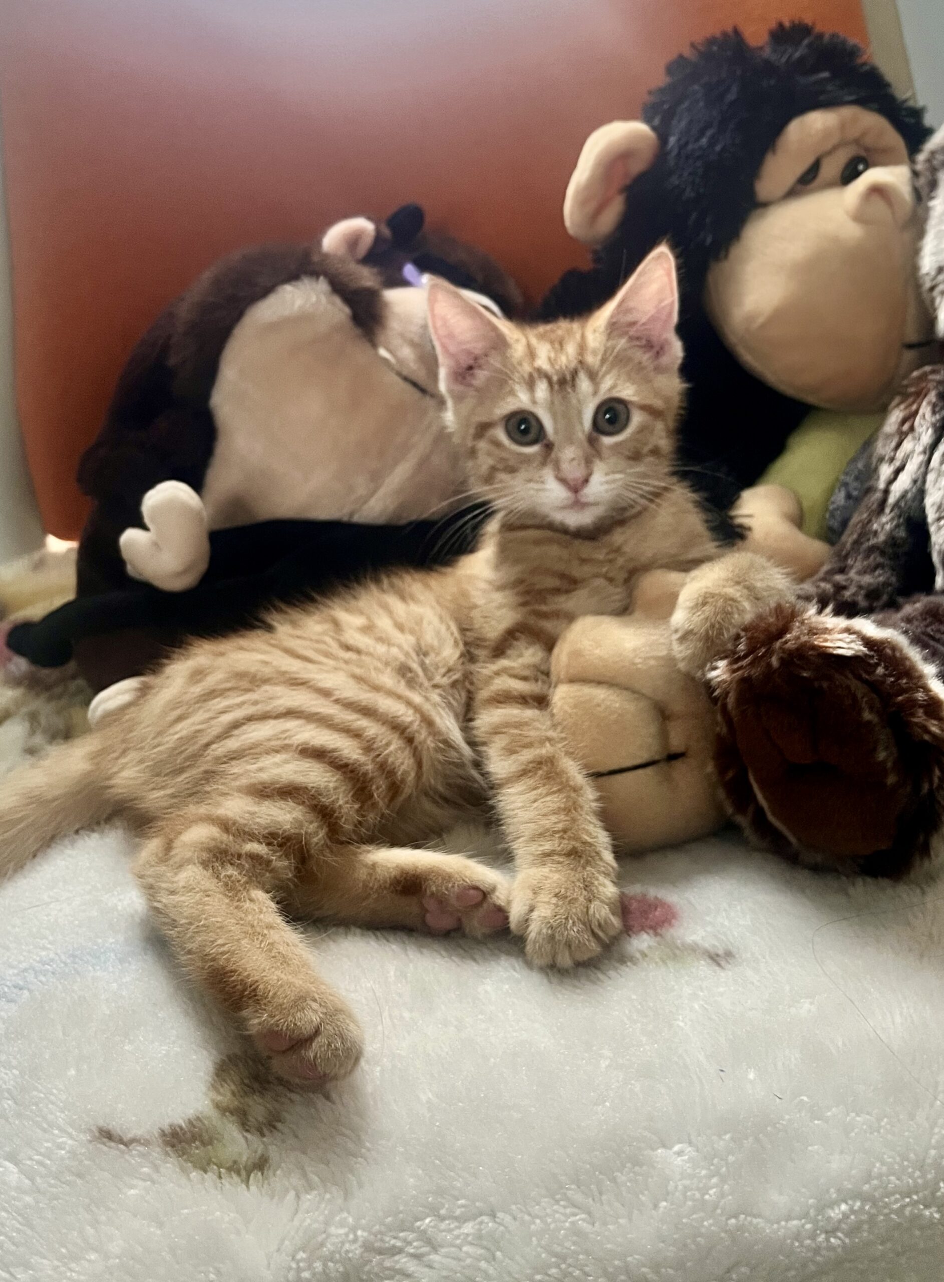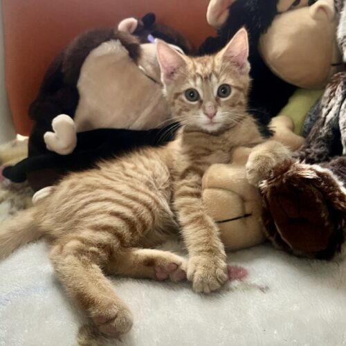 Oscar is a handsome, 14 week old orange tabby. He has received deworming and few other shots, but is due for his rabies and distemper shot. Due to age, he is not yet neutered.