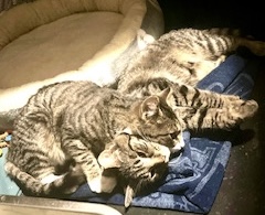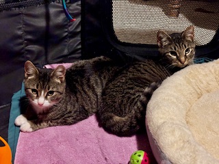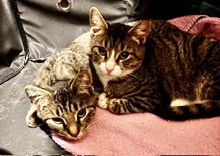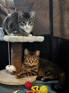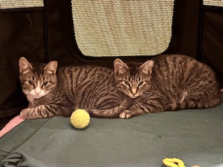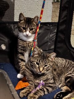 We trapped these sweet little brothers as a TNR project, but after we spent a few minutes with them, we knew they were too sweet to release back into the neighborhood, PLUS they are extremely bonded!! It’s the sweetest thing I’ve ever seen! They sleep together, clean each other, play together, wrap their tails as they pass…. It’s absolutely adorable. So these two babies cannot be separated, as it would most likely lead to behavior issues.