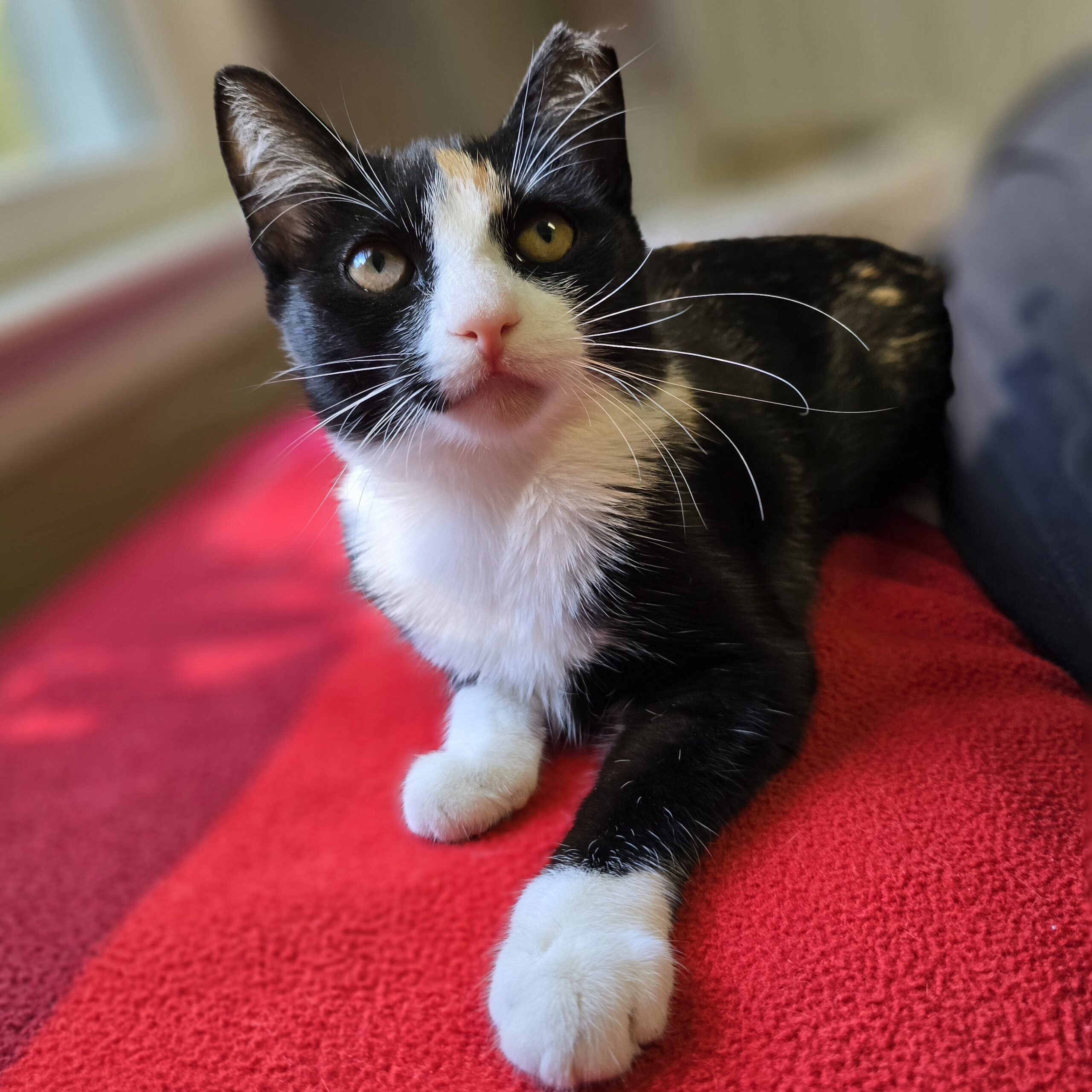 PopTart is a gorgeous calico girl with a personality to match! Recently found abandoned at a cat colony, she came right up to her finder for attention. Since being in foster care, she has blossomed into a sweet, affectionate little girl! She still has moments of being skittish, due to not being quite used to the indoors yet, but she runs right up to you when you walk in the room. She is a very curious little girl who is enjoying exploring her new environment. PopTart is fully litter boxed trained, up-to-date on all vaccines, and spayed.