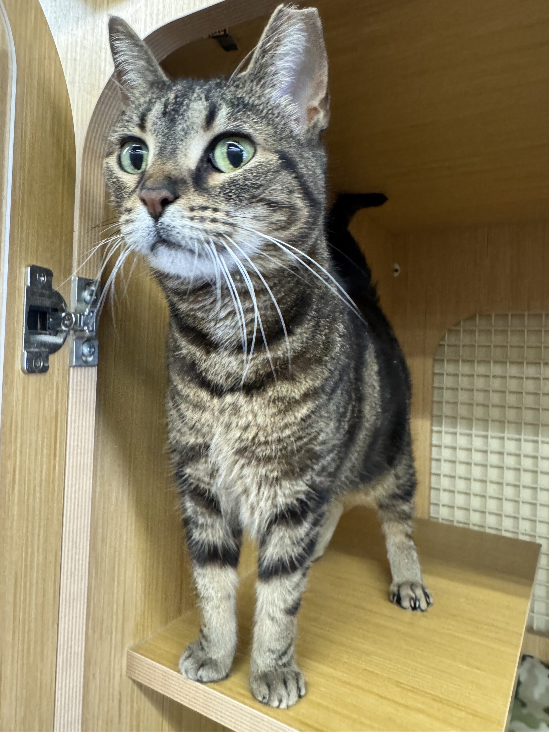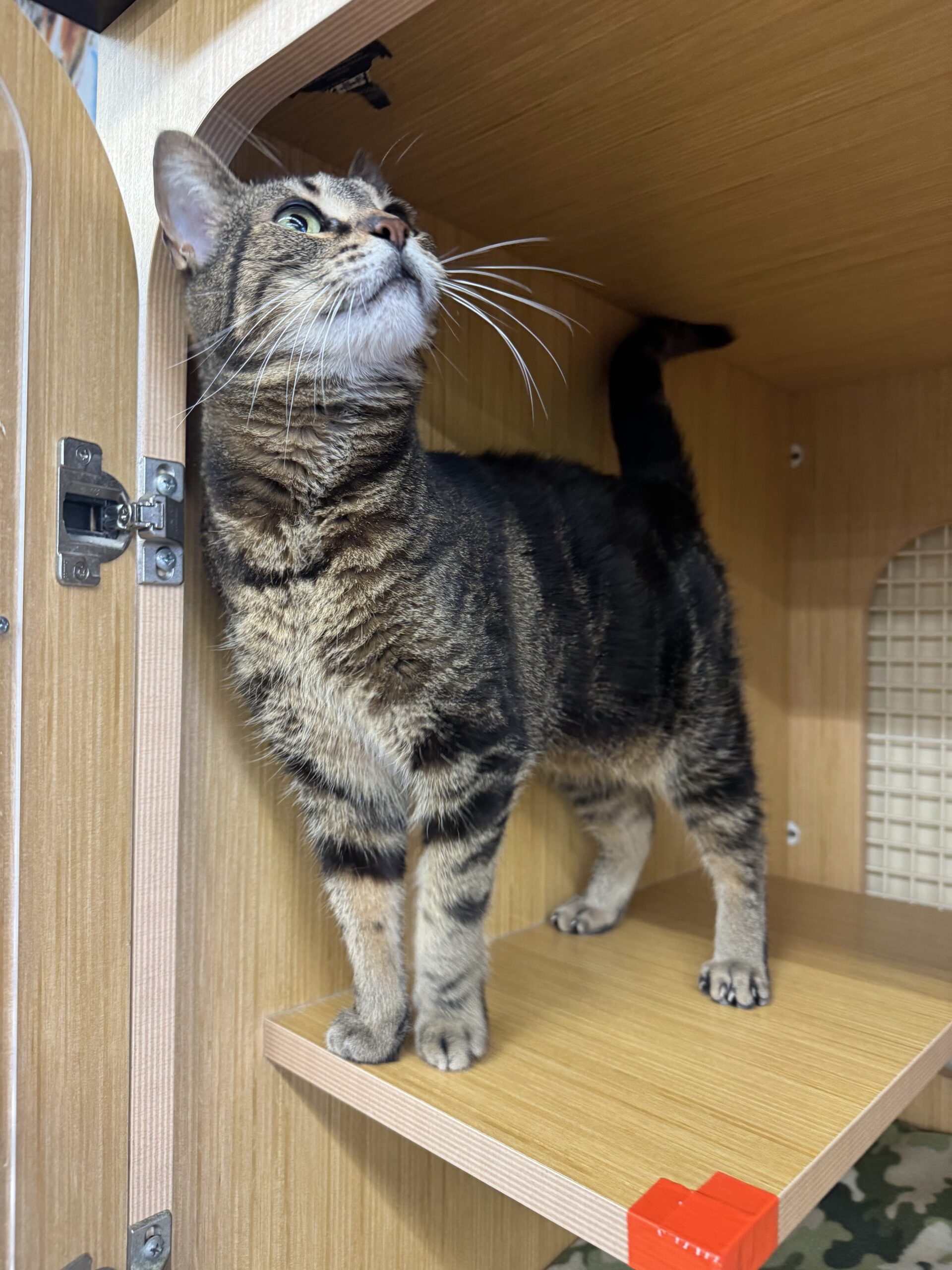 Ria adores people and isn’t shy about asking for attention. Expect plenty of head butts and a tiny, kitten-like meow that’ll melt your heart. Her favorite activities include cozy snuggles, birdwatching from a sunny window, and being the ultimate sweetheart.
