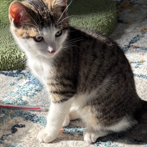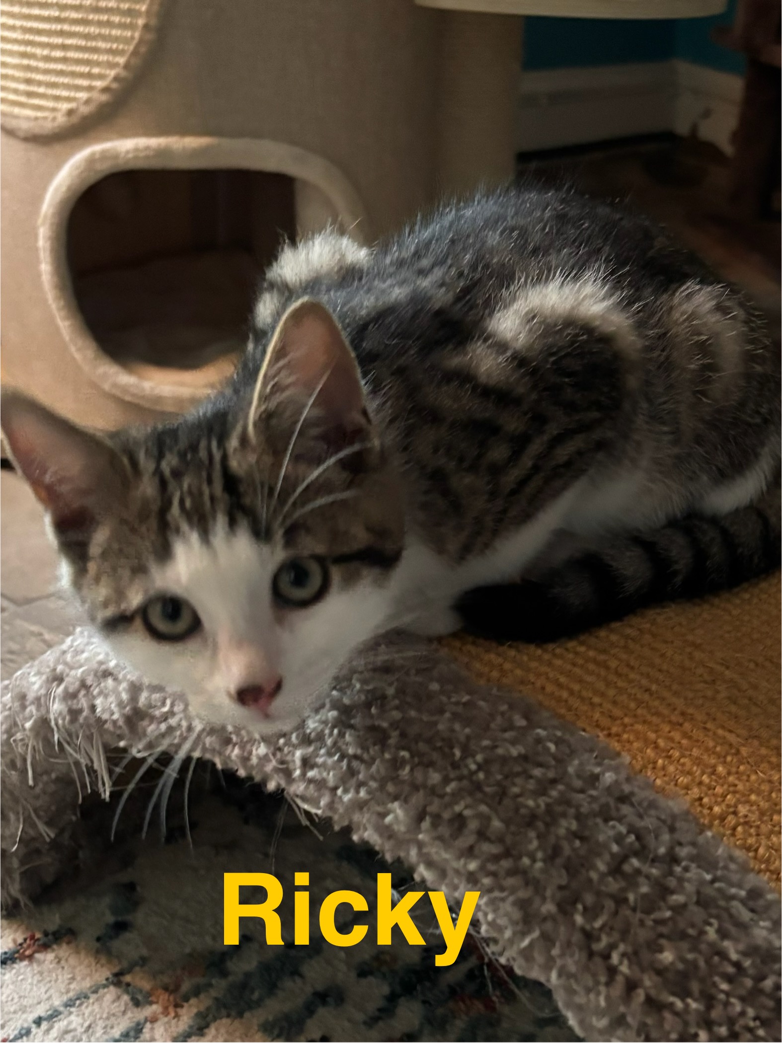 Lucy and Ricky are bonded siblings. They are spunky, lively, full of energy enjoying each other’s company romping about the Foster room. It is very enjoyable to watch their antics and playtime. They do get along with other kittens. They are easy to handle can be picked up and when playtime is over they enjoy a nice nap on your lap. Besides being cute tabbies, we are also poly dactyl‘s with extra toes on each front paw. They are current on vaccines, microchipped and they are neutered and spayed respectively.