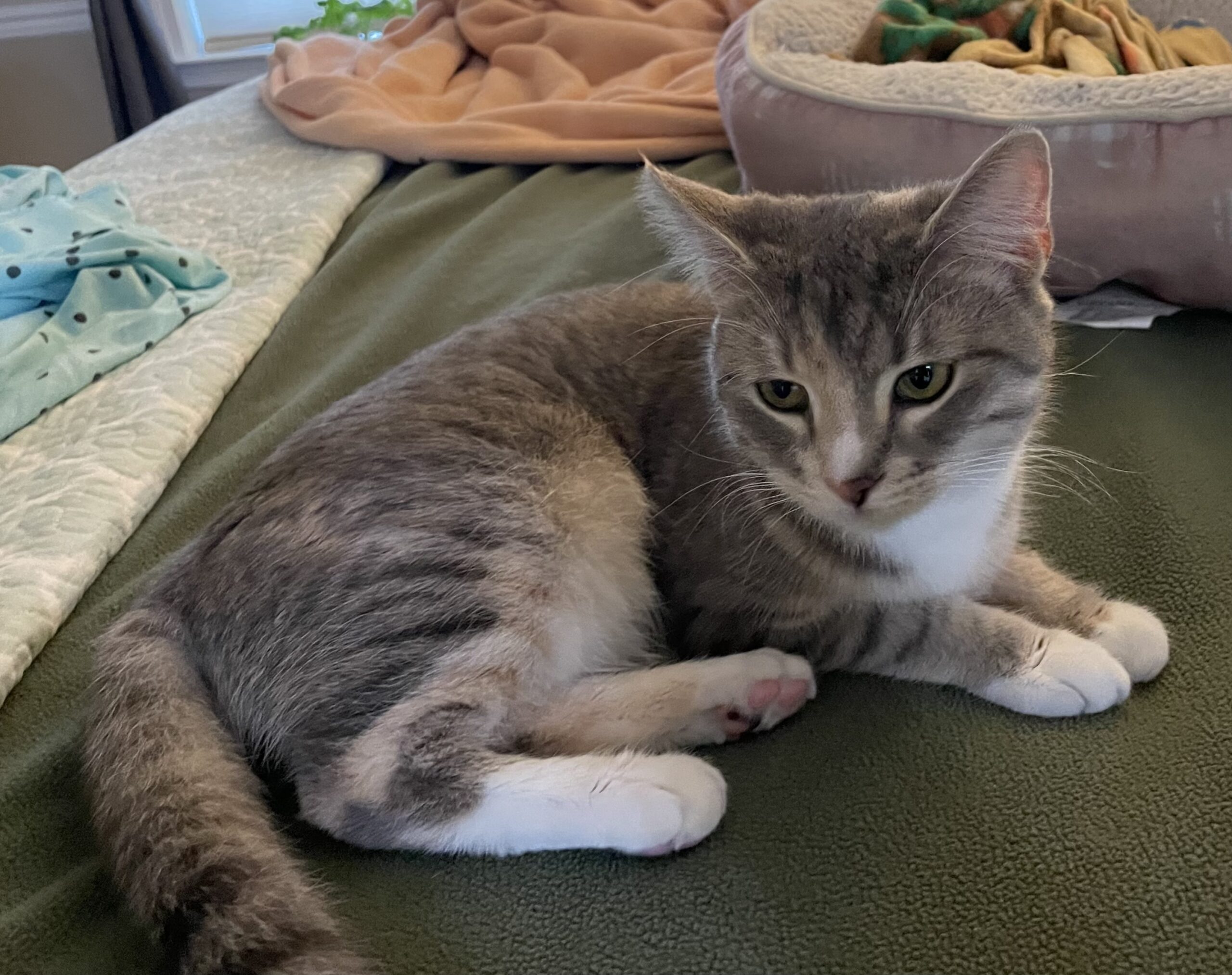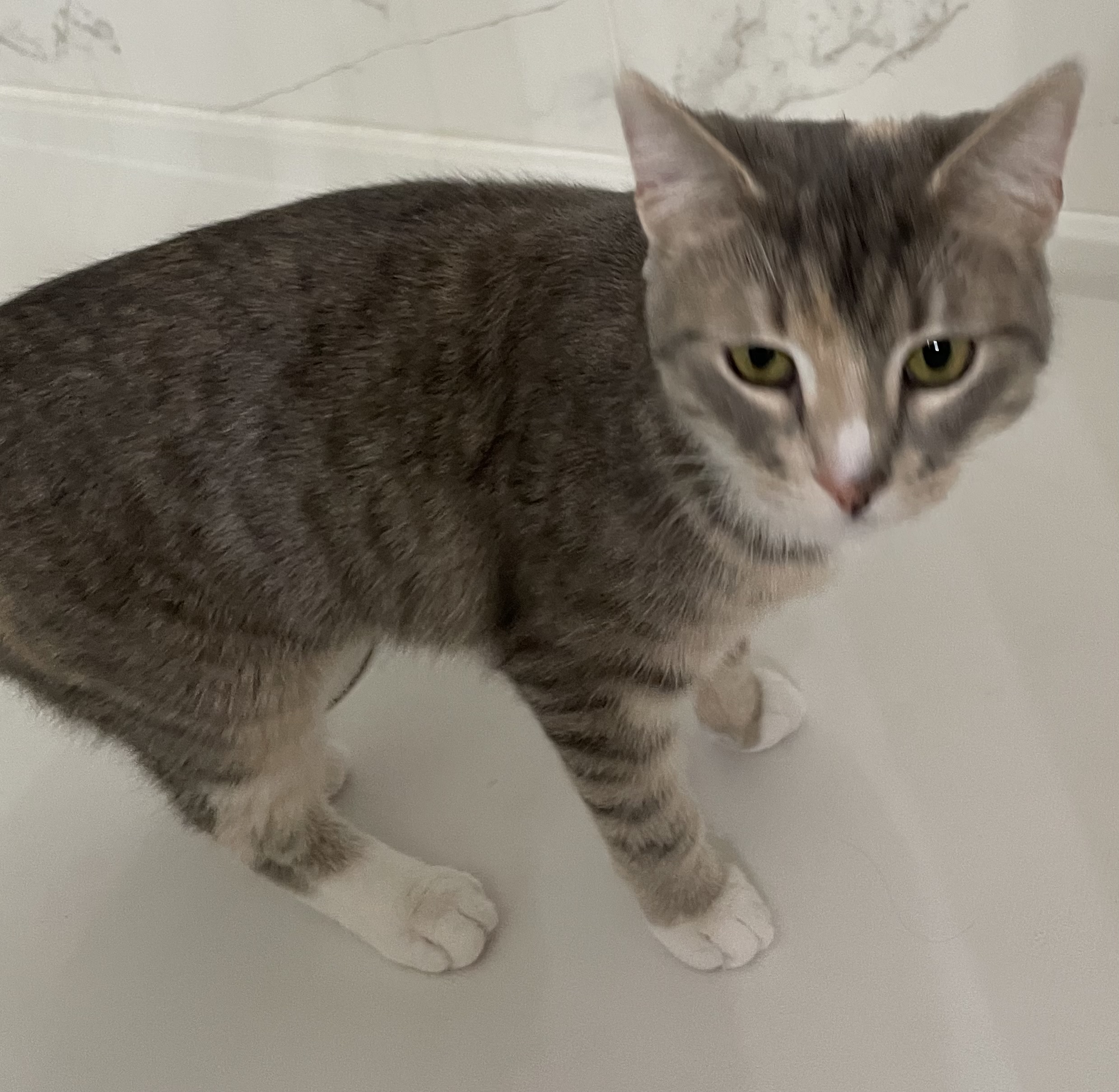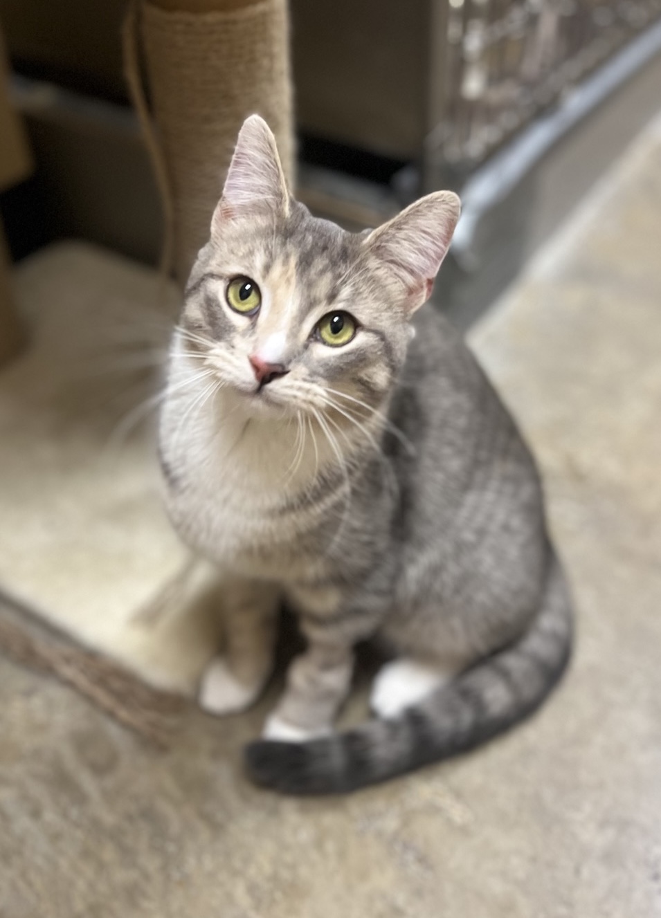 Hello, my name is Smokey! I am an outgoing, playful, sweet, friendly girl. I would love to find a family to play and cuddle with. Love to play with my toys and run around, but also enjoy those cuddle sessions. When I trust you I will politely ask for belly rubs!