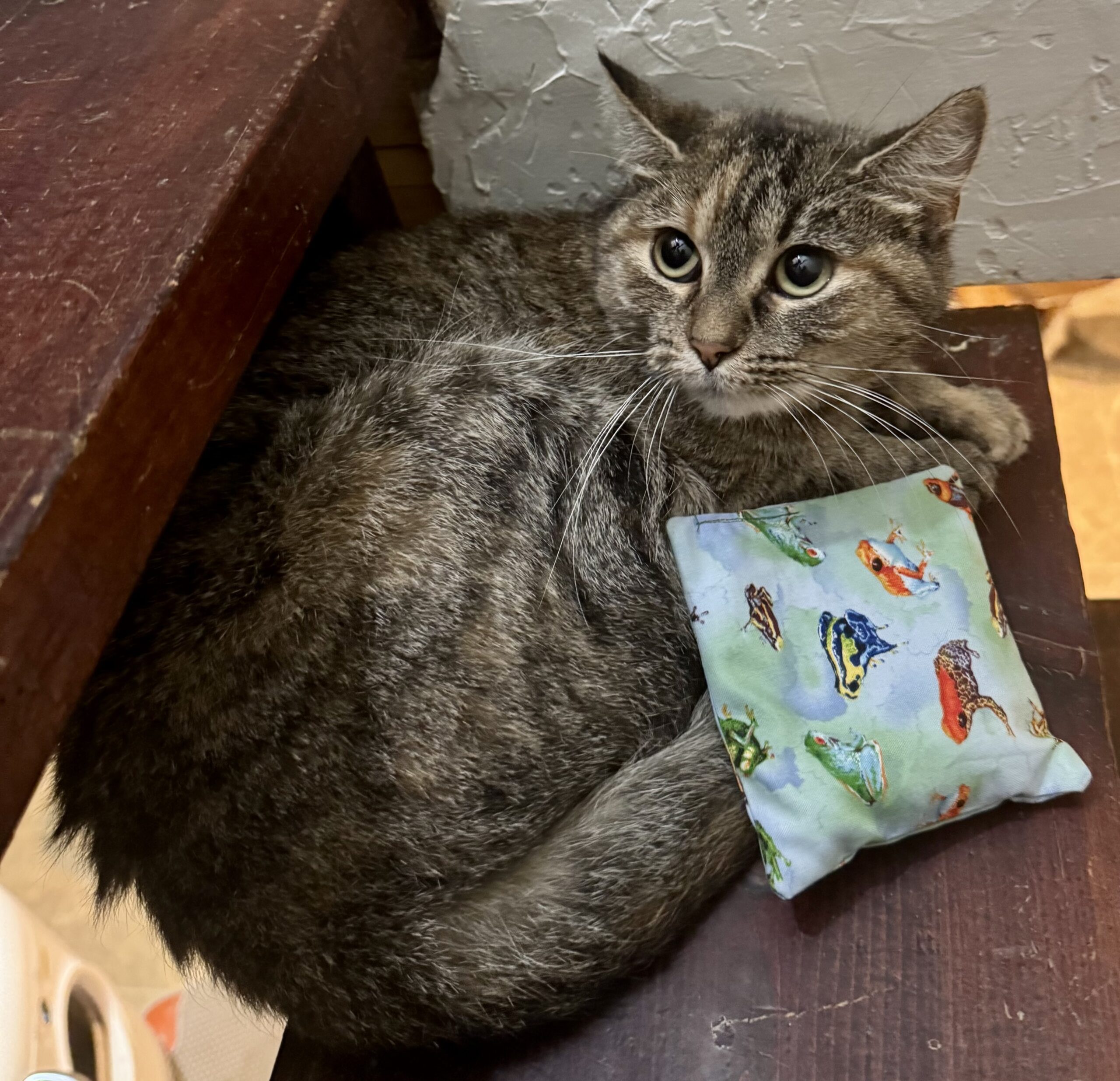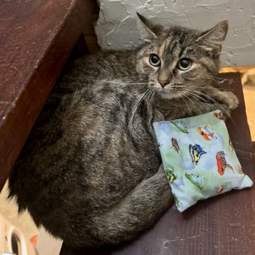 Hi! I'm Tanya, a young cat with a heart full of love. I'm known for my sweet, cuddly nature. I adore being around friends, both human and furry. I'm gentle and friendly, always ready for a cozy lap or a playful afternoon. My favorite days are spent lounging by a sunny window or curling up next to a warm friend. I dream of a forever home where I can share all my affection and brighten someone's life with my cheerful personality. Adopting me means gaining a loyal and loving companion for all your days.