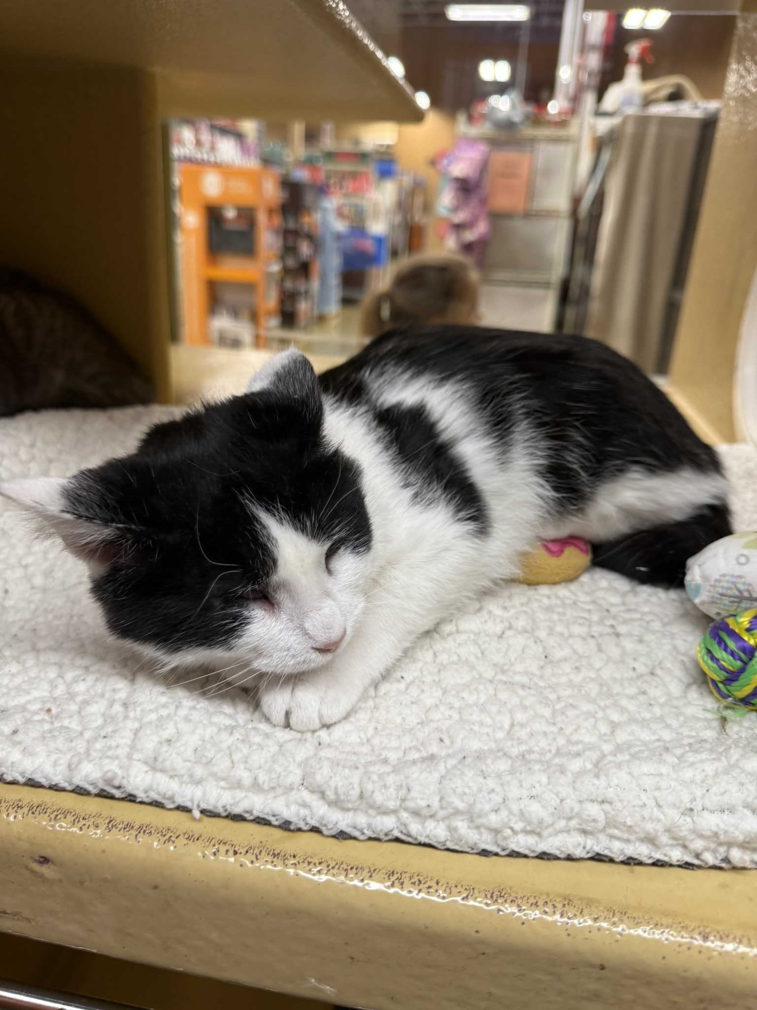 Hello, my name is TC. I’m a four‑month‑old tuxedo girl with a soft coat, a gentle spirit, and a story that makes me just a little different. I’ll be honest with you—I’m shy when I first meet new people. The world can feel big and overwhelming, and I like to take my time before I let someone in. But once I feel safe, I’ll show you who I really am: a loyal, affectionate companion who will follow you from room to room and curl up beside you when the day is done.
