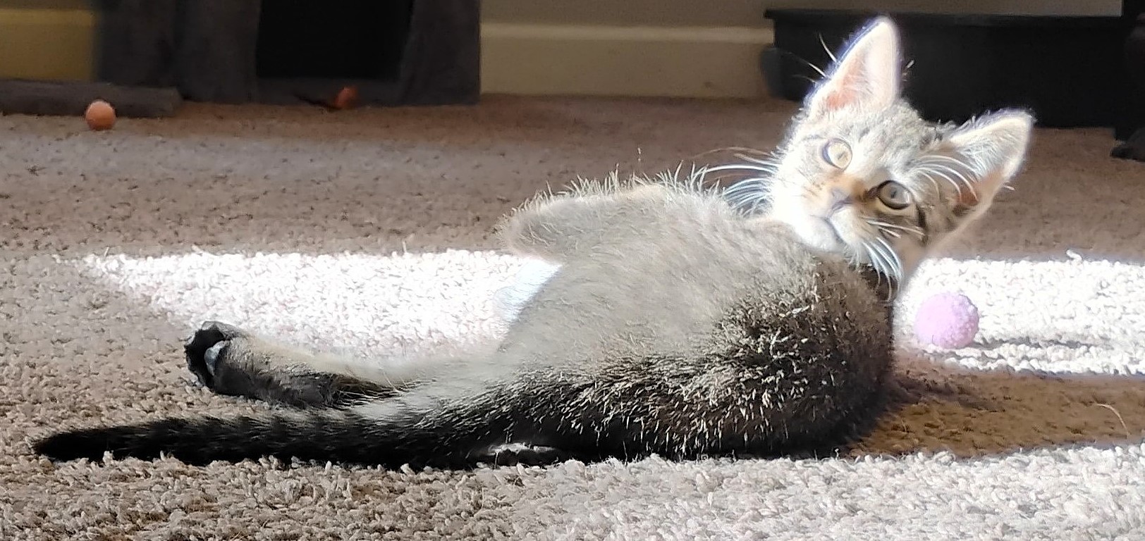 Thomas is a bright, spirited 3-month-old kitten with a big heart and an even bigger appetite. This sweet boy loves to play, explore, and- most importantly- look after his brother Christopher, who has cerebellar hypoplasia. Thomas is the first one to check in on him, the first to encourage a new game, and the first to flop down beside him for a cozy nap. He’s truly the best brother anyone could ask for, and both are ready to explore a new place with fun sights and smells!