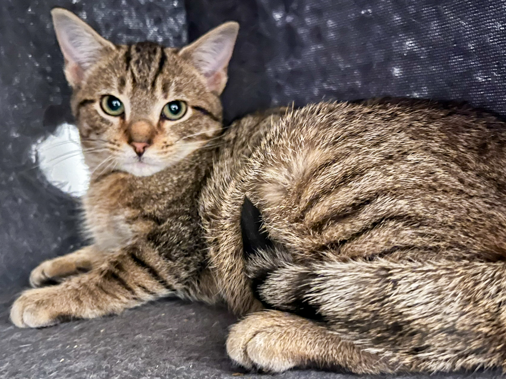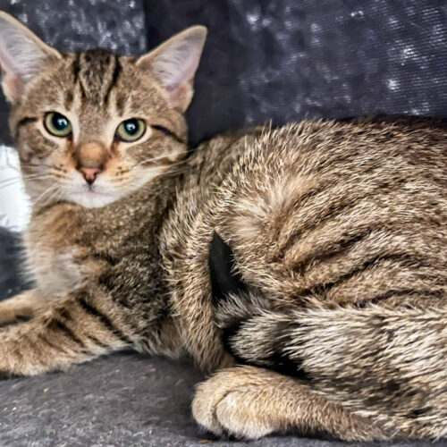 Tiger is a 5-month-old female tabby kitten with soft stripes, bright curious eyes and the sweetest little personality. She’s spayed, up-to-date on all her vaccines, and ready for her forever home.