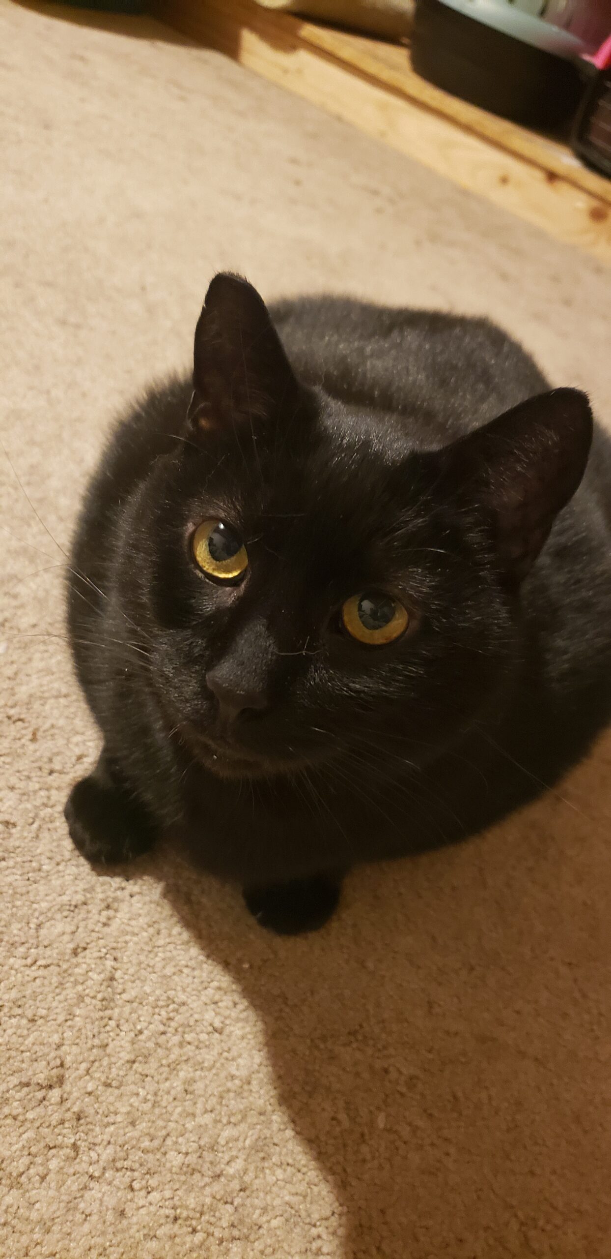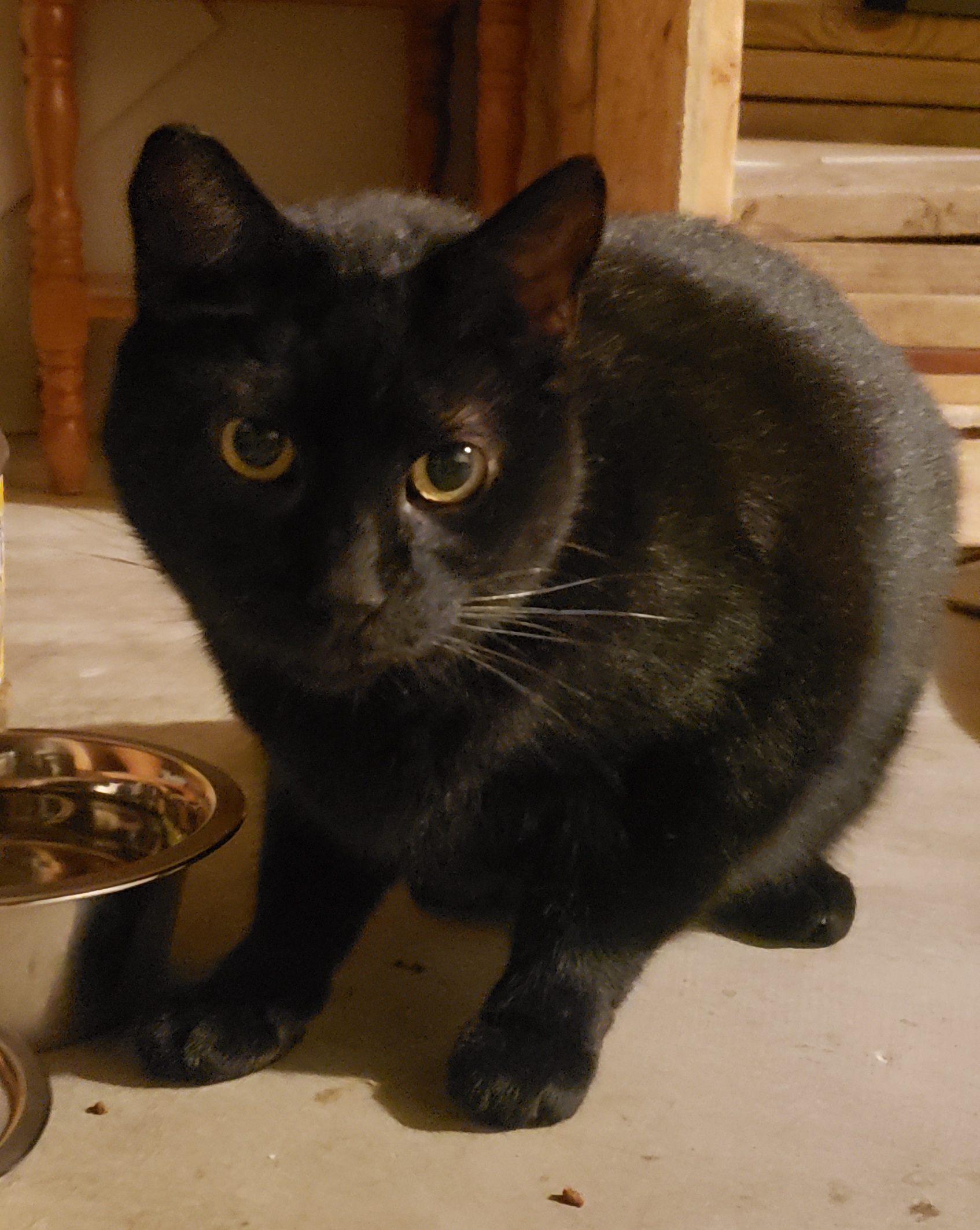 Meet Toothless, a gentle soul with a heart full of love and a mouth that does have teeth! His namesake is the black, yellow-eyed, dragon from the movie “How to Train Your Dragon”. Toothless, AKA Mr. T, is a shy and mellow cat who is learning to trust humans more and more each day after spending the first four years of life on his own. His desire to develop bonds with humans is heartwarming. Despite his initial hesitance, Toothless is showing steady progress as displayed through the growing number of head butts and nose kisses he loves to share. He's the kind of companion who would appreciate a quiet, loving home where he can continue to grow, thrive, and complete his journey of learning that humans can be friends. His peaceful demeanor makes him a perfect match for someone seeking a calm and comforting presence. Adopt Toothless and gain a friend who will appreciate your patience and reward you with unconditional love.
